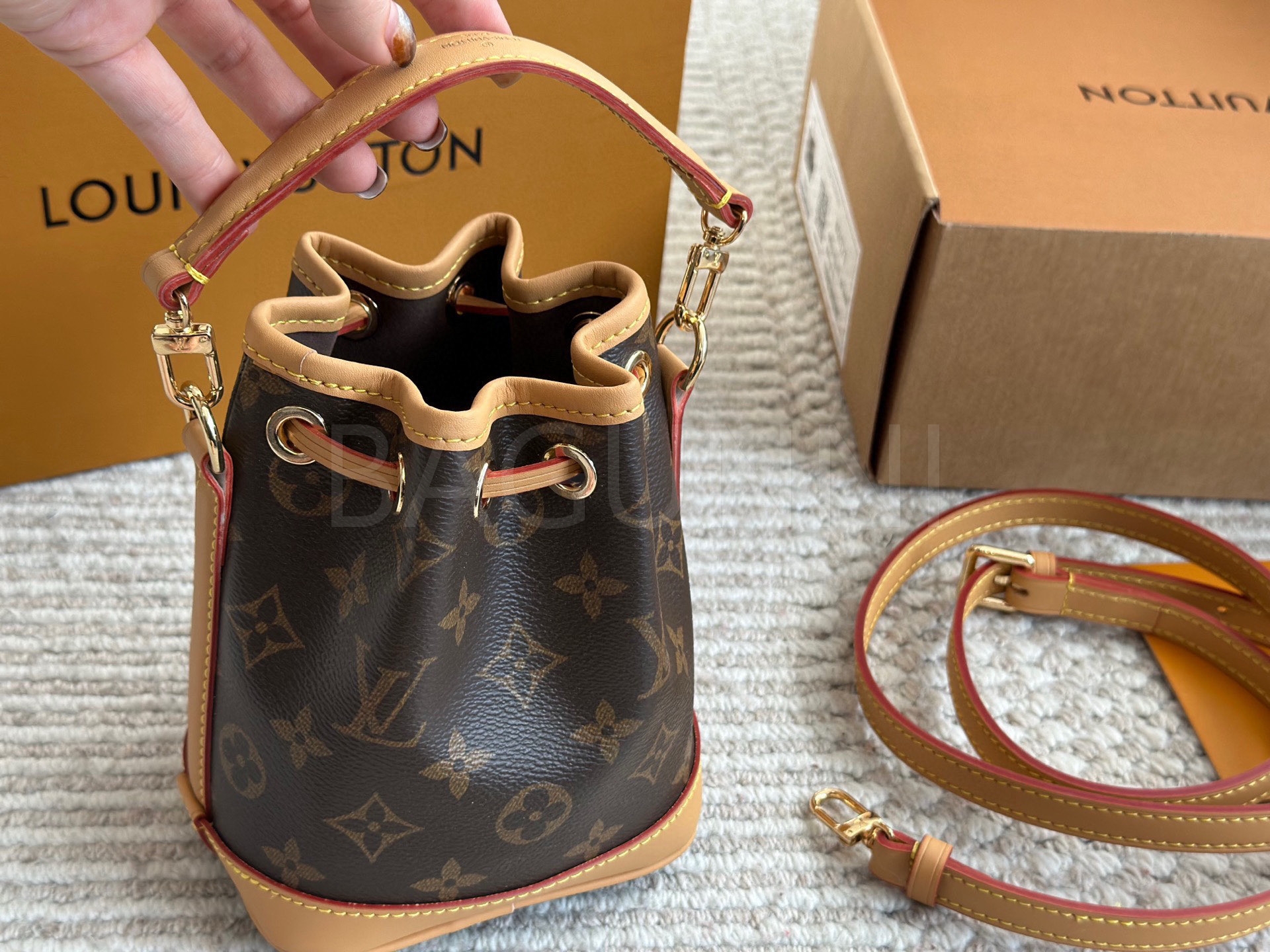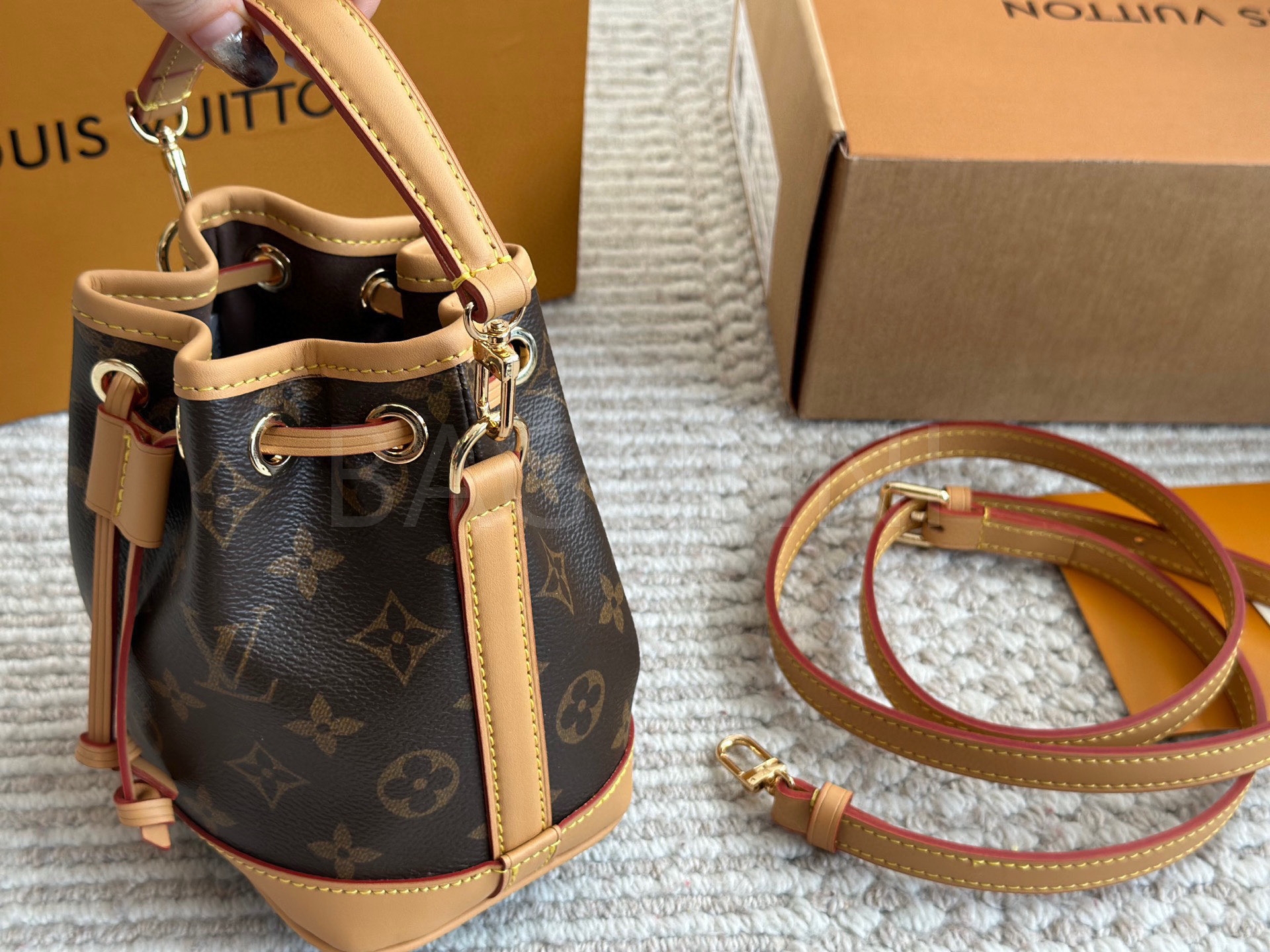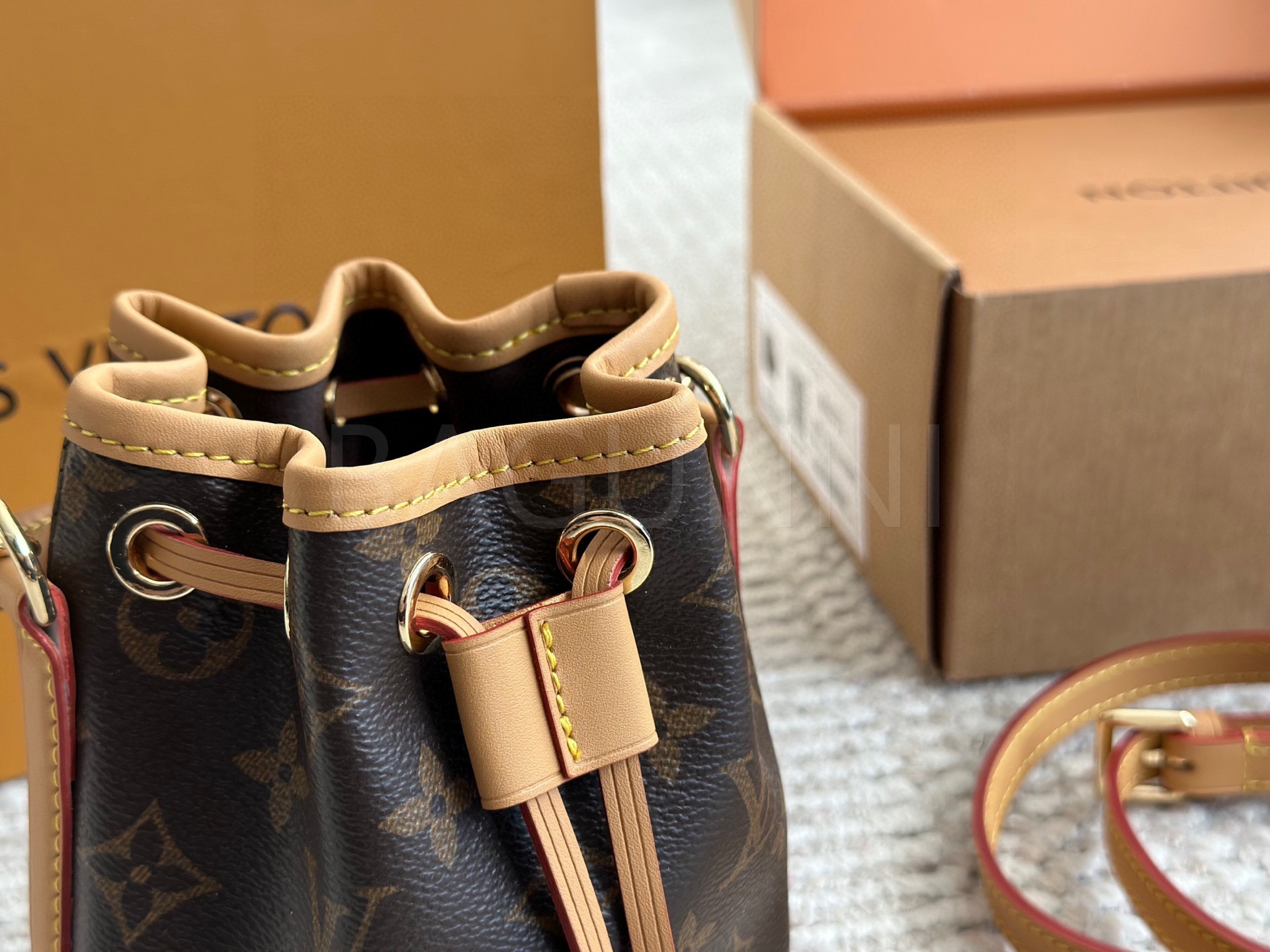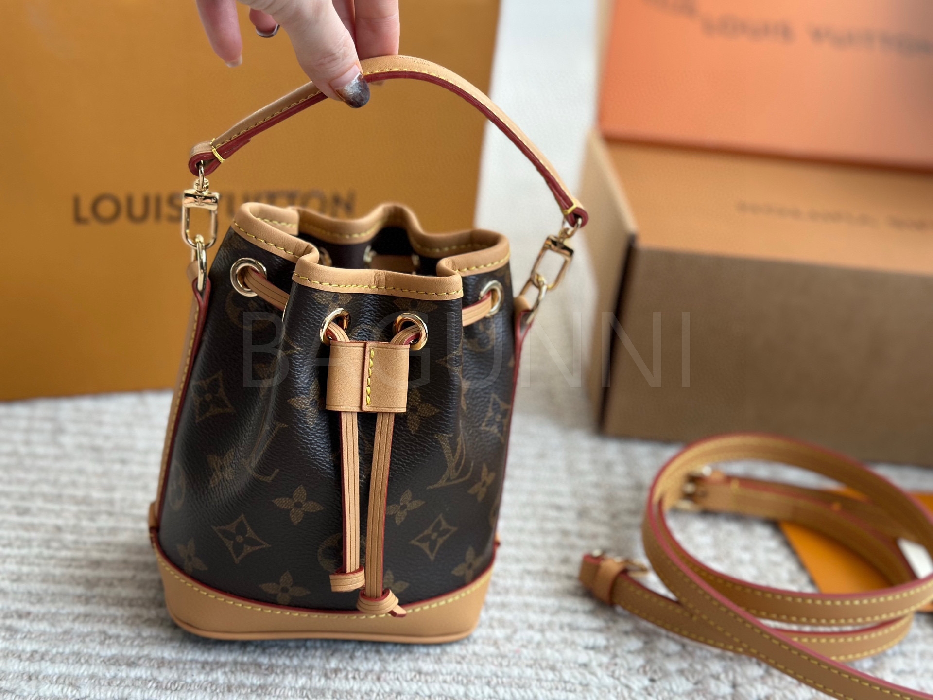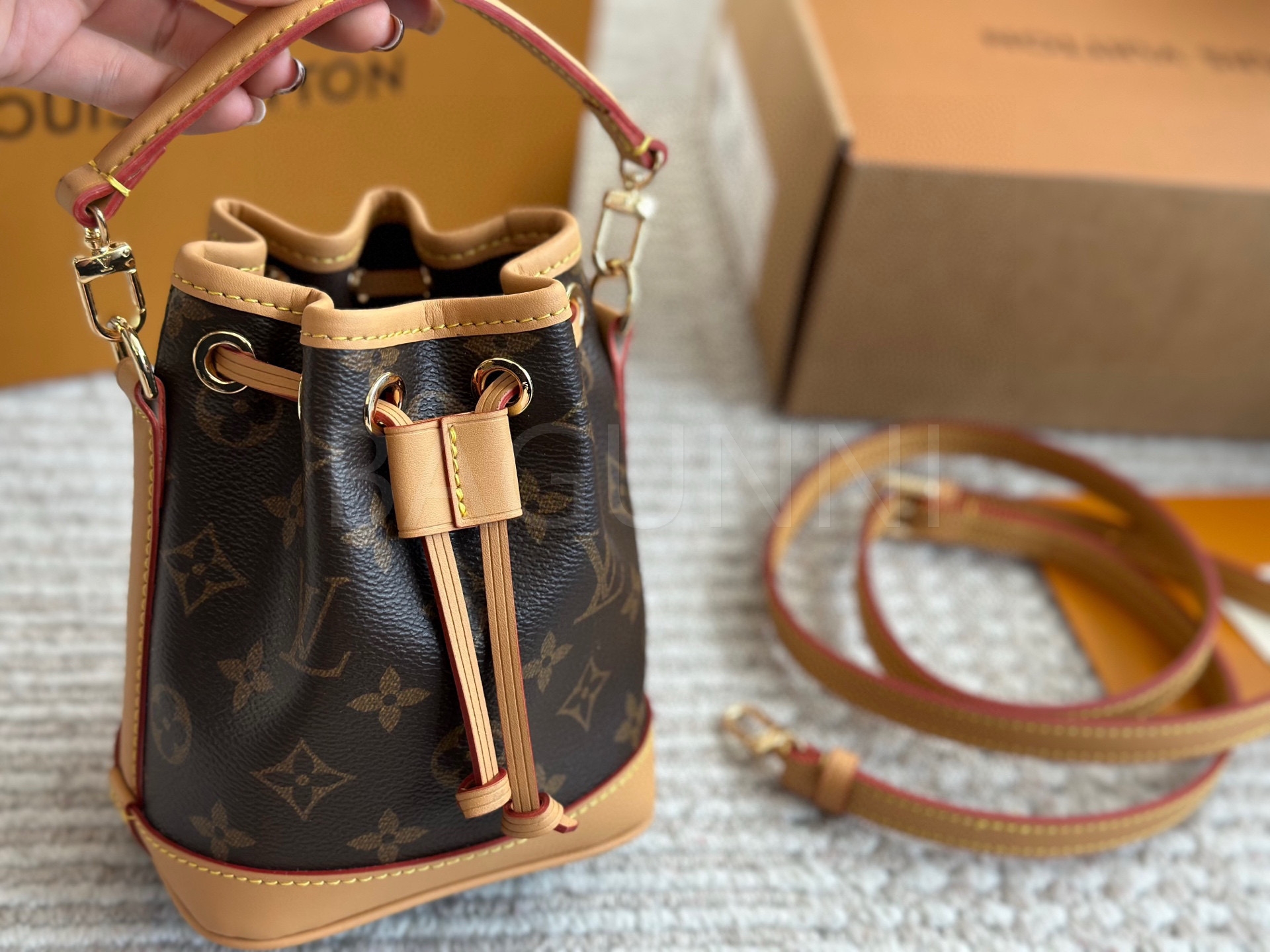 모노그램 패턴, 탑핸들, 버킷 실루엣 디테일이 조화롭게 어우러져 완성도를 높여줍니다