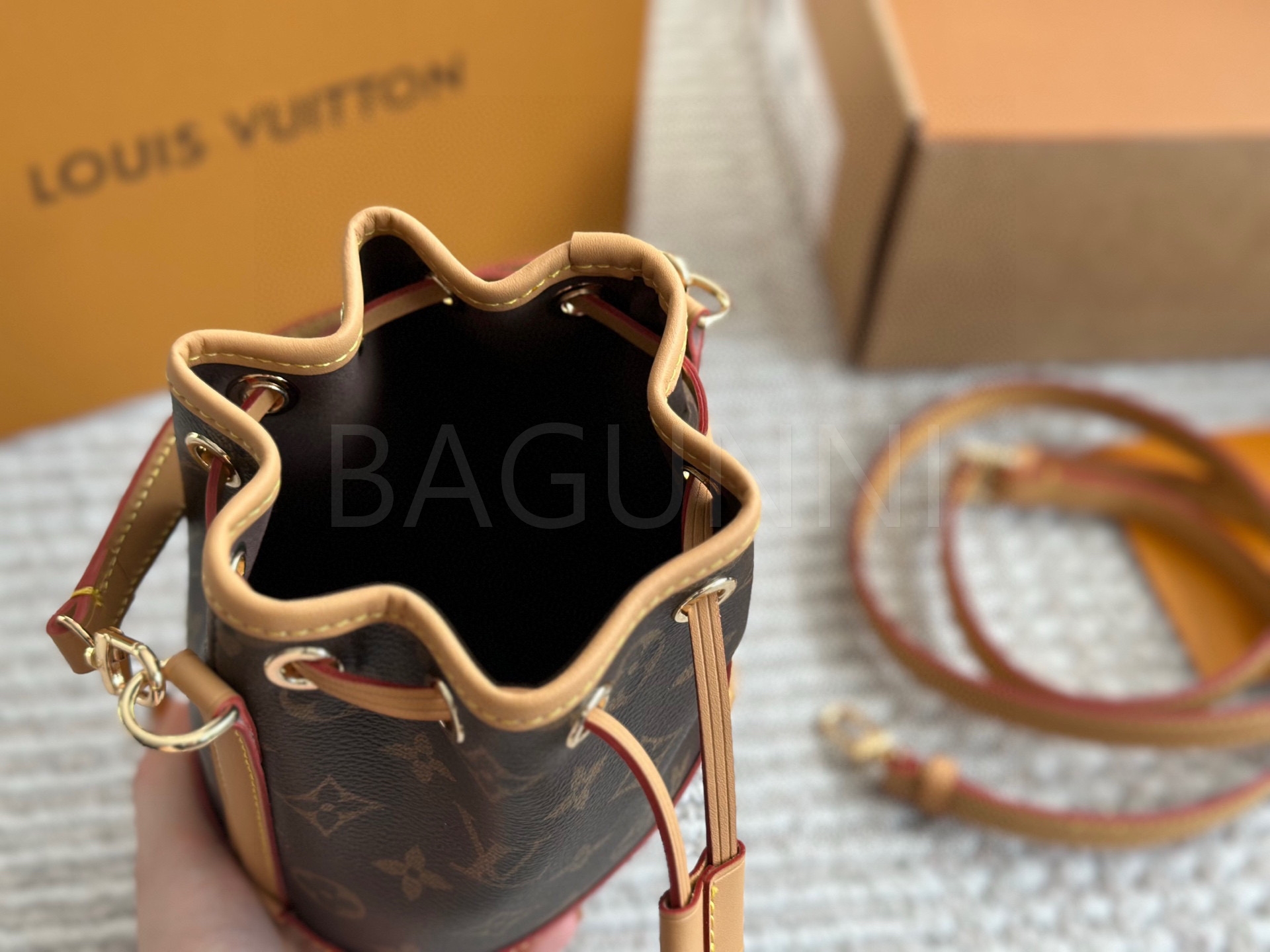 클래식한 캔버스 무드가 돋보이는 루이비통 노에 버킷 백입니다.