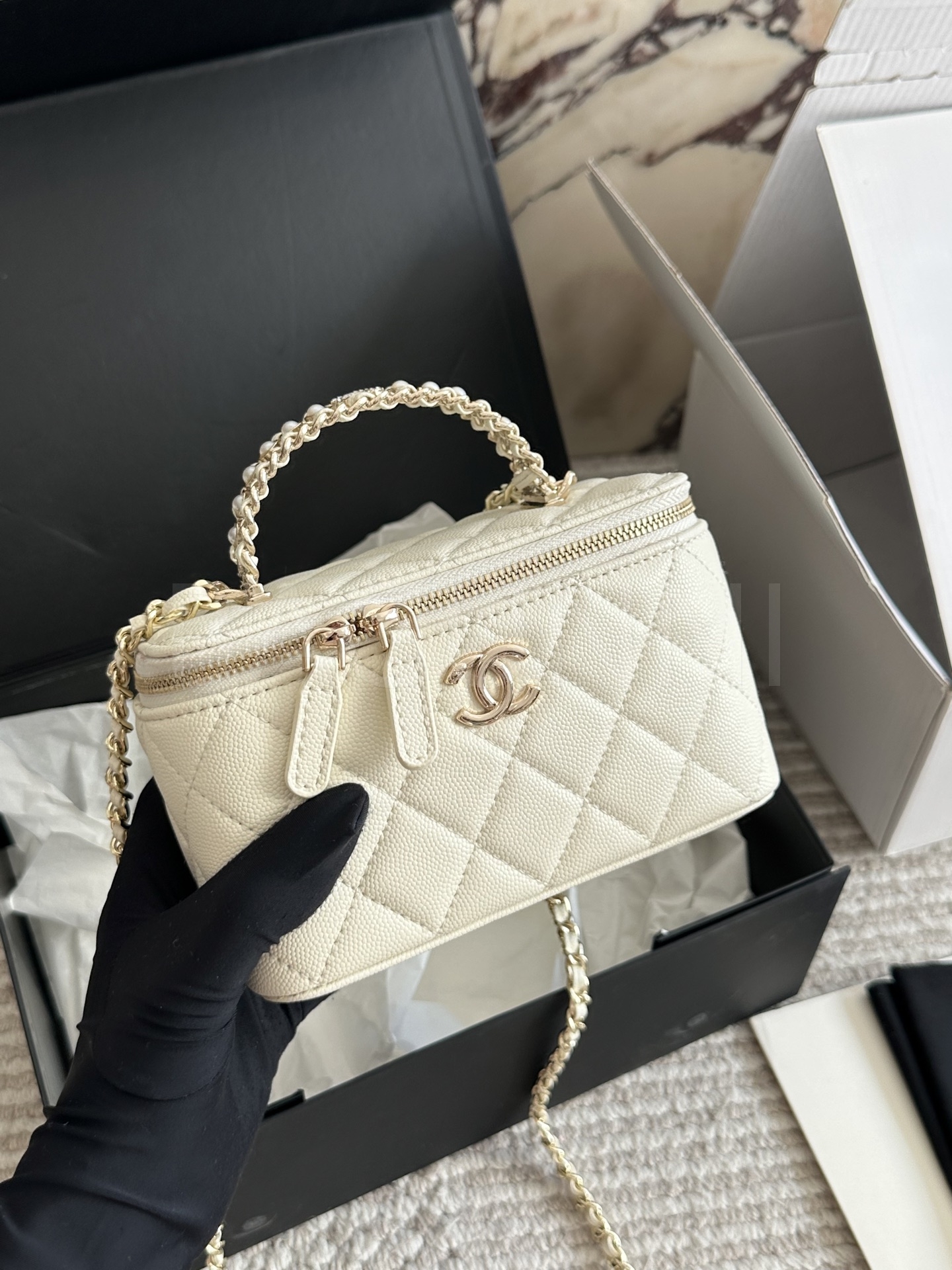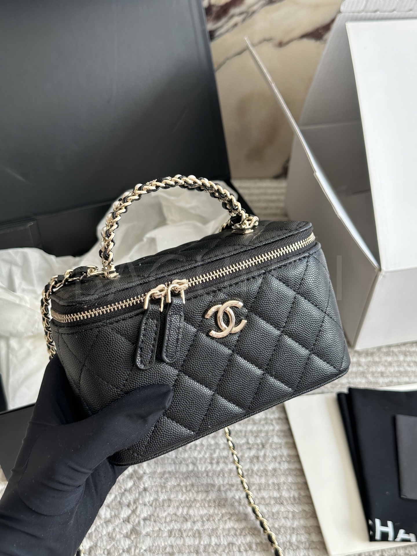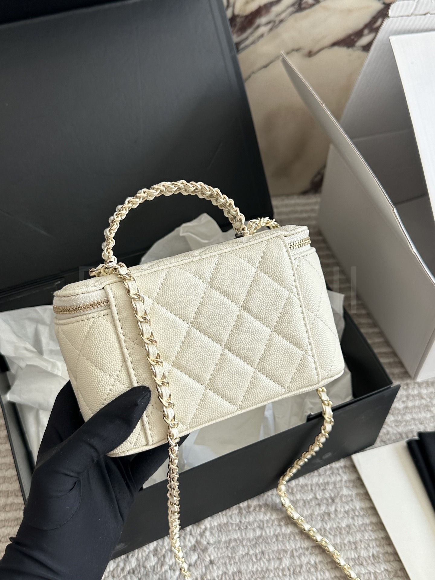 샤넬 금볼 탑핸들 박스 백
