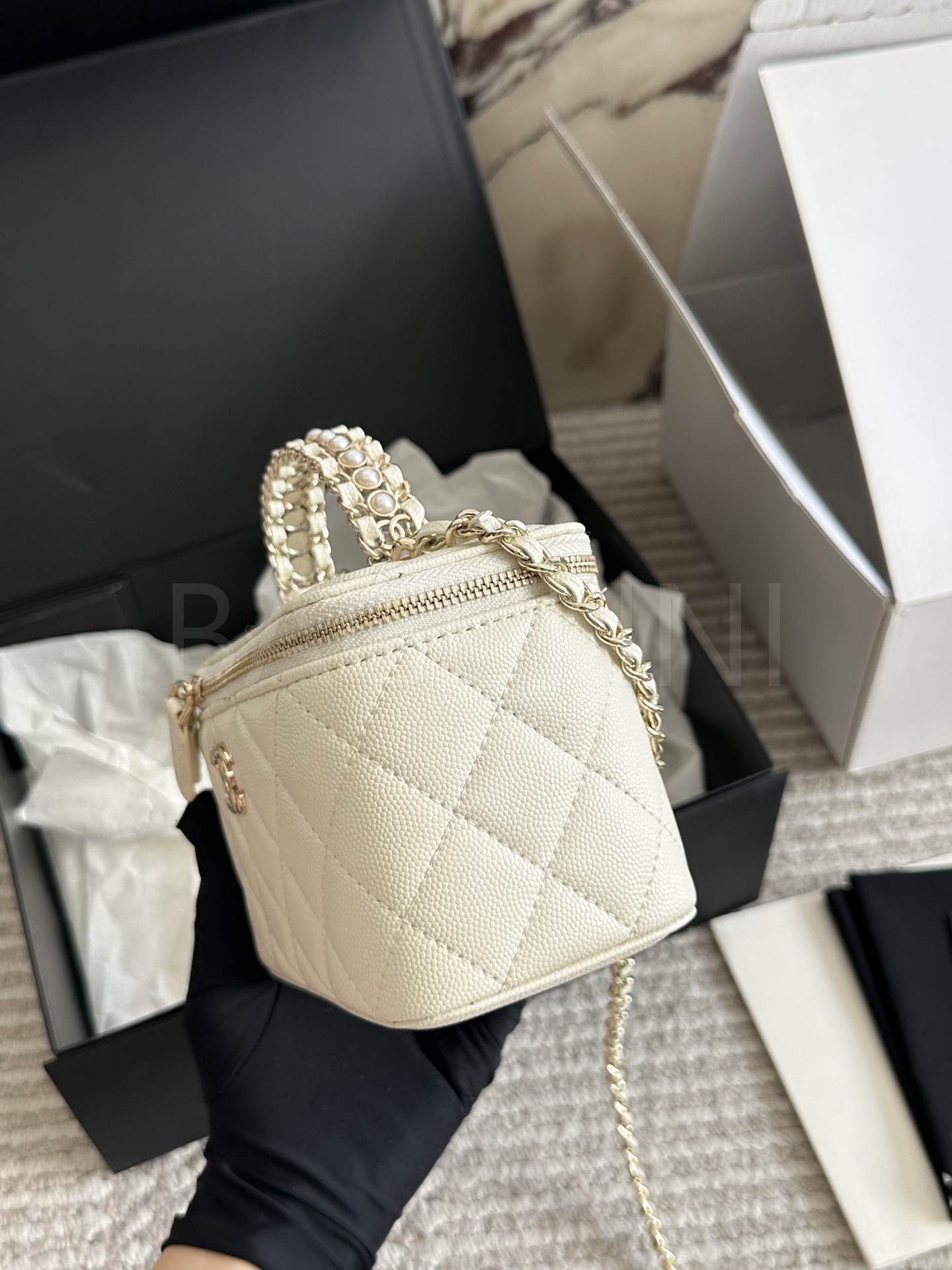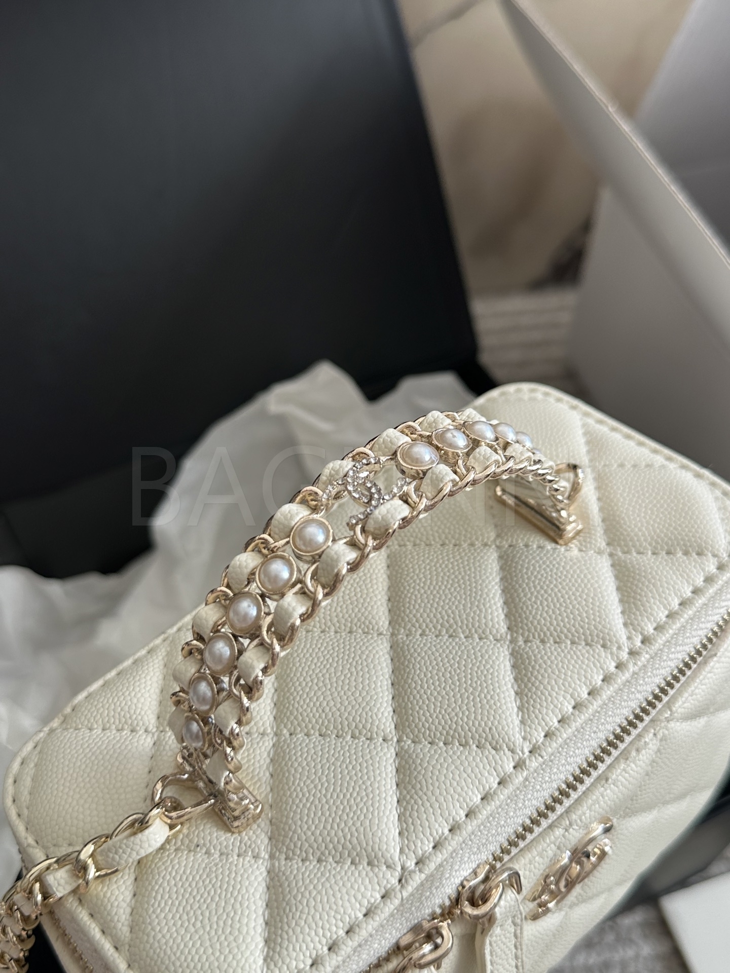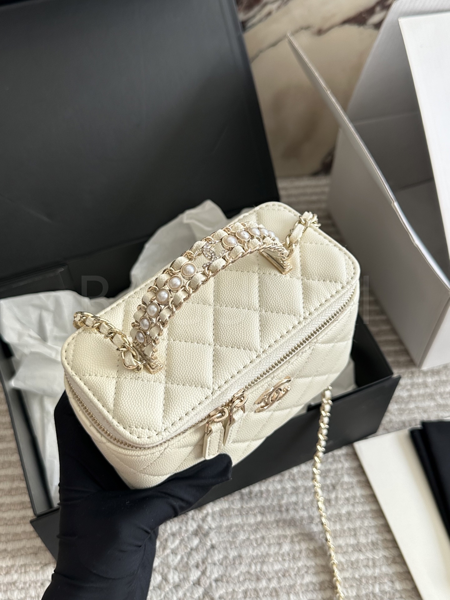 샤넬 금볼 탑핸들 박스 백