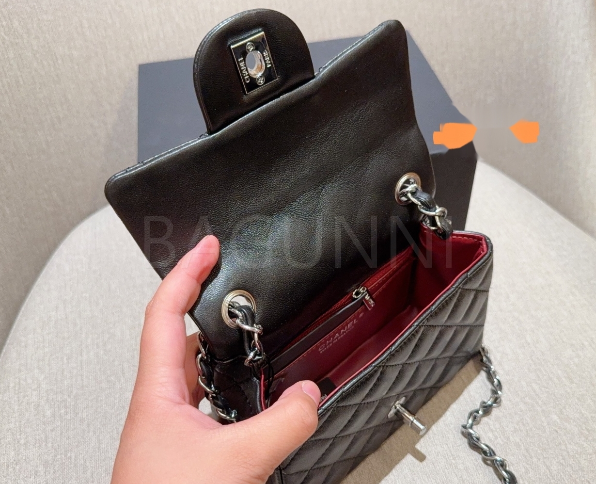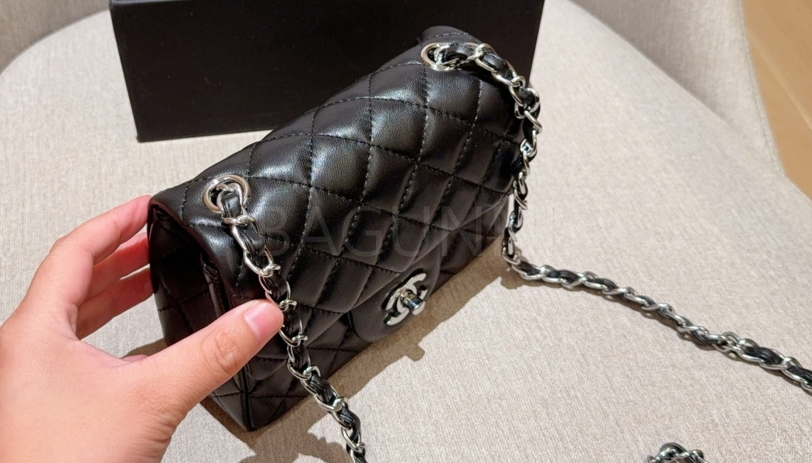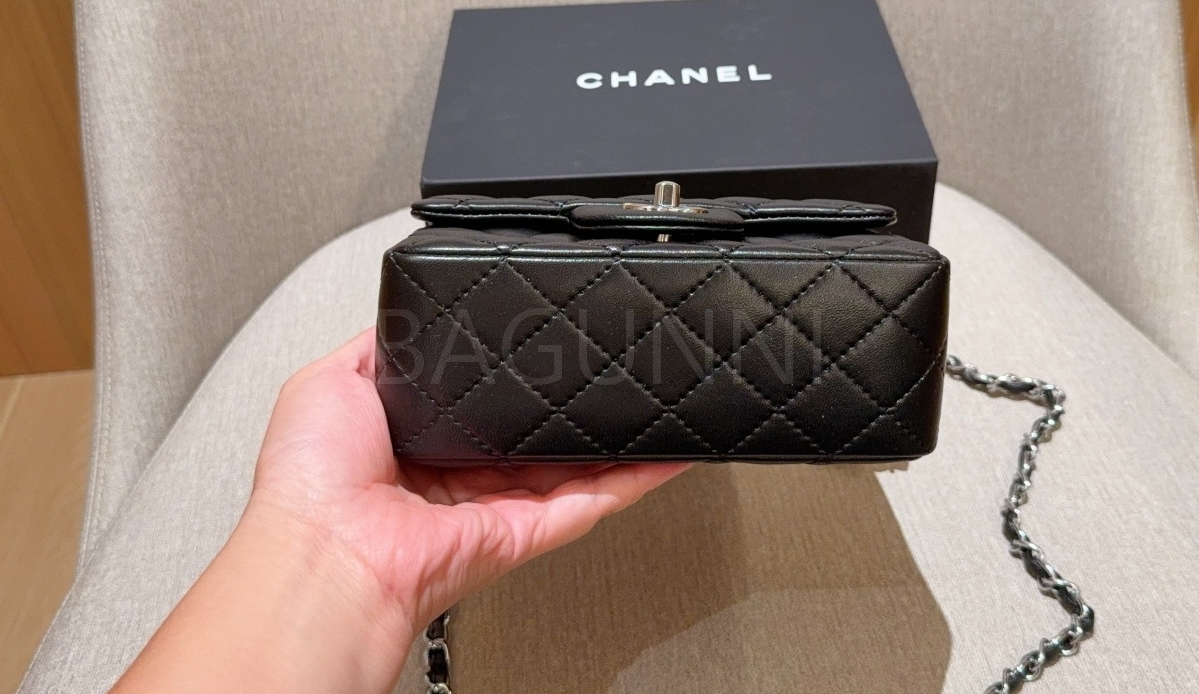 램스킨 특유의 매력이 돋보이는 샤넬 스퀘어 플랩 백입니다.