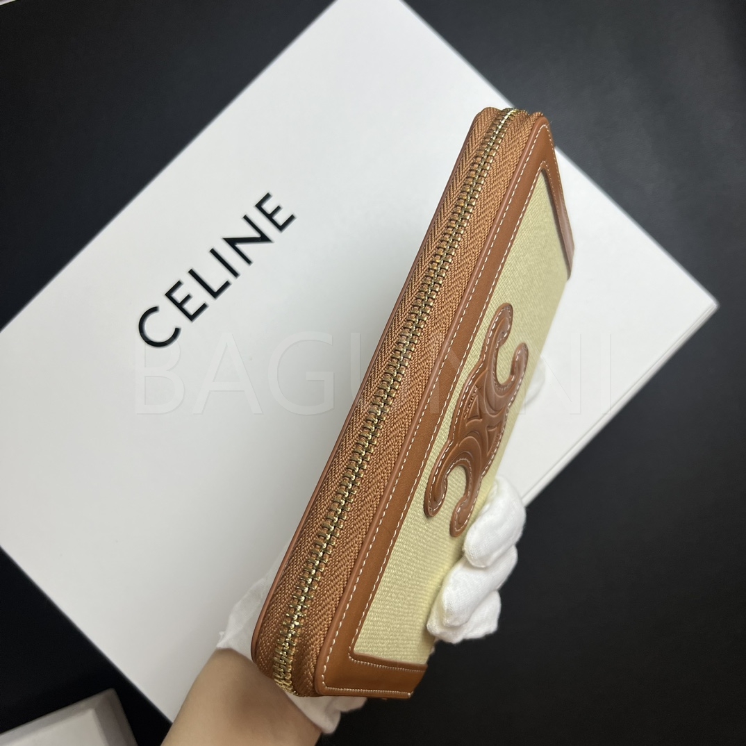 카프스킨의 질감이 돋보이는 셀린느 트리옹프 지퍼 카드지갑입니다.