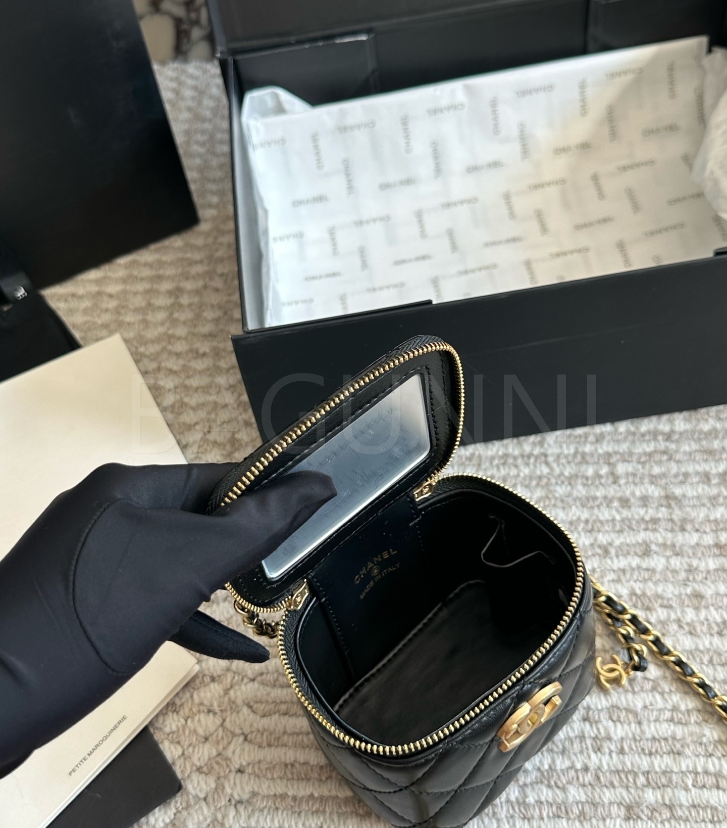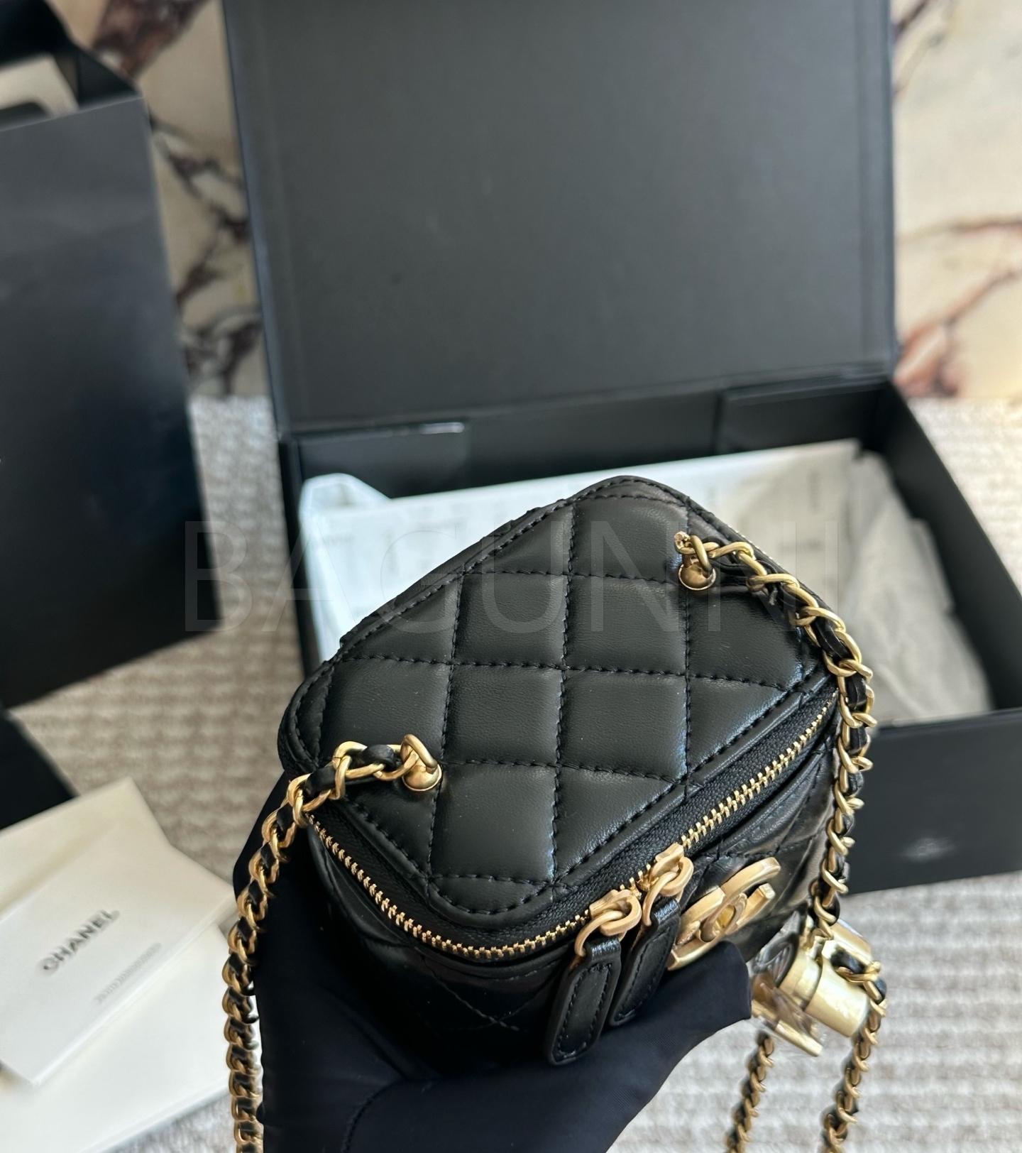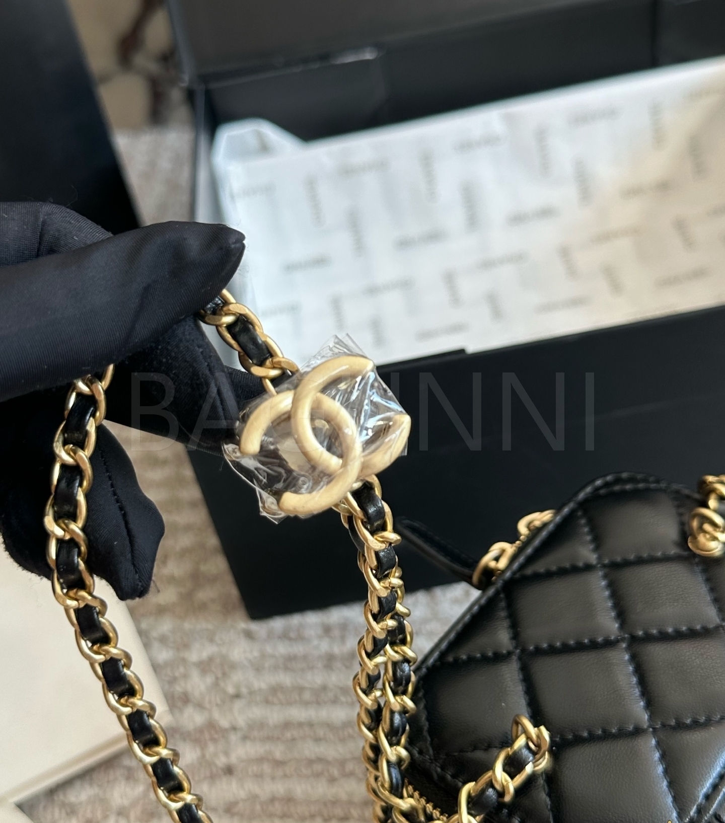 퀼팅 디테일, 더블 C 로고, 체인 스트랩, 금볼 디테일, 박스 실루엣, 넉넉한 수납력 디테일이 조화롭게 어우러져 완성도를 높여줍니다 데일리룩부터 가벼운 외출까지 부담 없이 활용하기 좋습니다