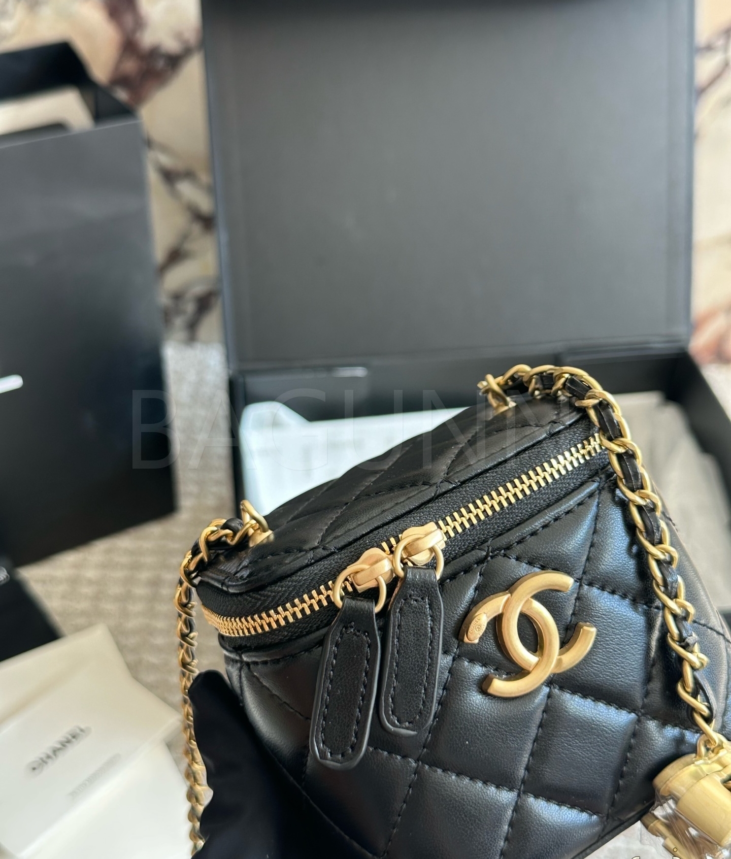 세련된 무드가 돋보이는 샤넬 금볼 박스 백입니다.
