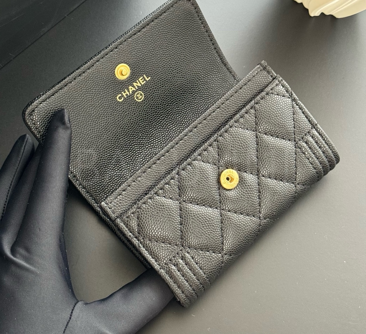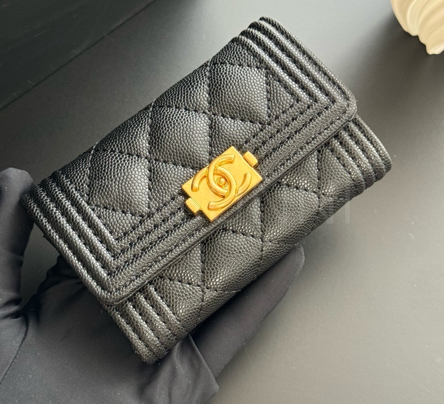 샤넬 특유의 무드가 자연스럽게 살아있는 보이 카드지갑입니다.