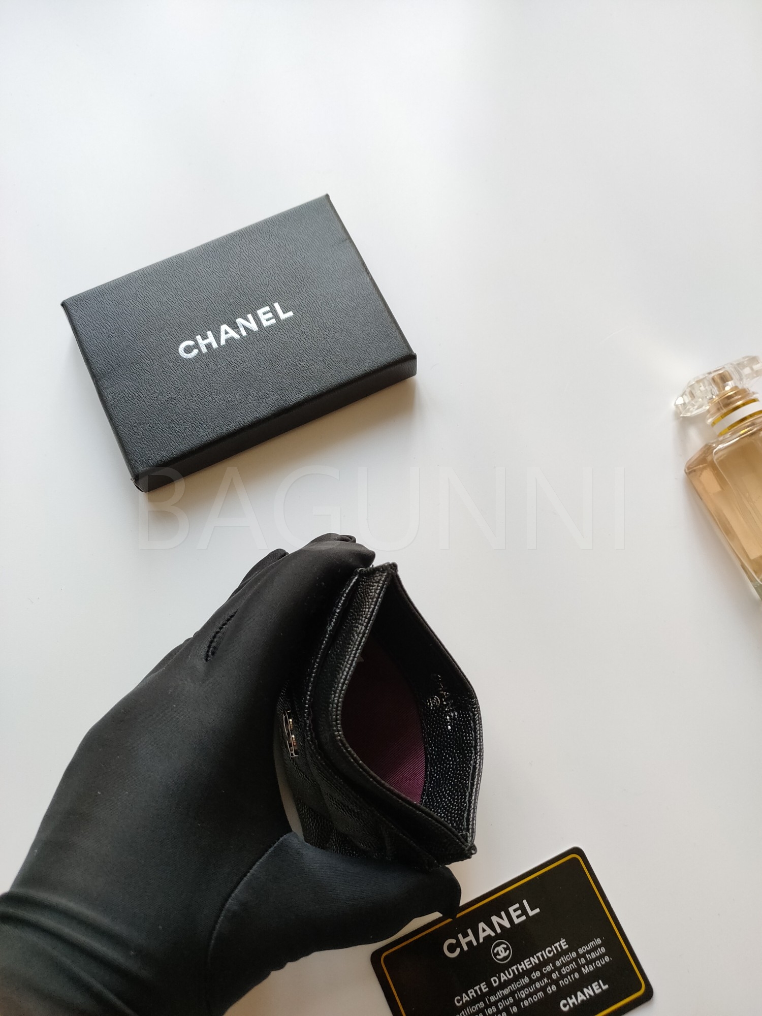 카프스킨의 질감이 돋보이는 샤넬 클래식 플랩 카드지갑입니다.
