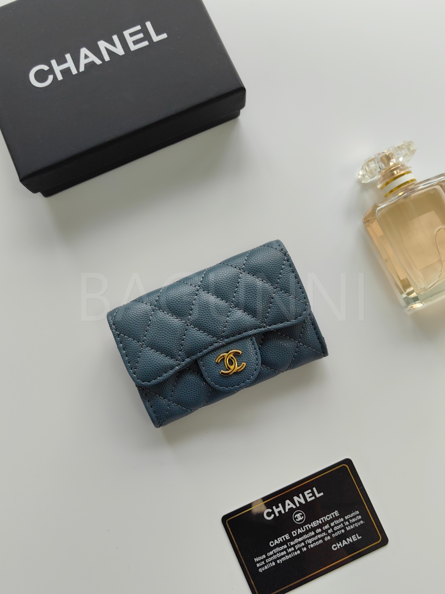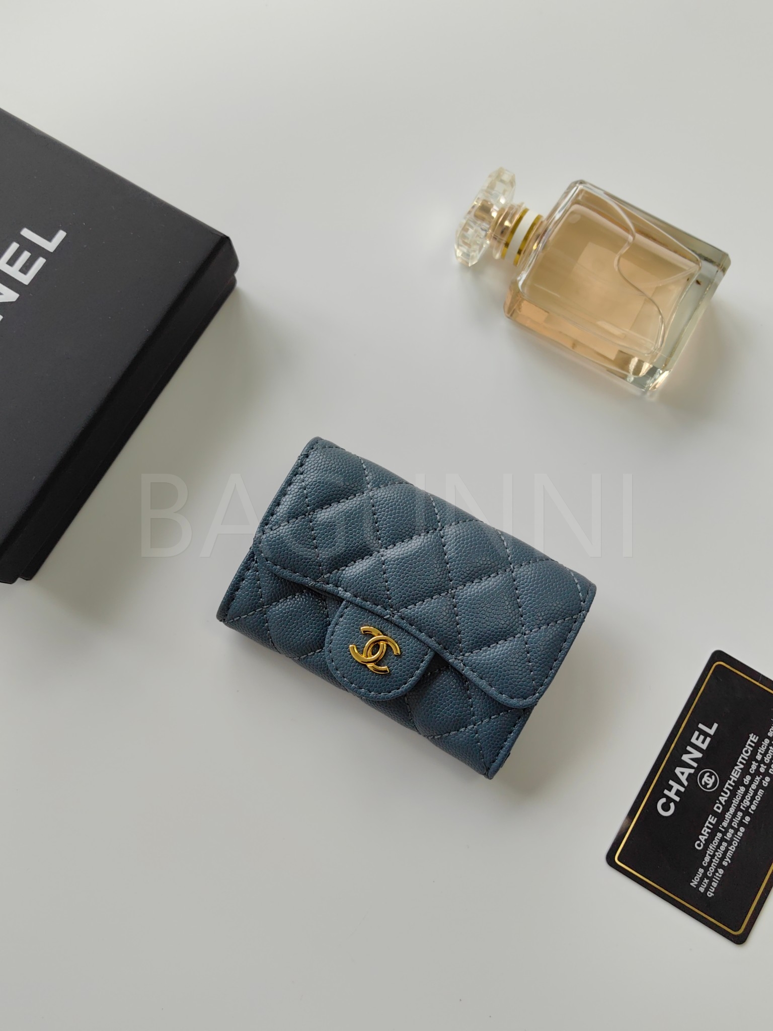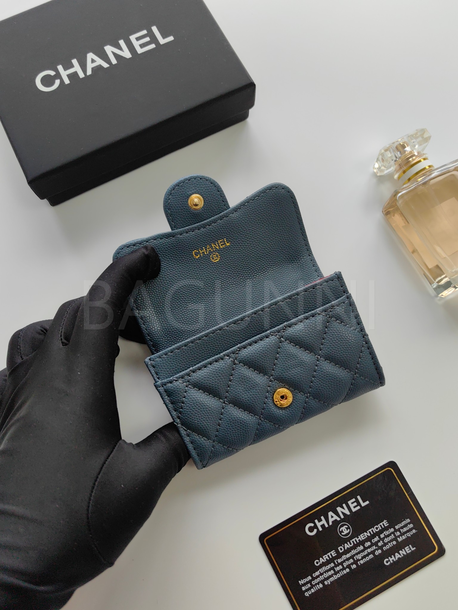 카프스킨의 질감이 돋보이는 샤넬 클래식 플랩 카드지갑입니다.