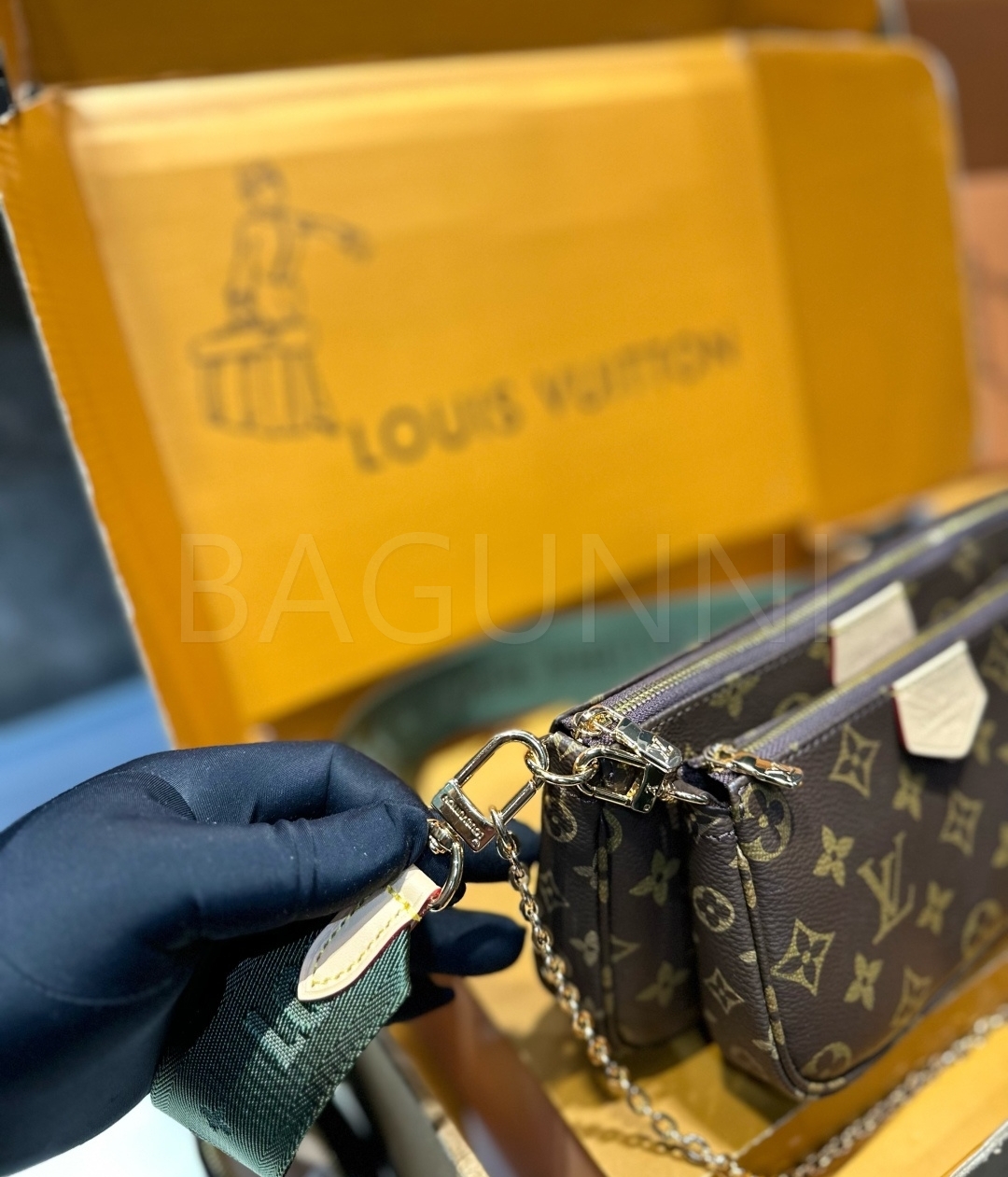 모노그램 패턴, 체인 스트랩, 숄더 스트랩, 숄더와 크로스 연출 디테일이 조화롭게 어우러져 완성도를 높여줍니다 필수 소지품을 여유 있게 수납하기 좋습니다