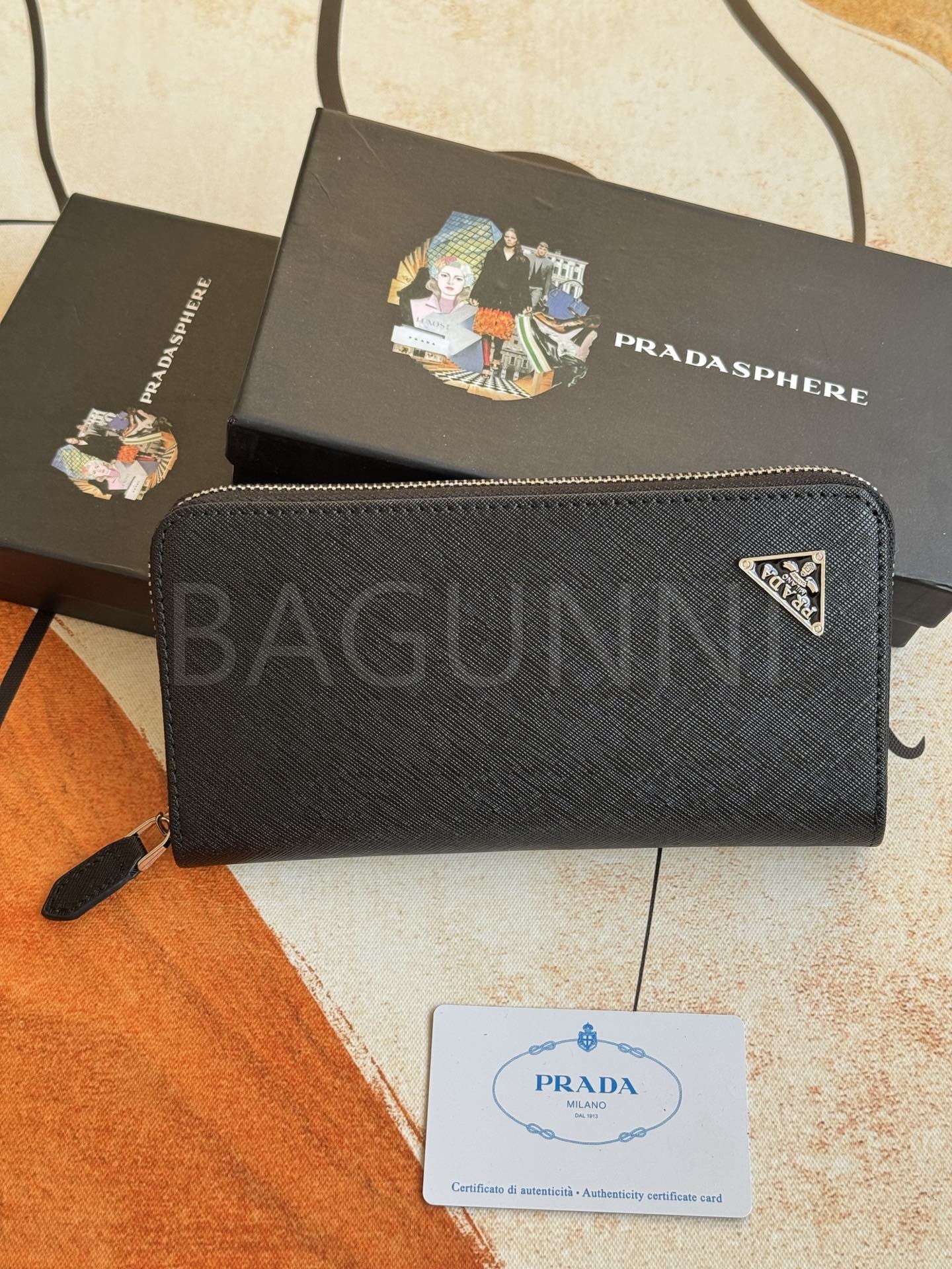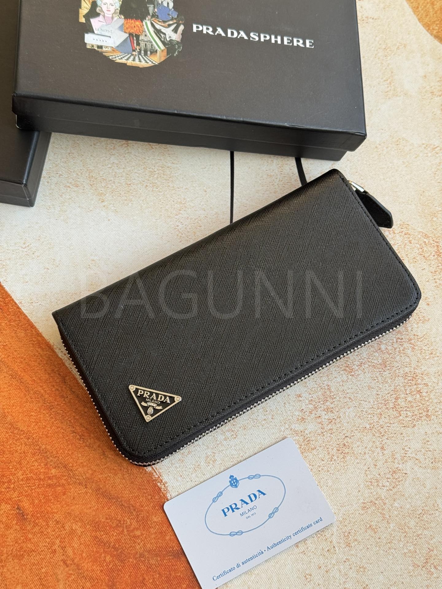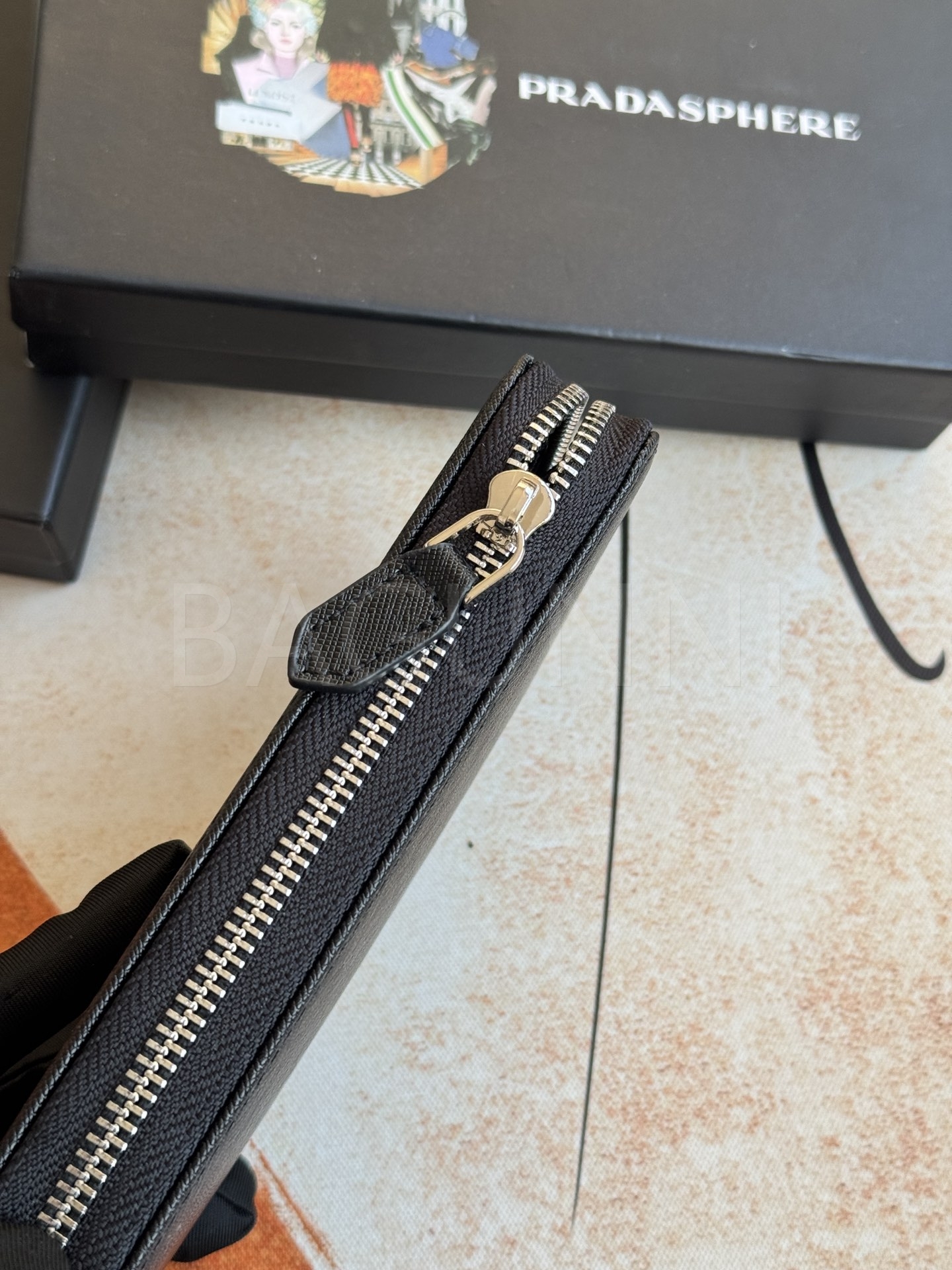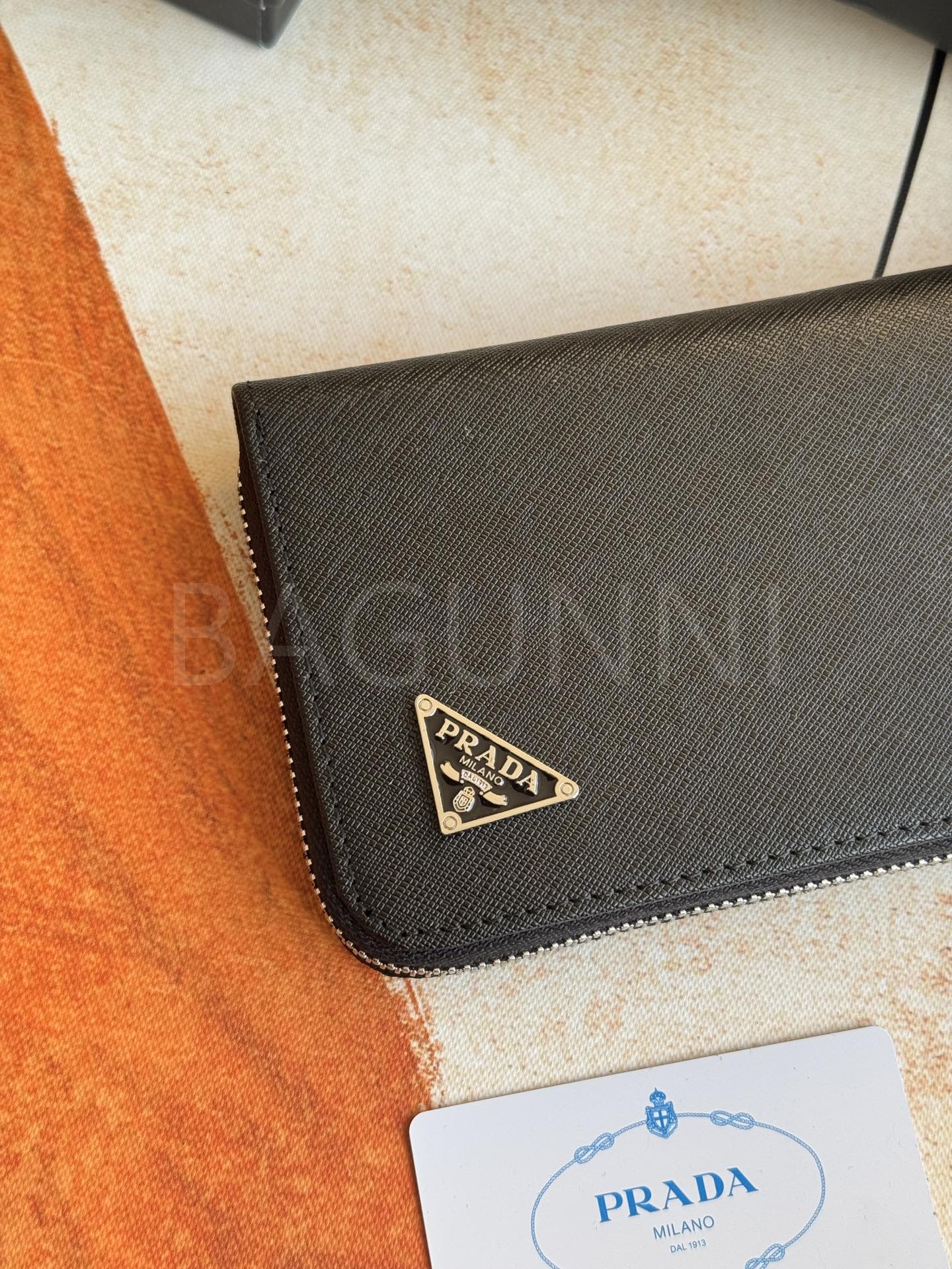 사피아노 질감이 깔끔하게 살아있는 프라다 사피아노 지퍼 장지갑입니다.