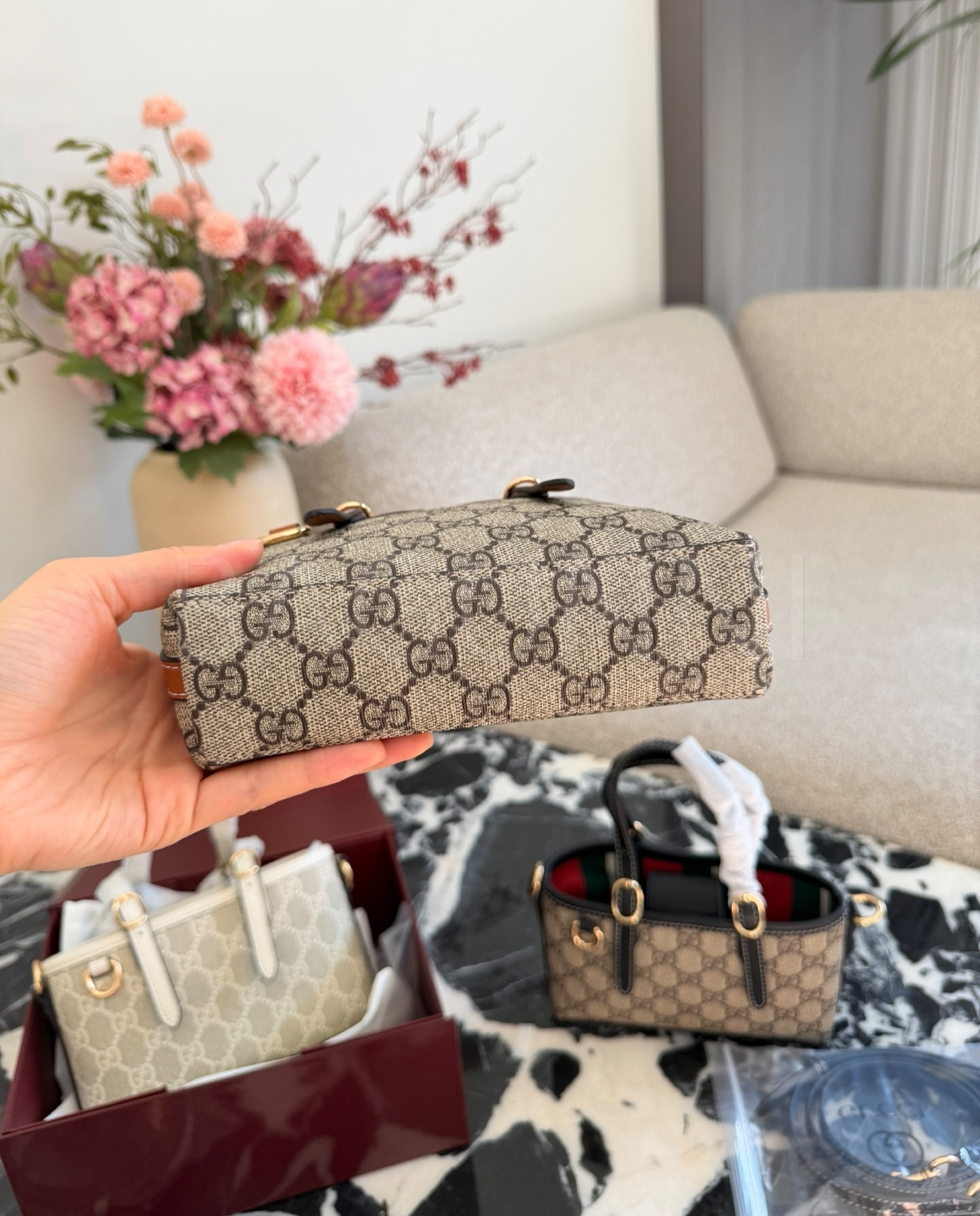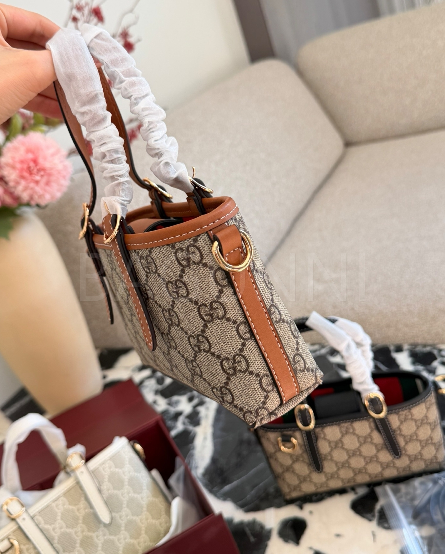 구찌 미니 토트백입니다. 브랜드 특유의 분위기를 편하게 즐기기 좋습니다.