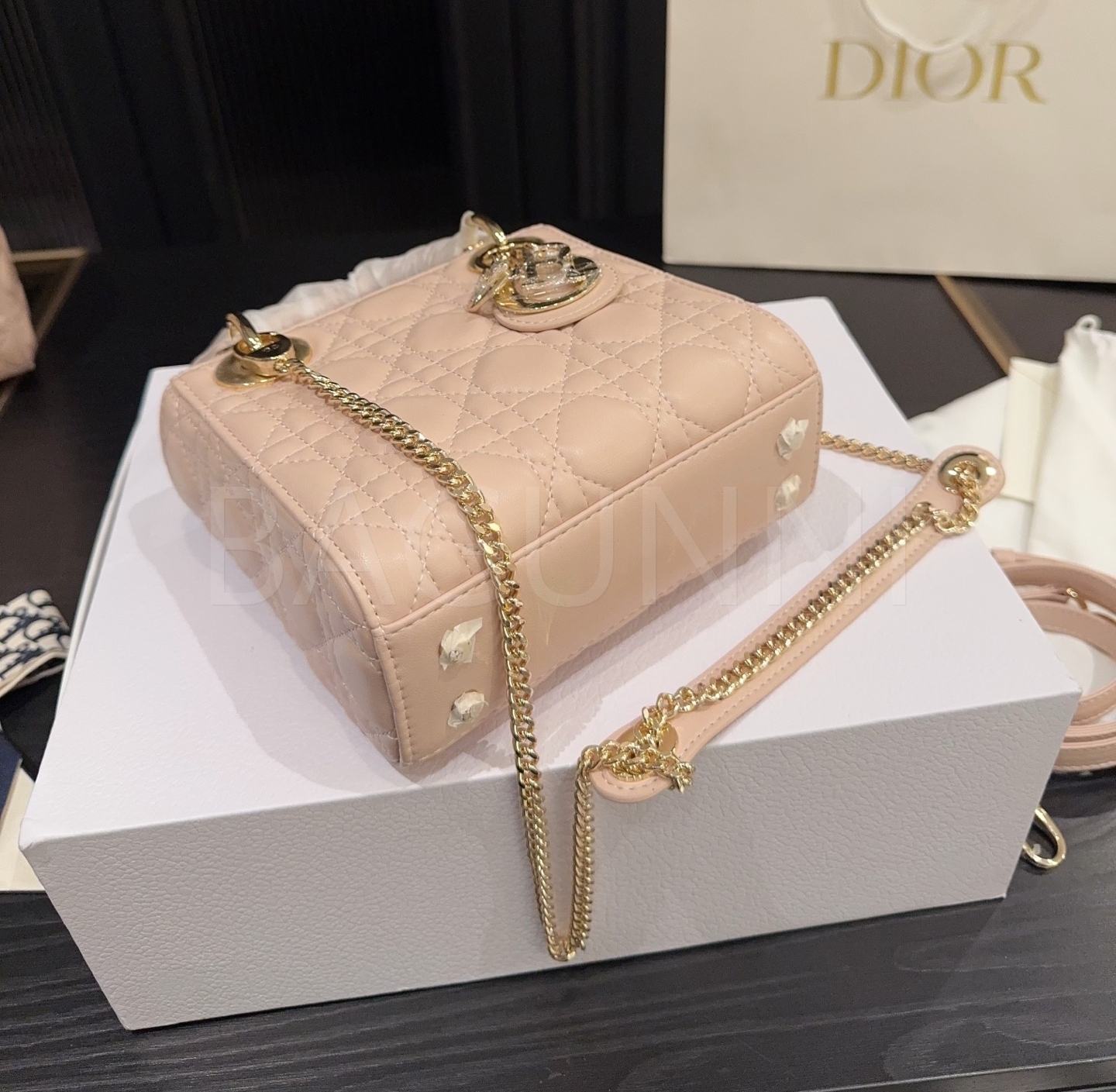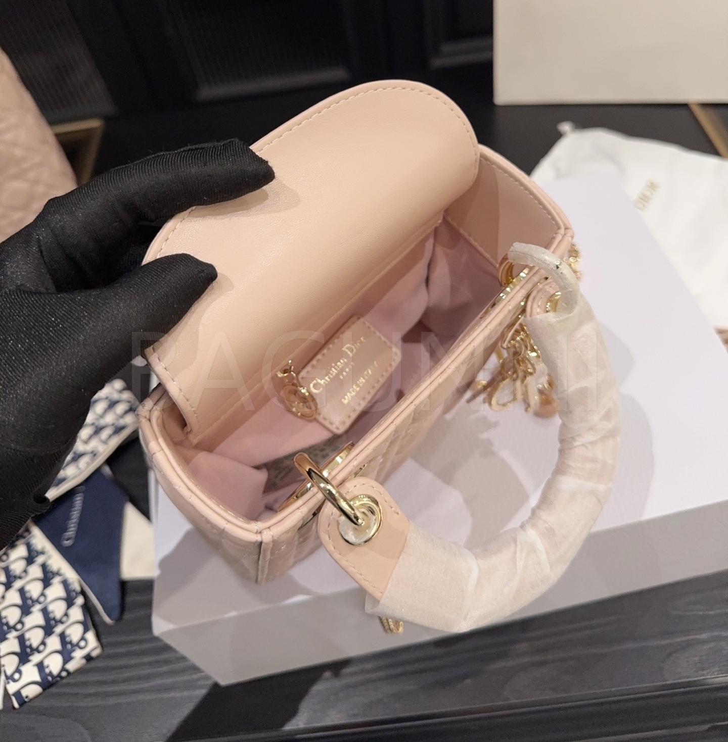 디올 레이디 디올 탑핸들백입니다. 램스킨 특유의 질감이 자연스럽게 살아 있으며 브랜드 특유의 분위기를 편하게 즐기기 좋습니다.