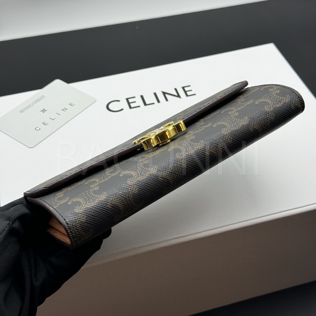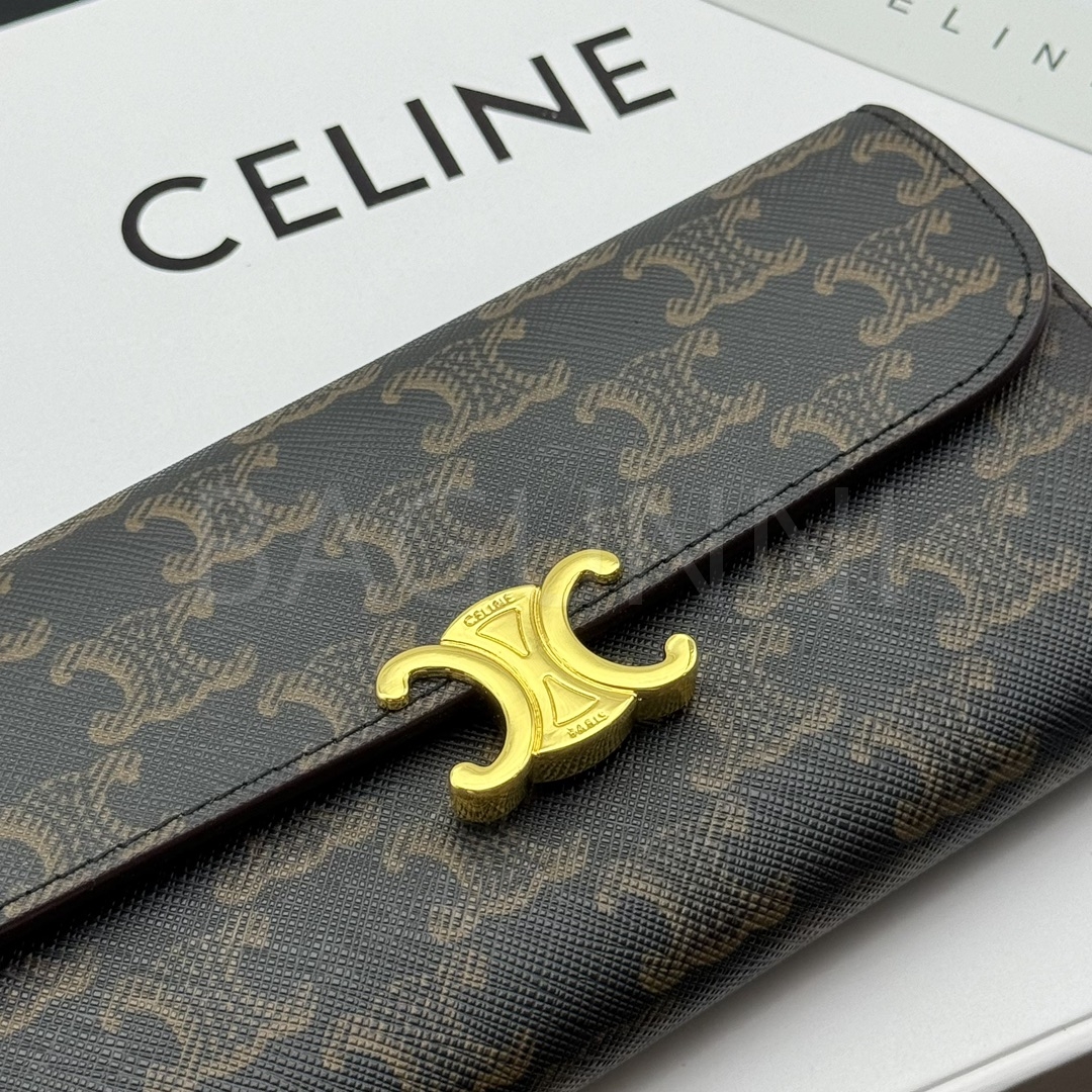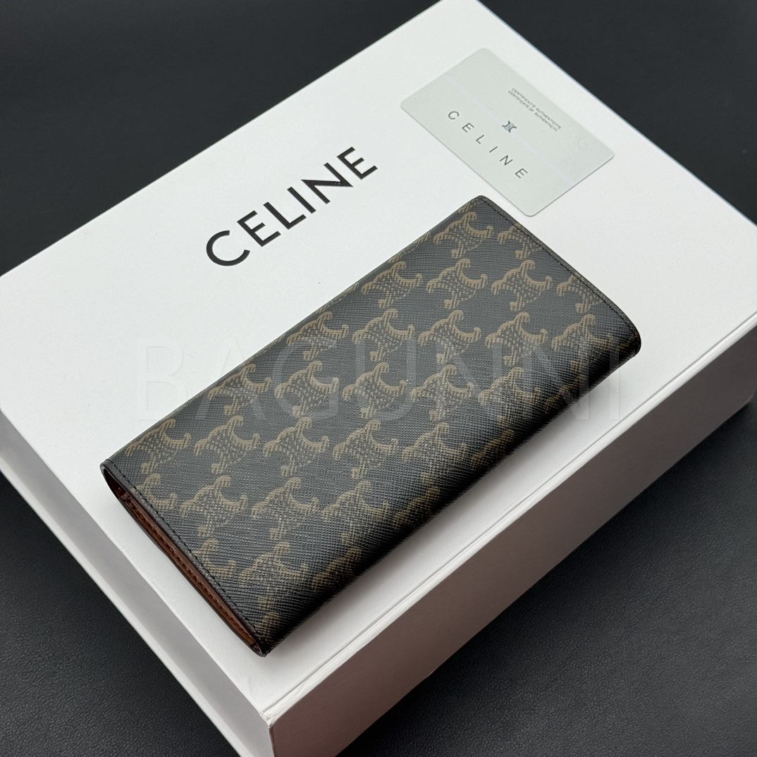 셀린느 특유의 무드가 자연스럽게 살아있는 트리옹프 지퍼 카드지갑입니다.