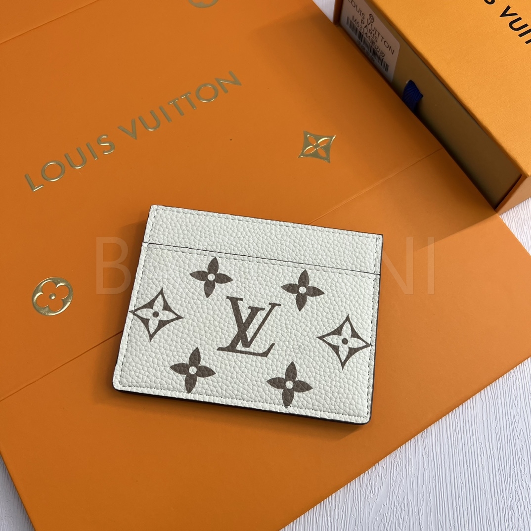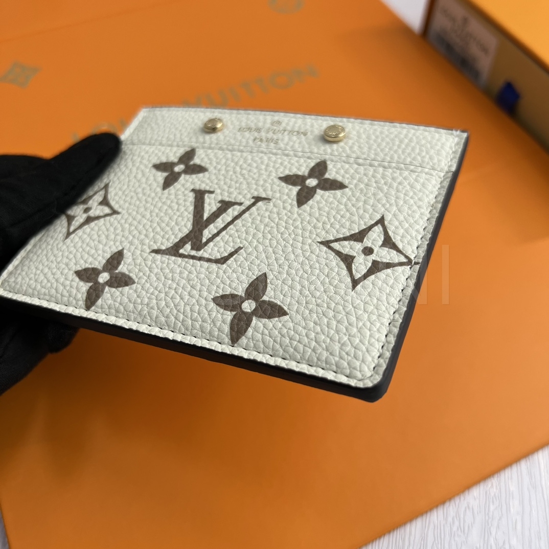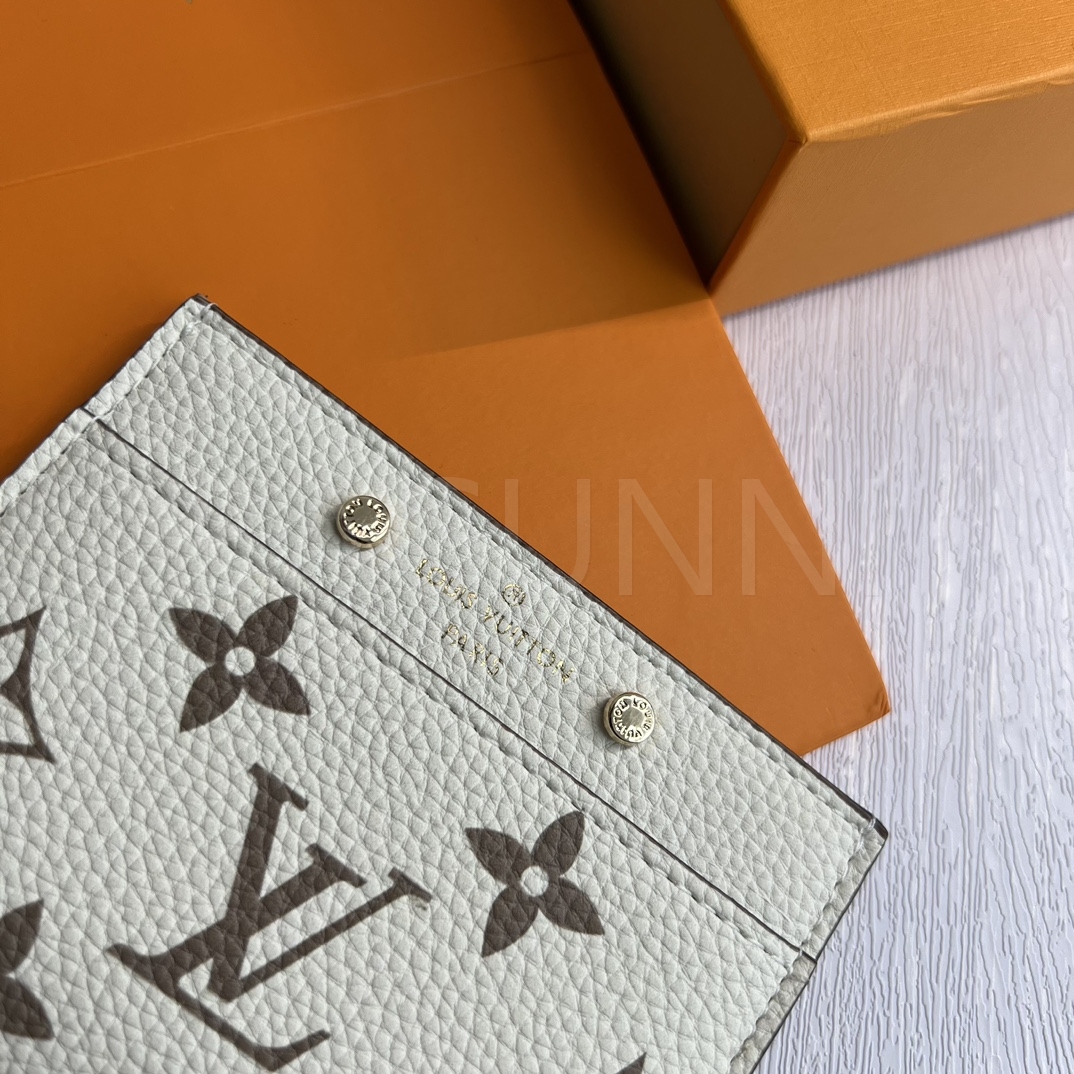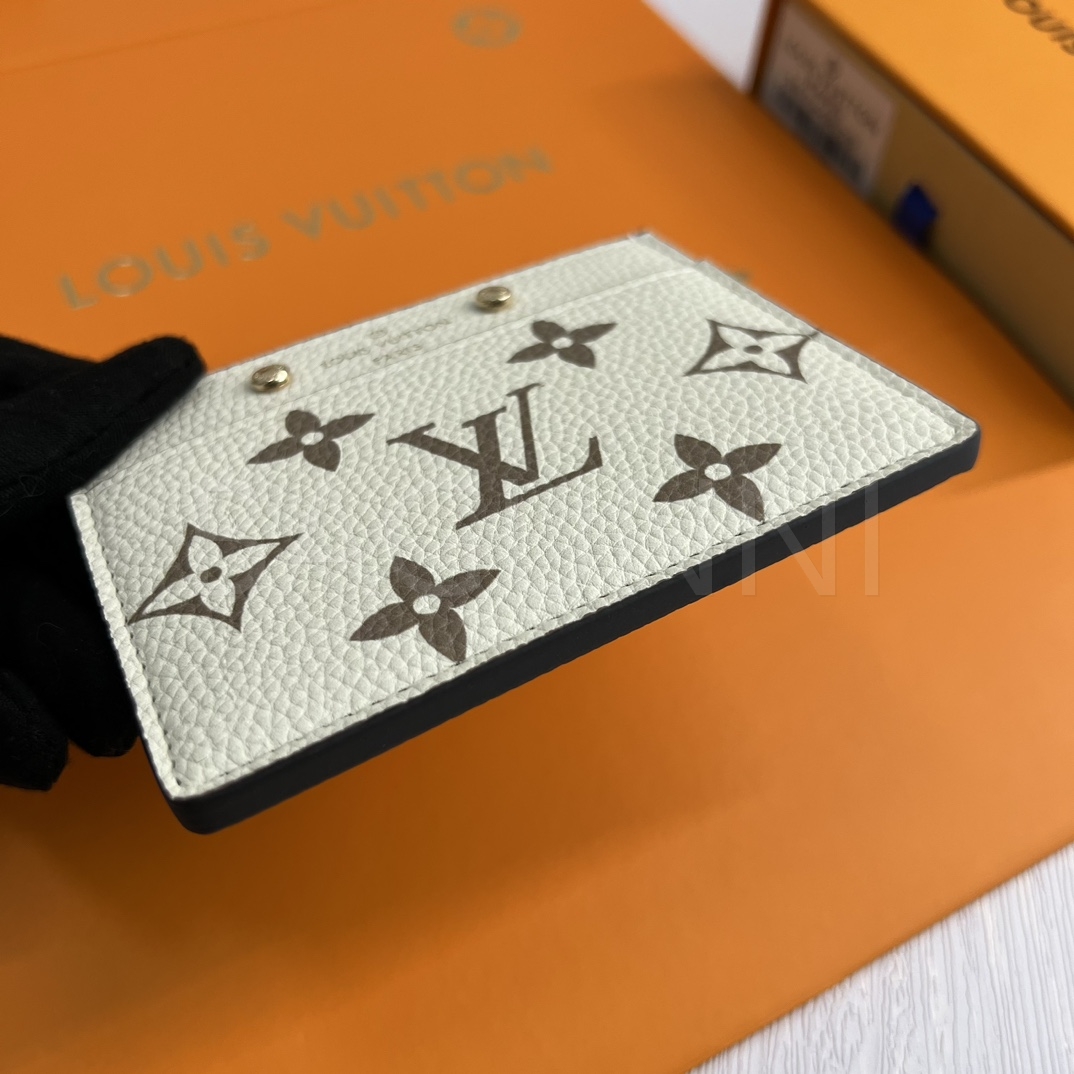 모노그램 앙프렝뜨 레더의 질감이 돋보이는 루이비통 포켓 오거나이저 카드홀더입니다.