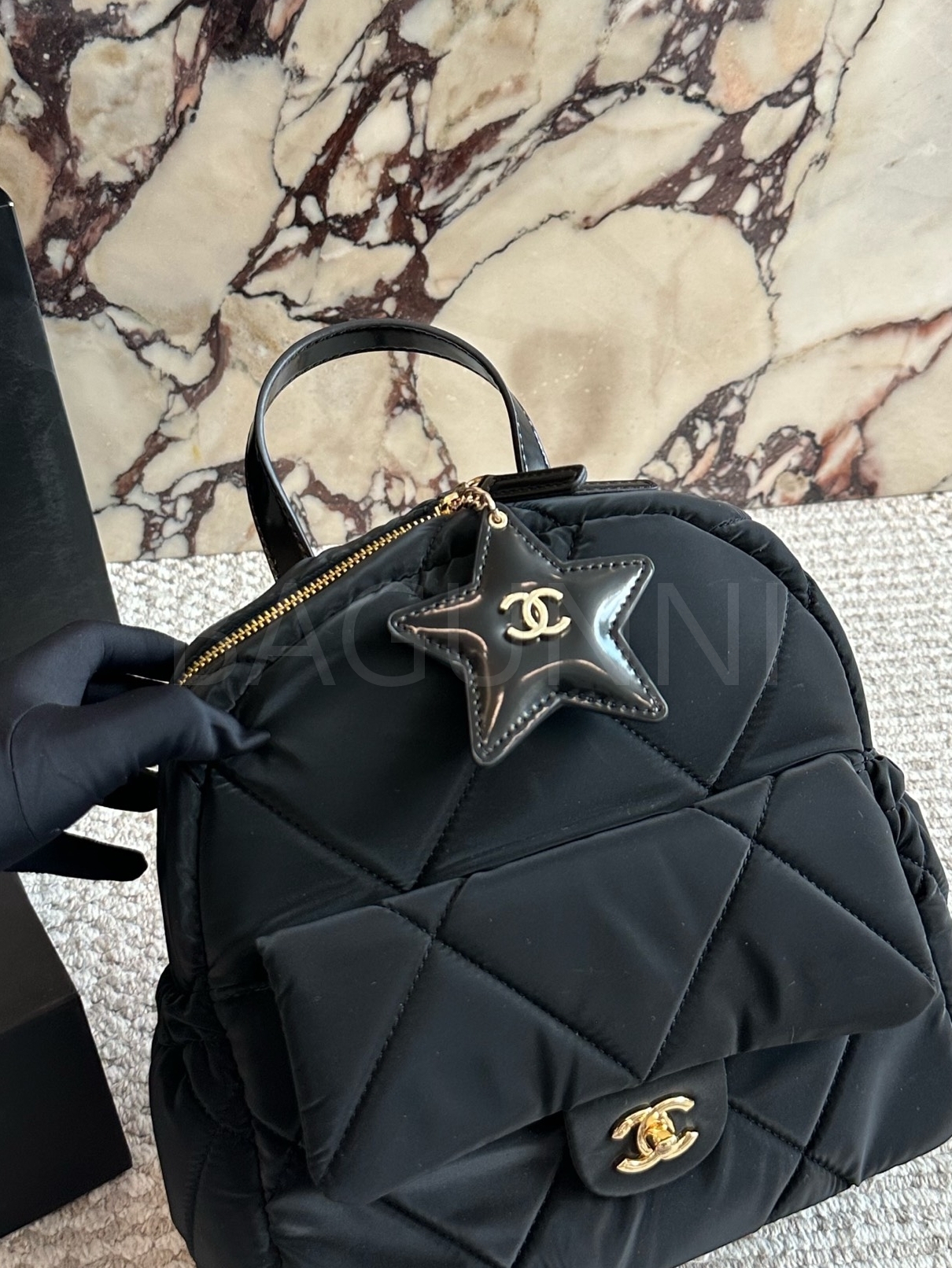 샤넬 퀼팅 스타 참 백팩