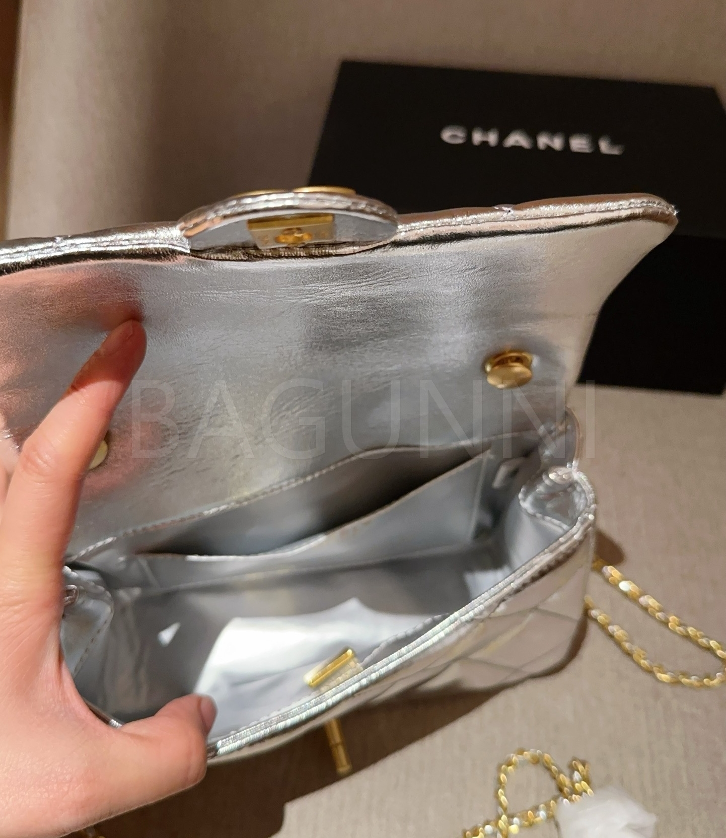 세련된 무드가 돋보이는 샤넬 클래식 플랩 미니백입니다.