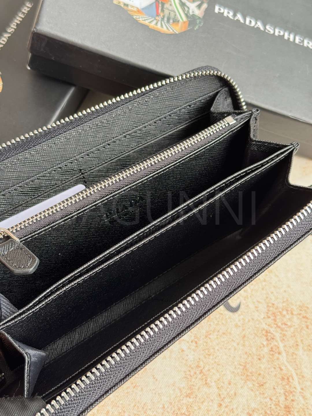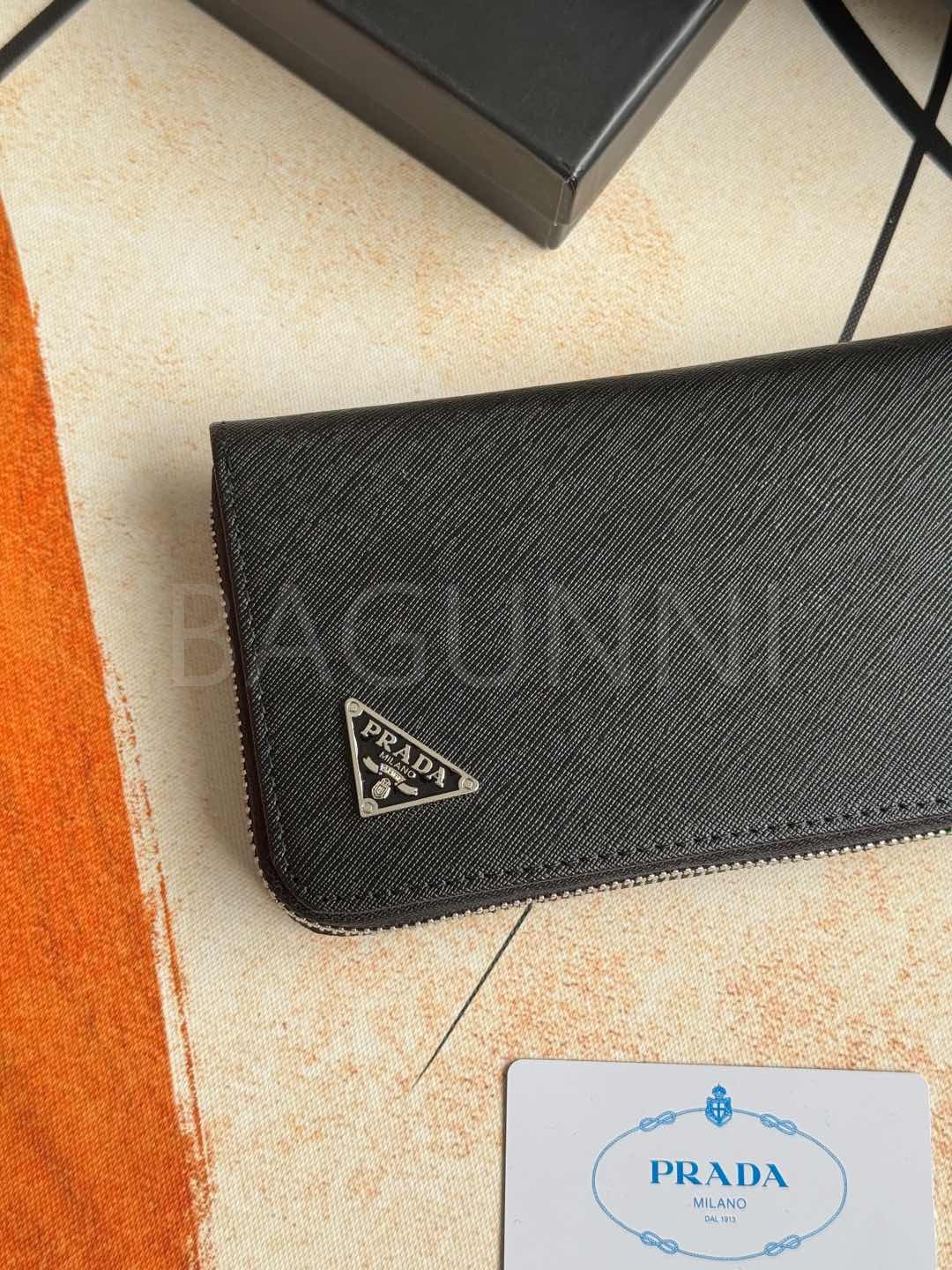 사피아노 질감이 깔끔하게 살아있는 프라다 사피아노 지퍼 장지갑입니다.