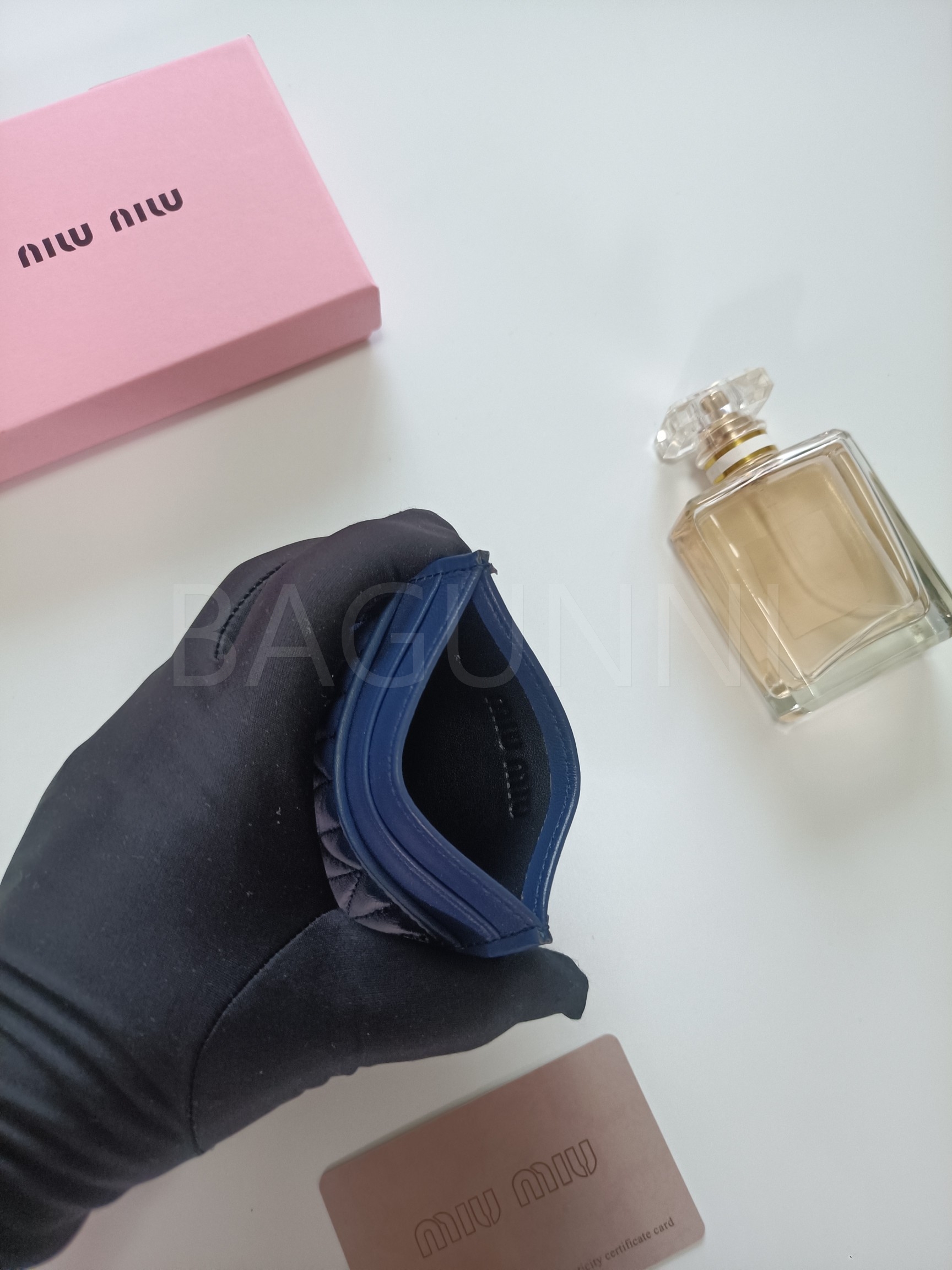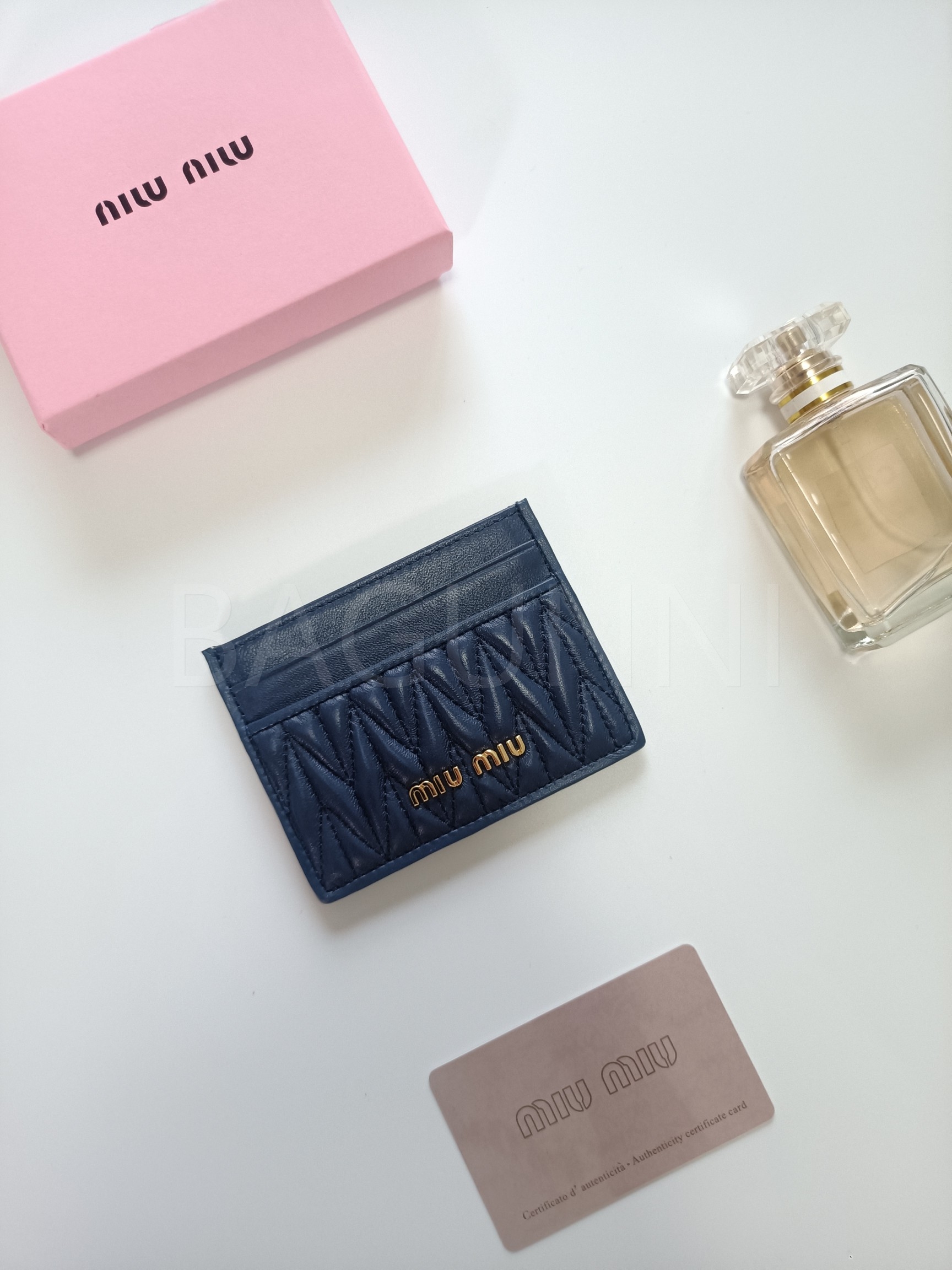 마테라쎄 가죽의 질감이 돋보이는 미우미우 마테라쎄 카드지갑입니다.