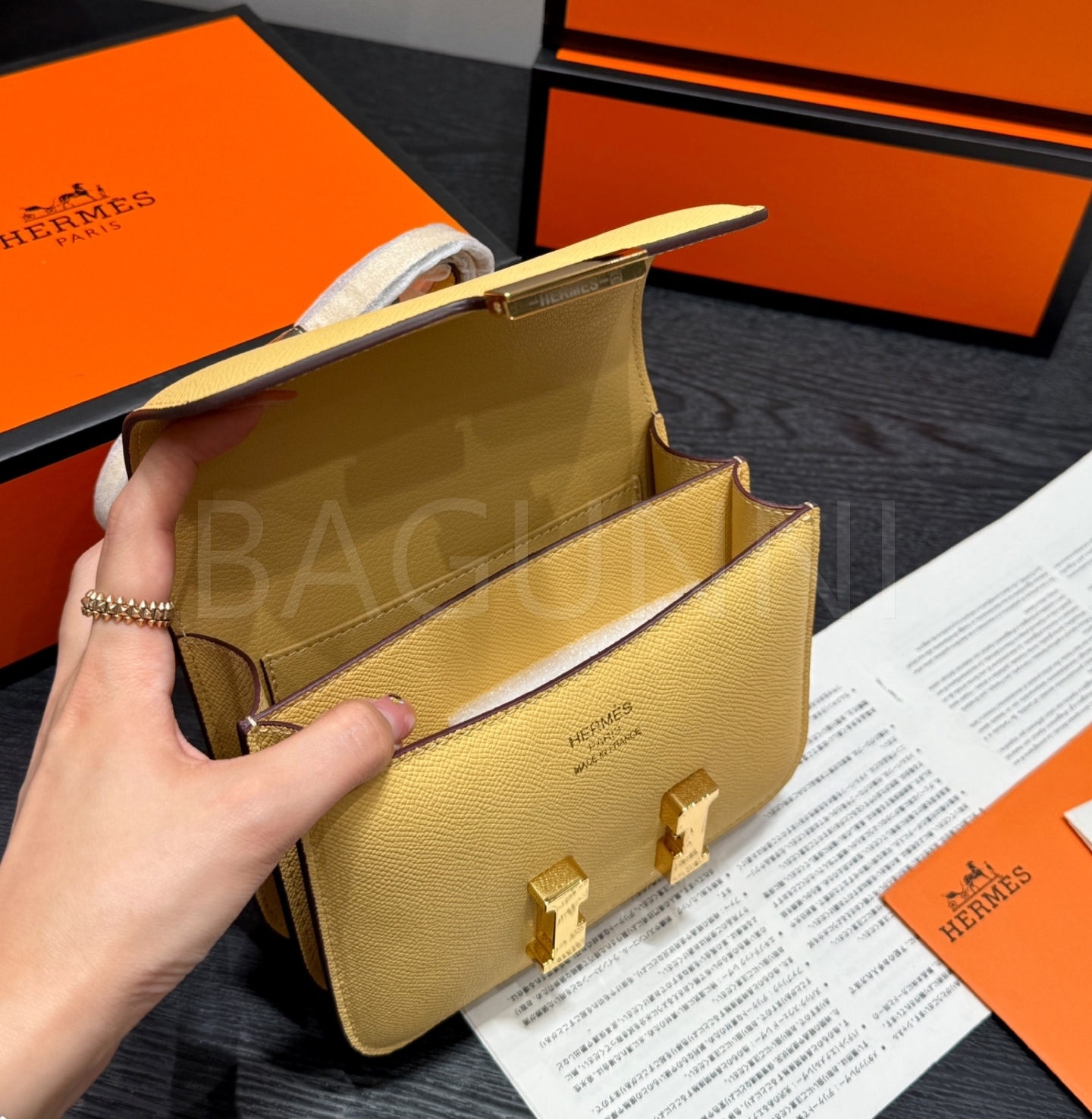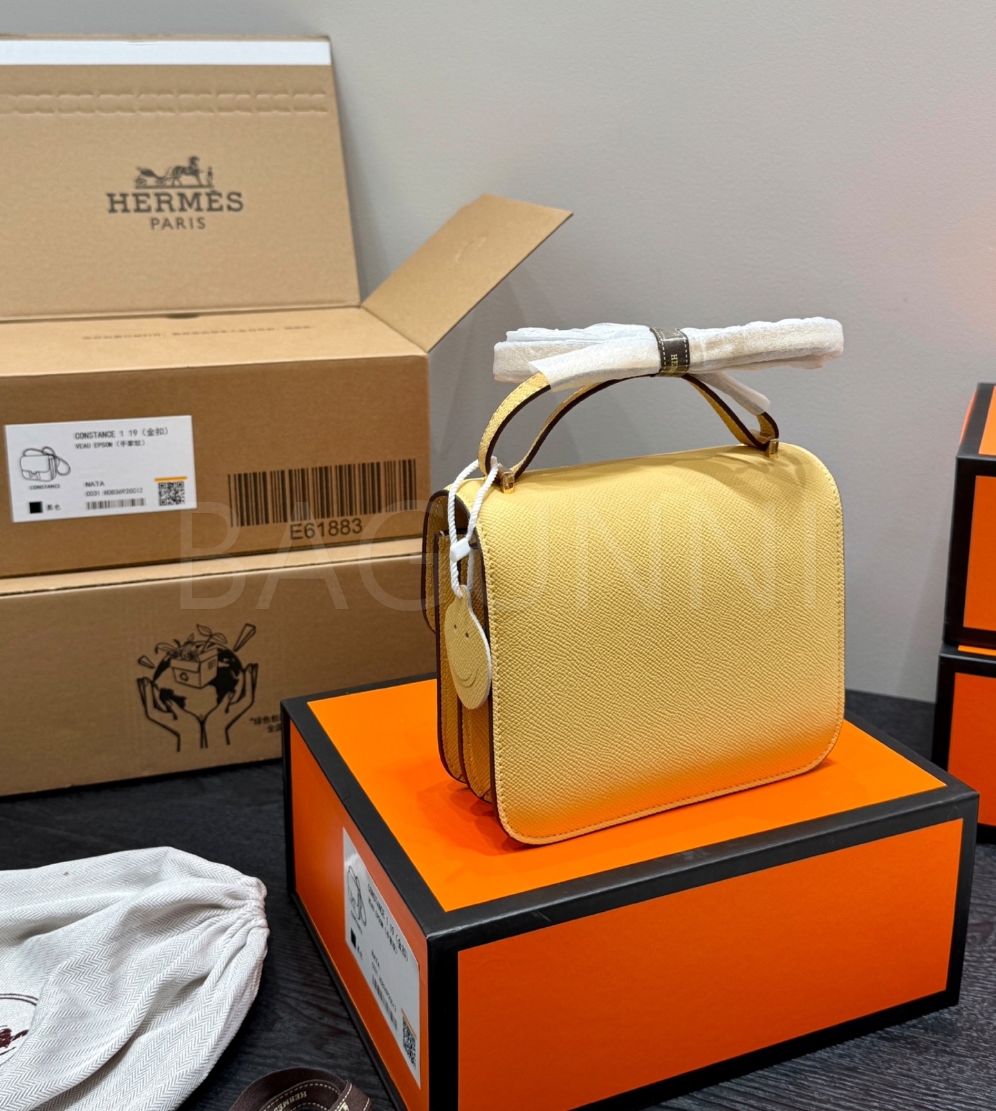 에르메스 콘스탄스 숄더백입니다. 가죽 특유의 질감이 자연스럽게 살아 있으며 브랜드 특유의 분위기를 편하게 즐기기 좋습니다.