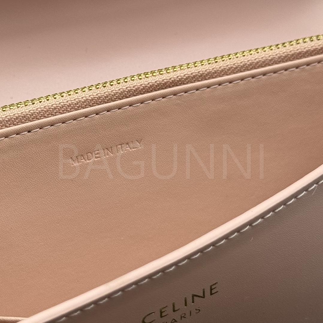 셀린느 특유의 무드가 자연스럽게 살아있는 트리옹프 지퍼 카드지갑입니다.