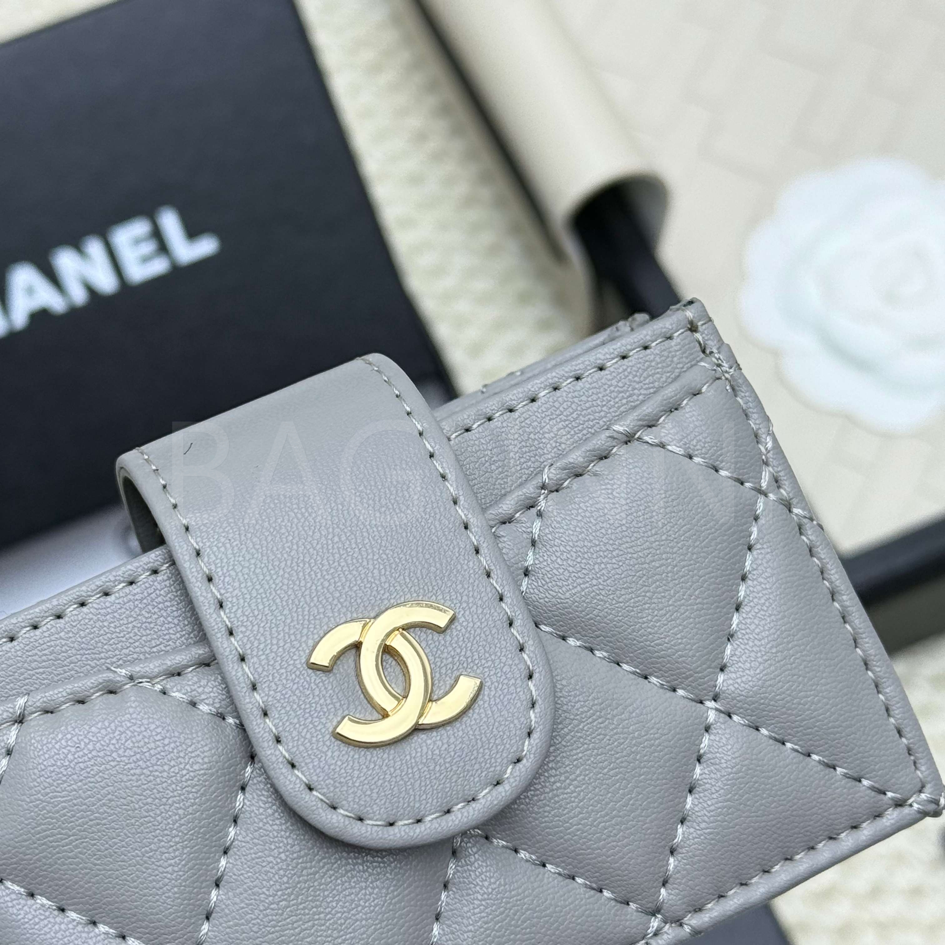 엠보싱 레더의 질감이 돋보이는 샤넬 클래식 플랩 카드지갑입니다.