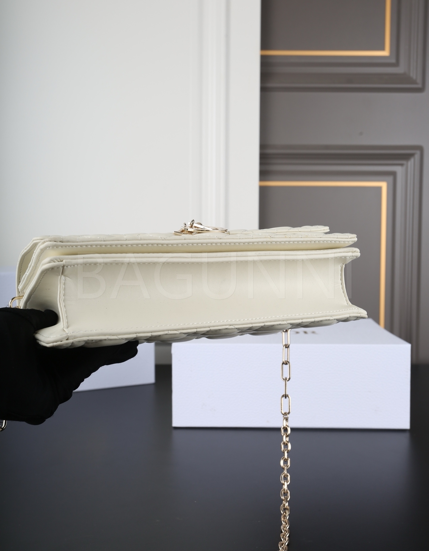 디올 미스 디올 체인백입니다. 램스킨 특유의 질감이 자연스럽게 살아 있으며 블랙 톤이 어우러져 브랜드 특유의 분위기를 편하게 즐기기 좋습니다.