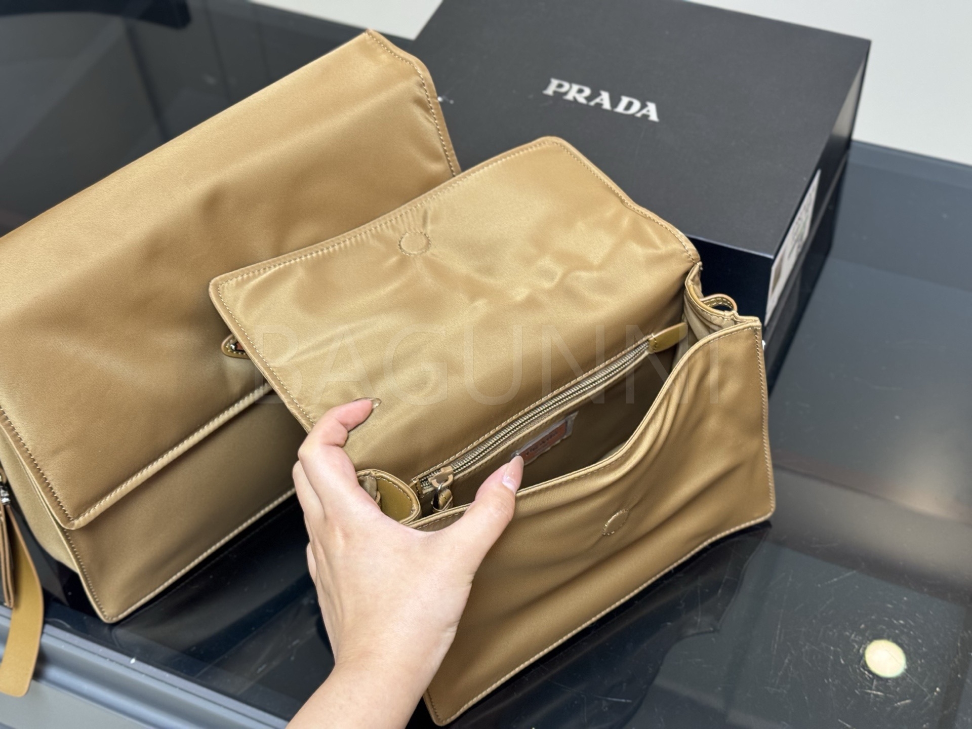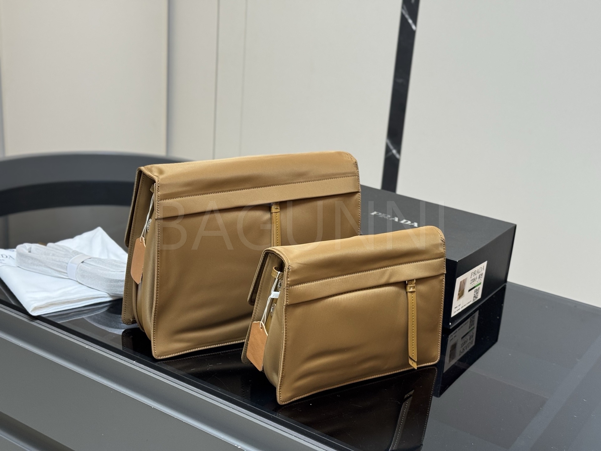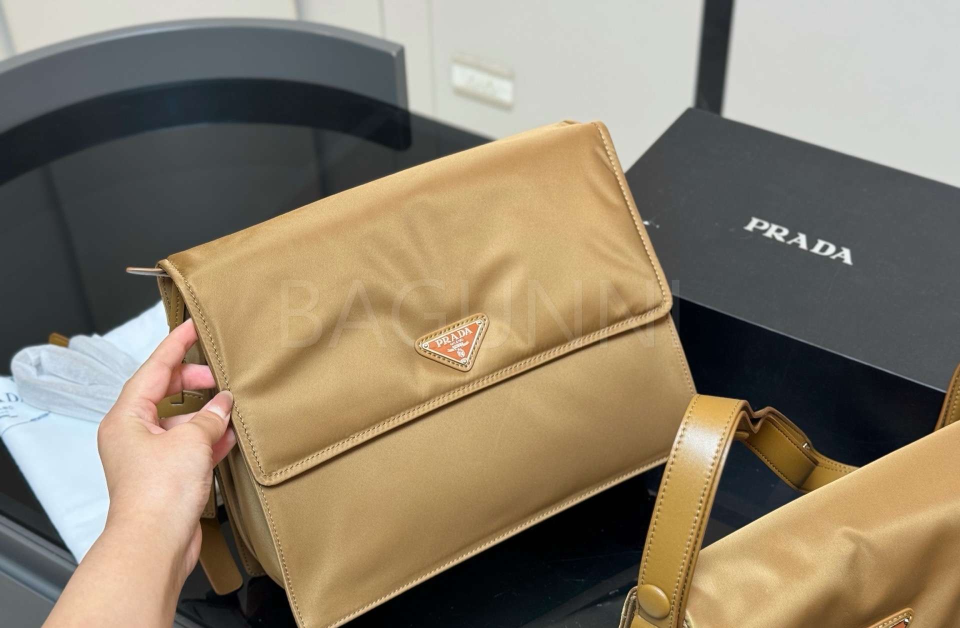 프라다 메신저백은 세련된 실루엣을 담은 아이템입니다.