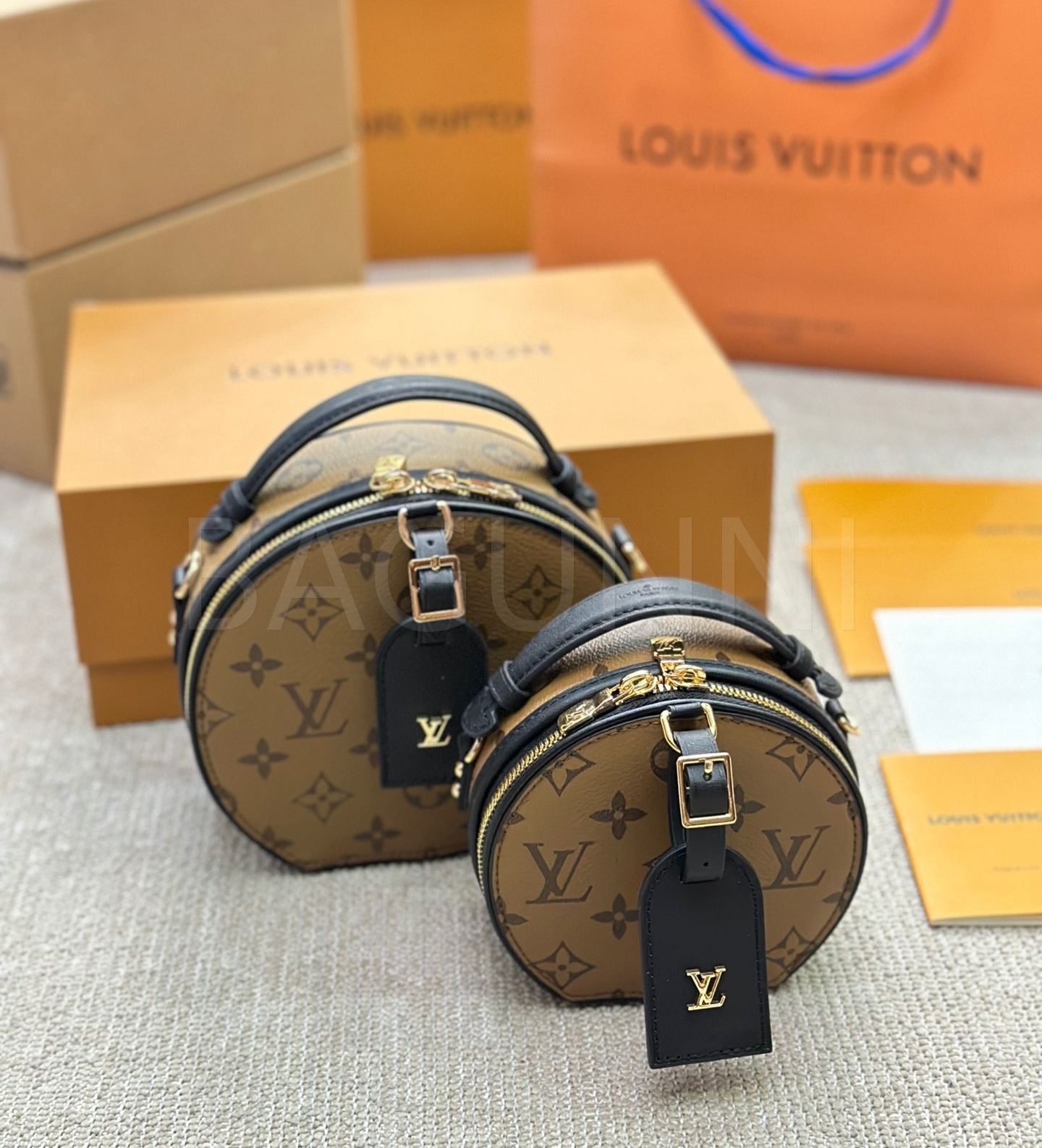 클래식한 캔버스 무드가 돋보이는 루이비통 원형 숄더백입니다.