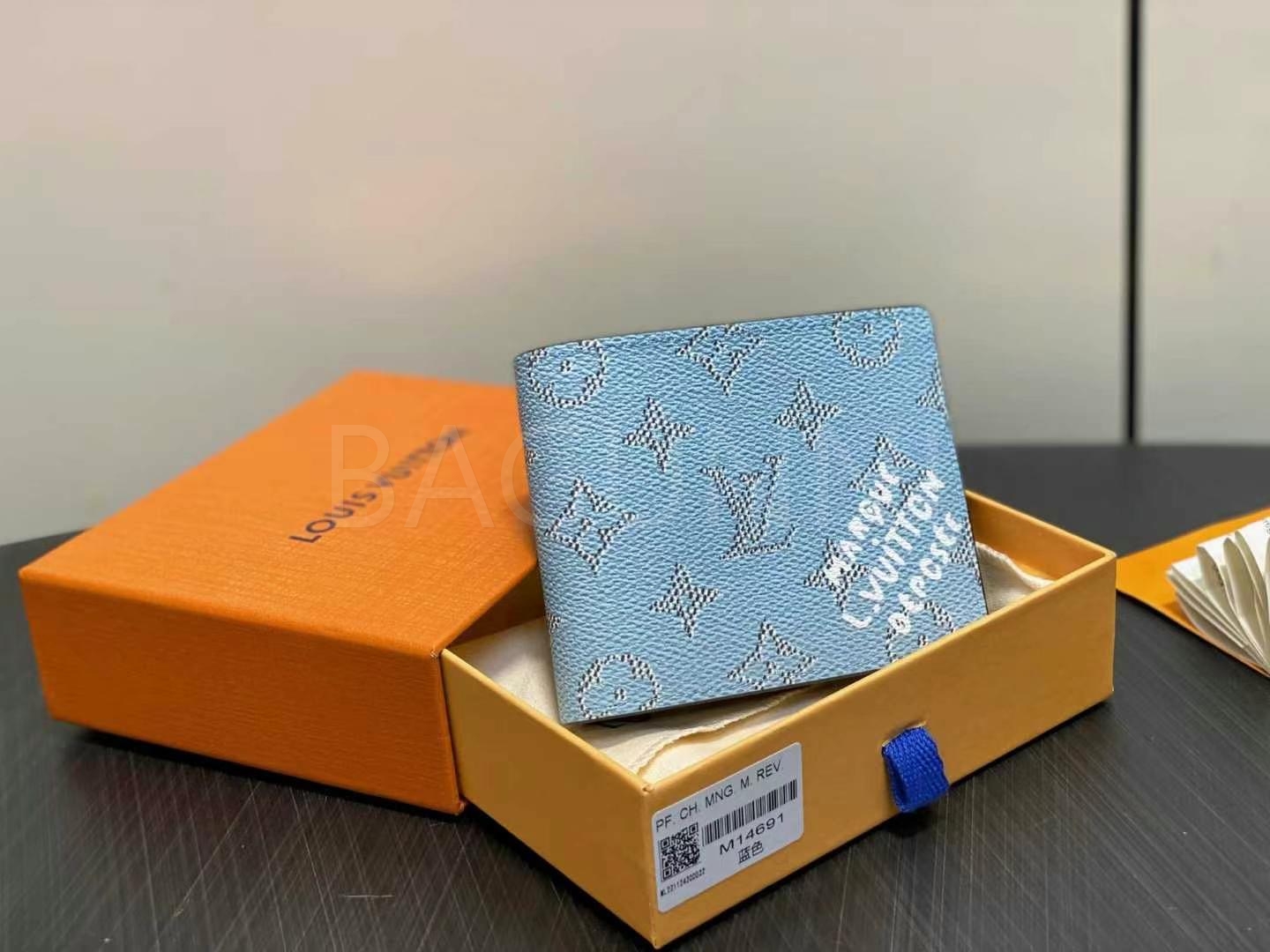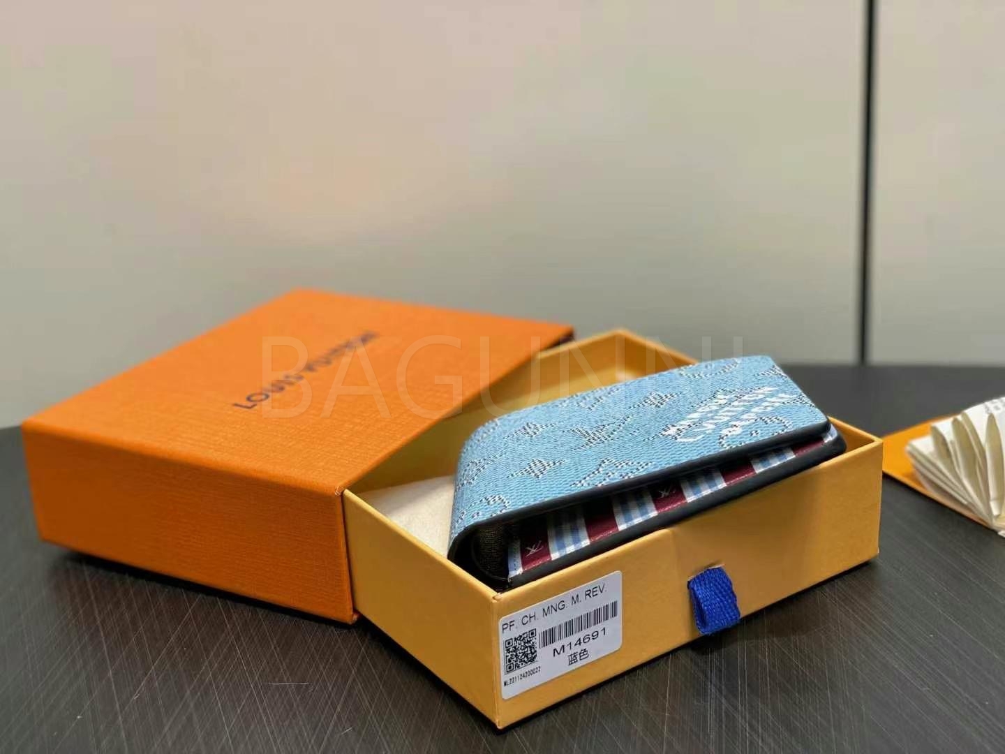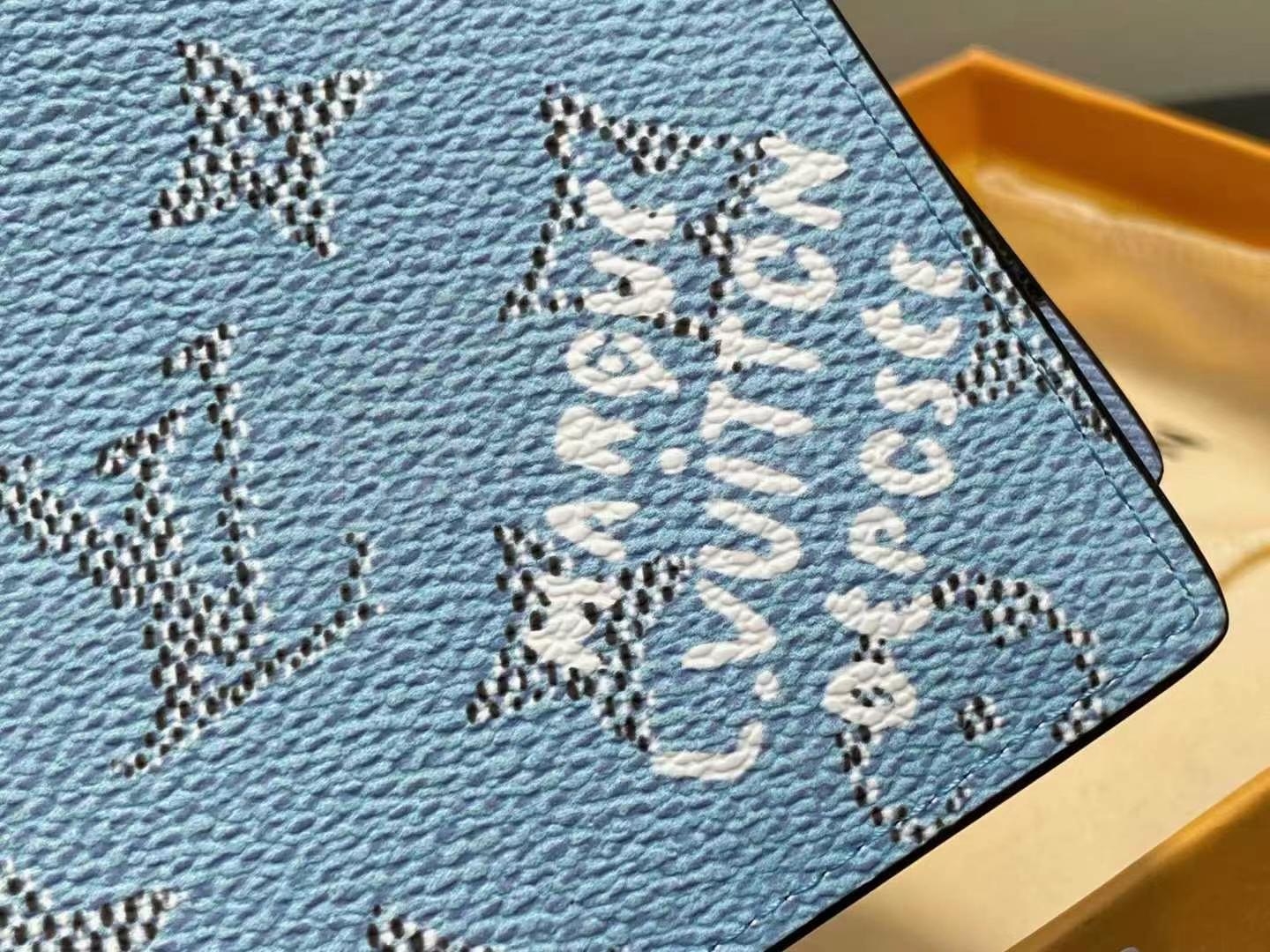 모노그램 캔버스의 질감이 돋보이는 루이비통 멀티플 반지갑입니다.
