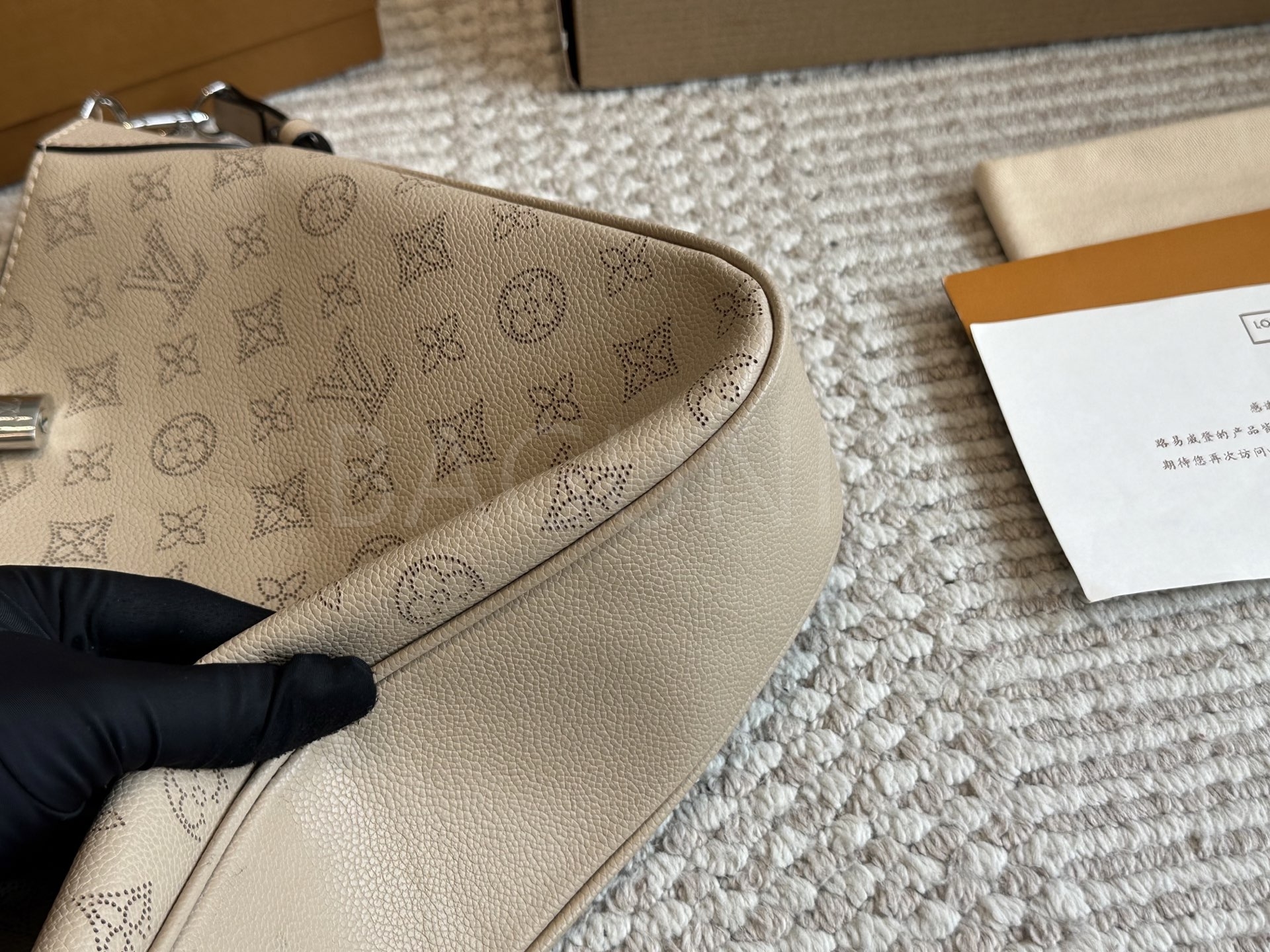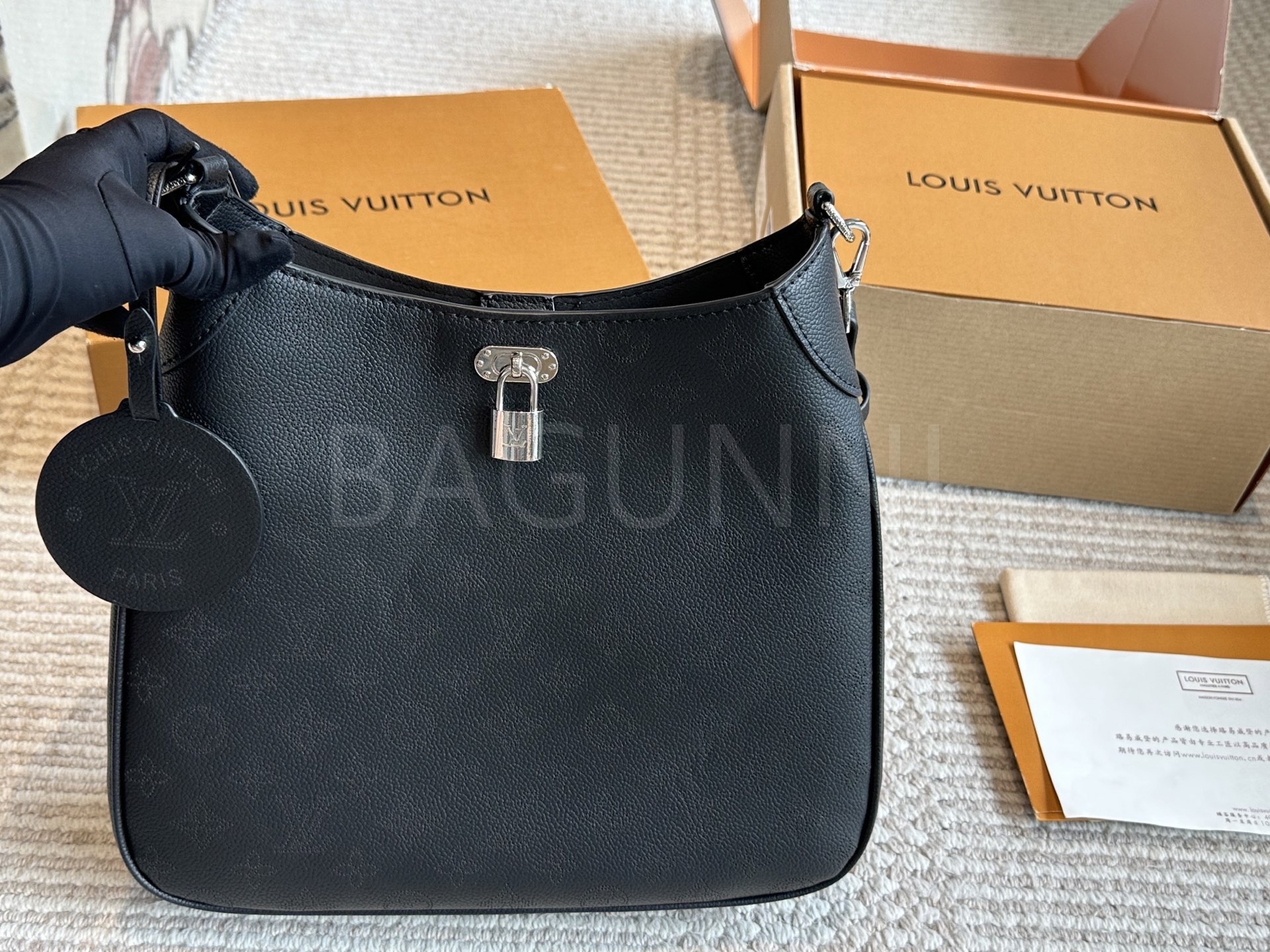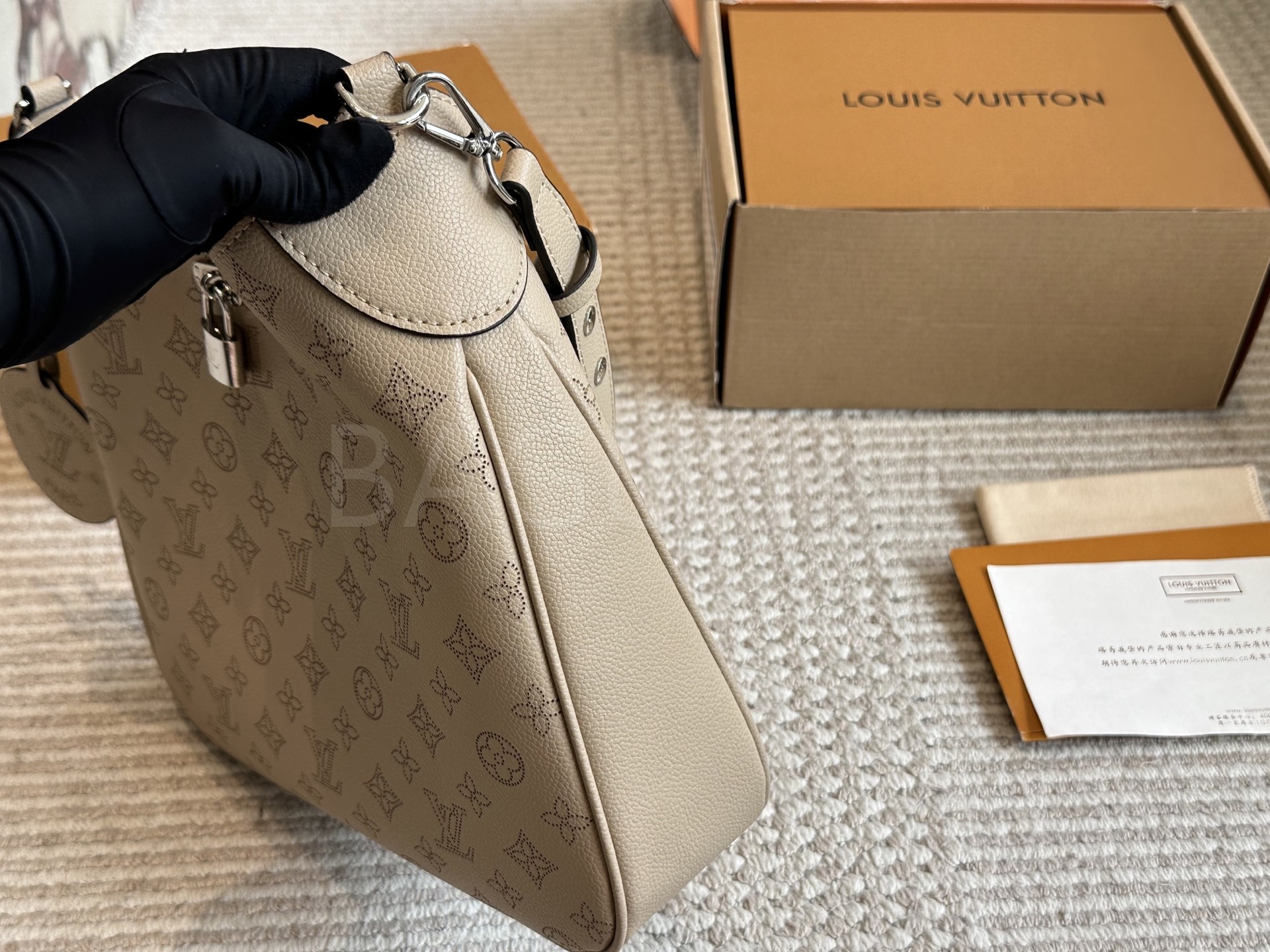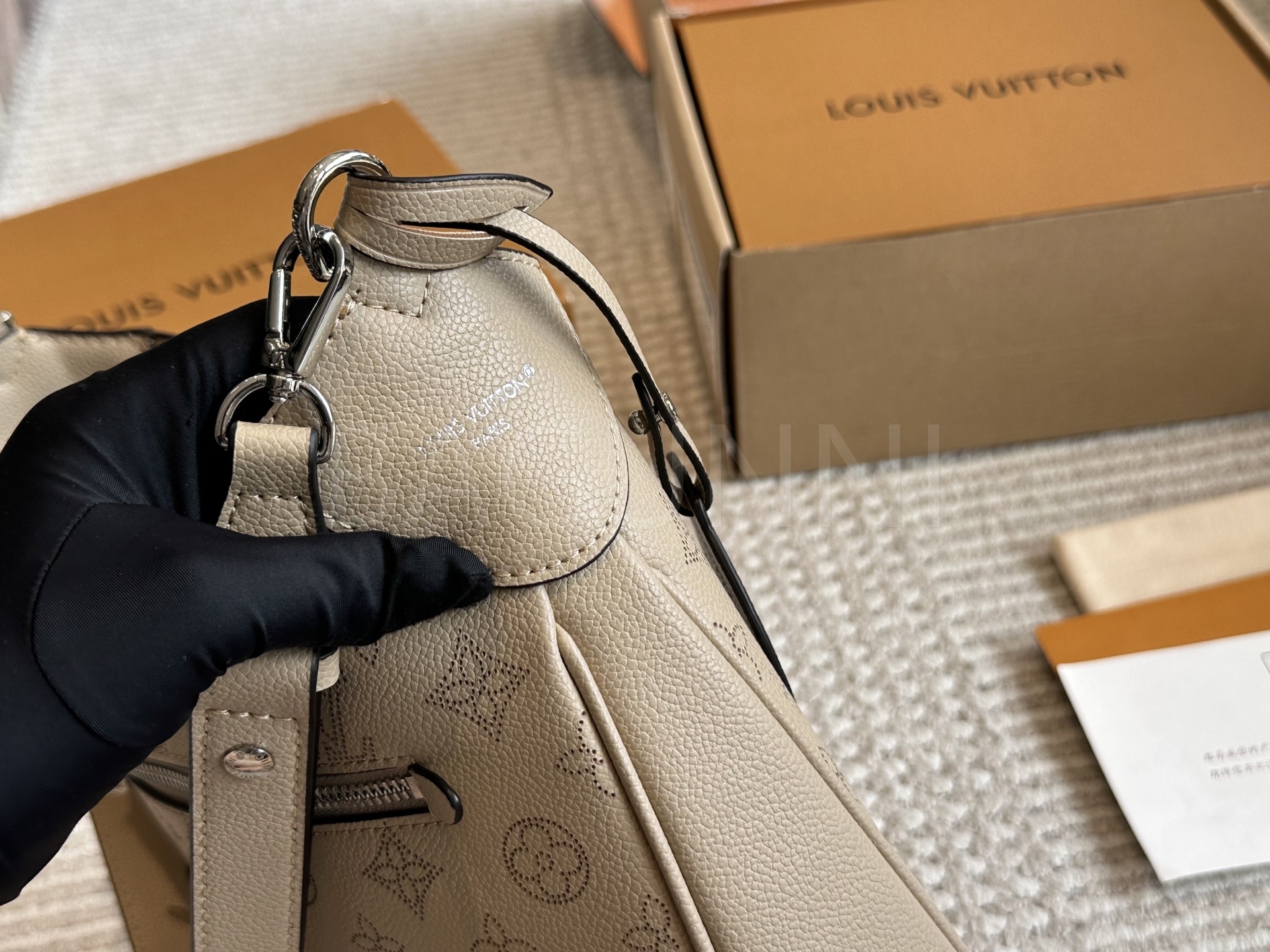 가죽 소재의 매력이 자연스럽게 살아 있는 루이비통 노에 버킷 백입니다.