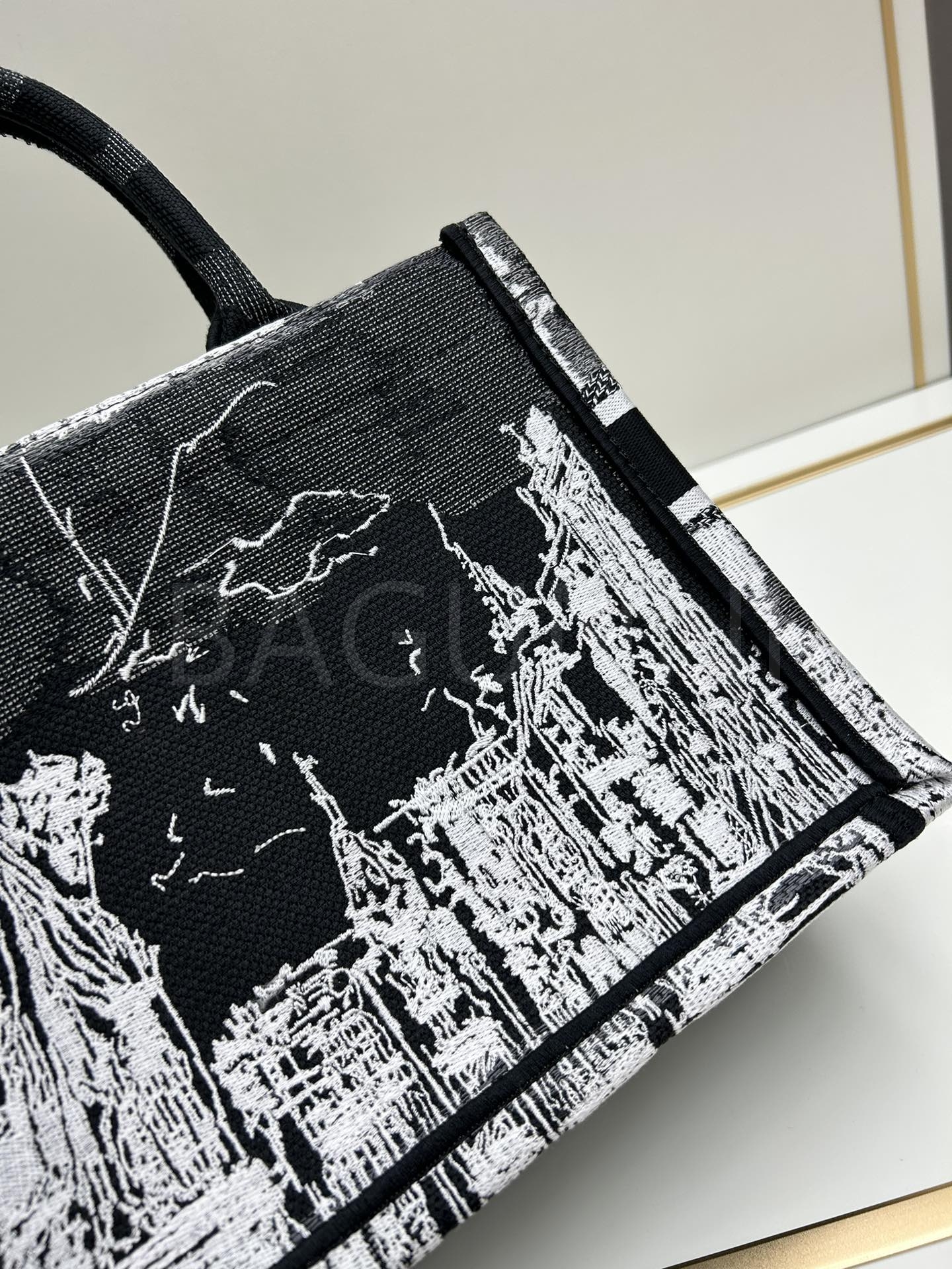 디올 북 토트입니다. 블루 톤이 어우러져 브랜드 특유의 분위기를 편하게 즐기기 좋습니다.