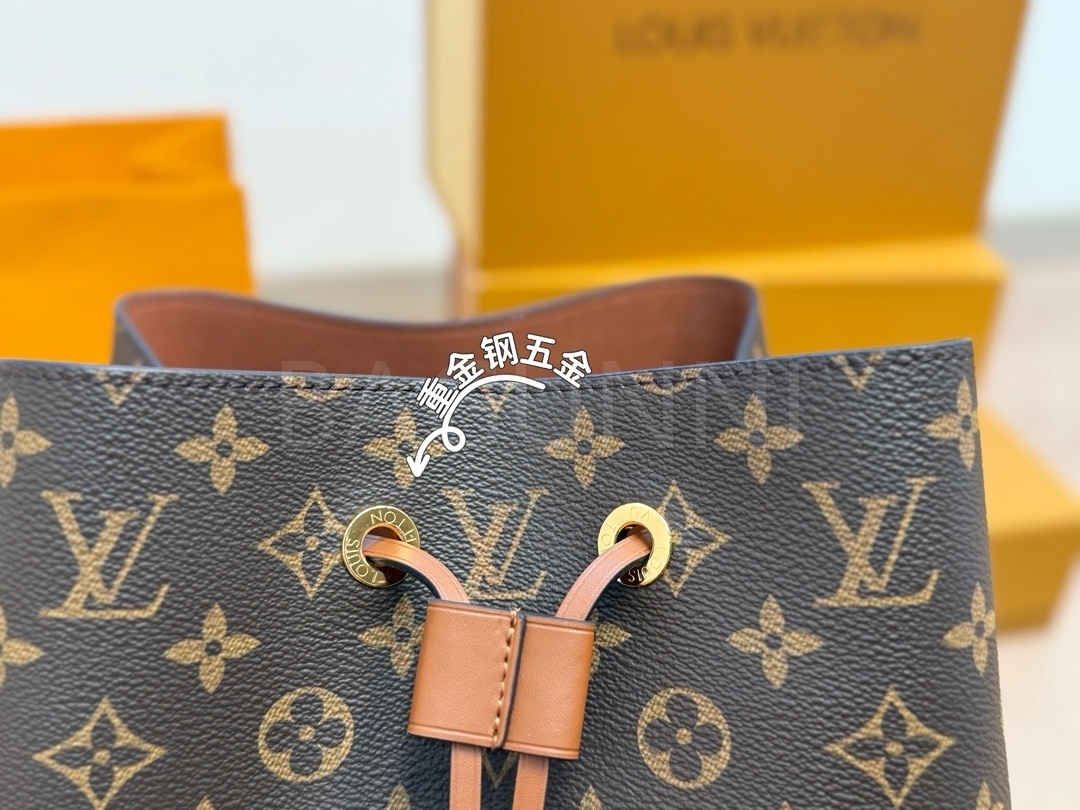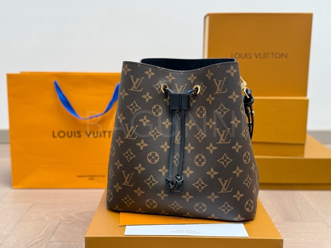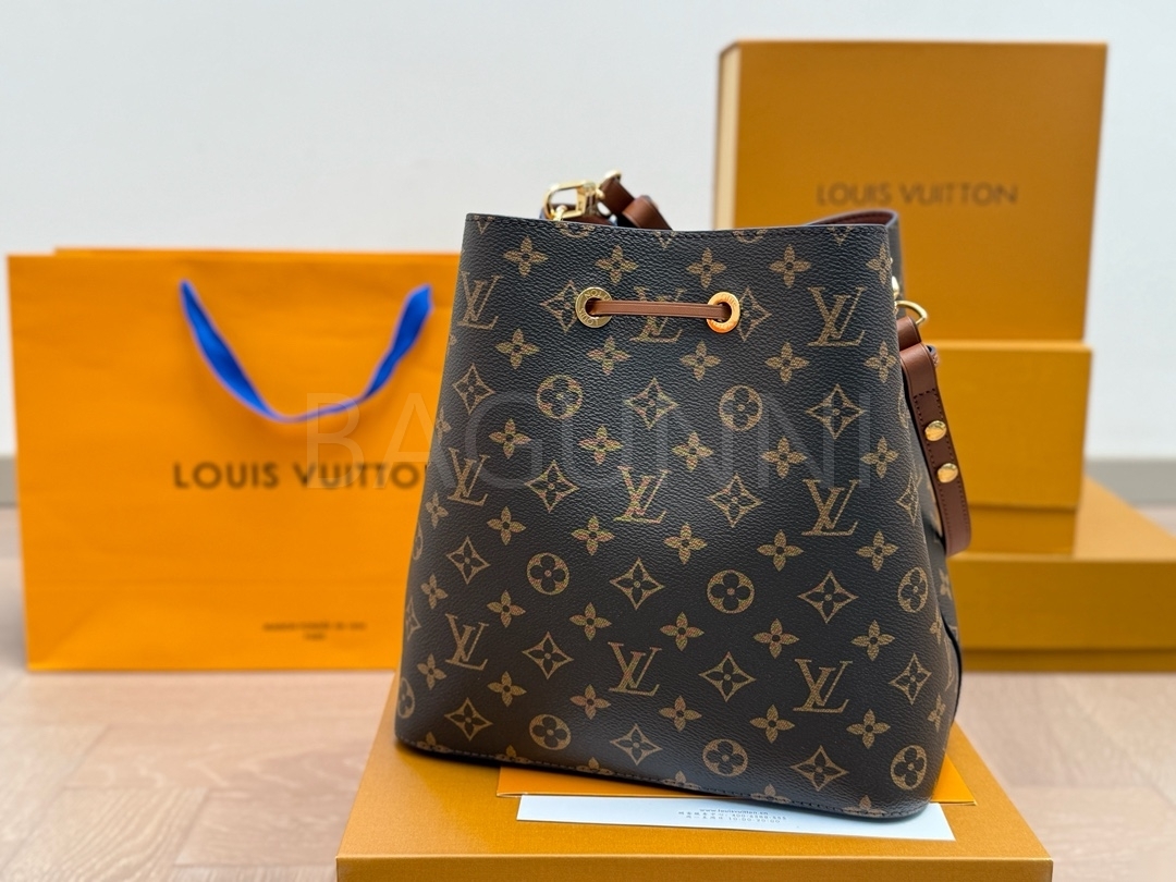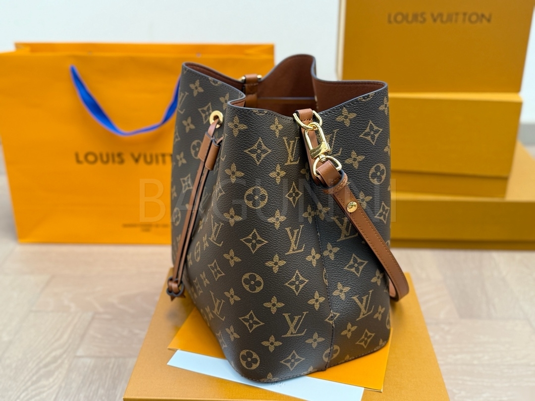 클래식한 캔버스 무드가 돋보이는 루이비통 노에 버킷 백입니다.
