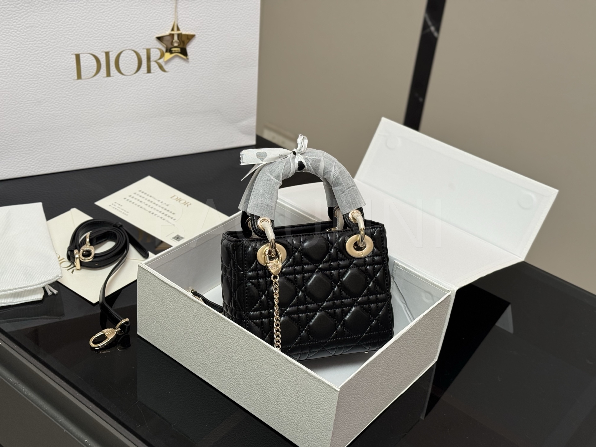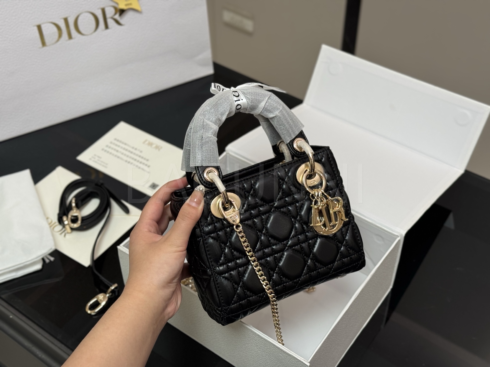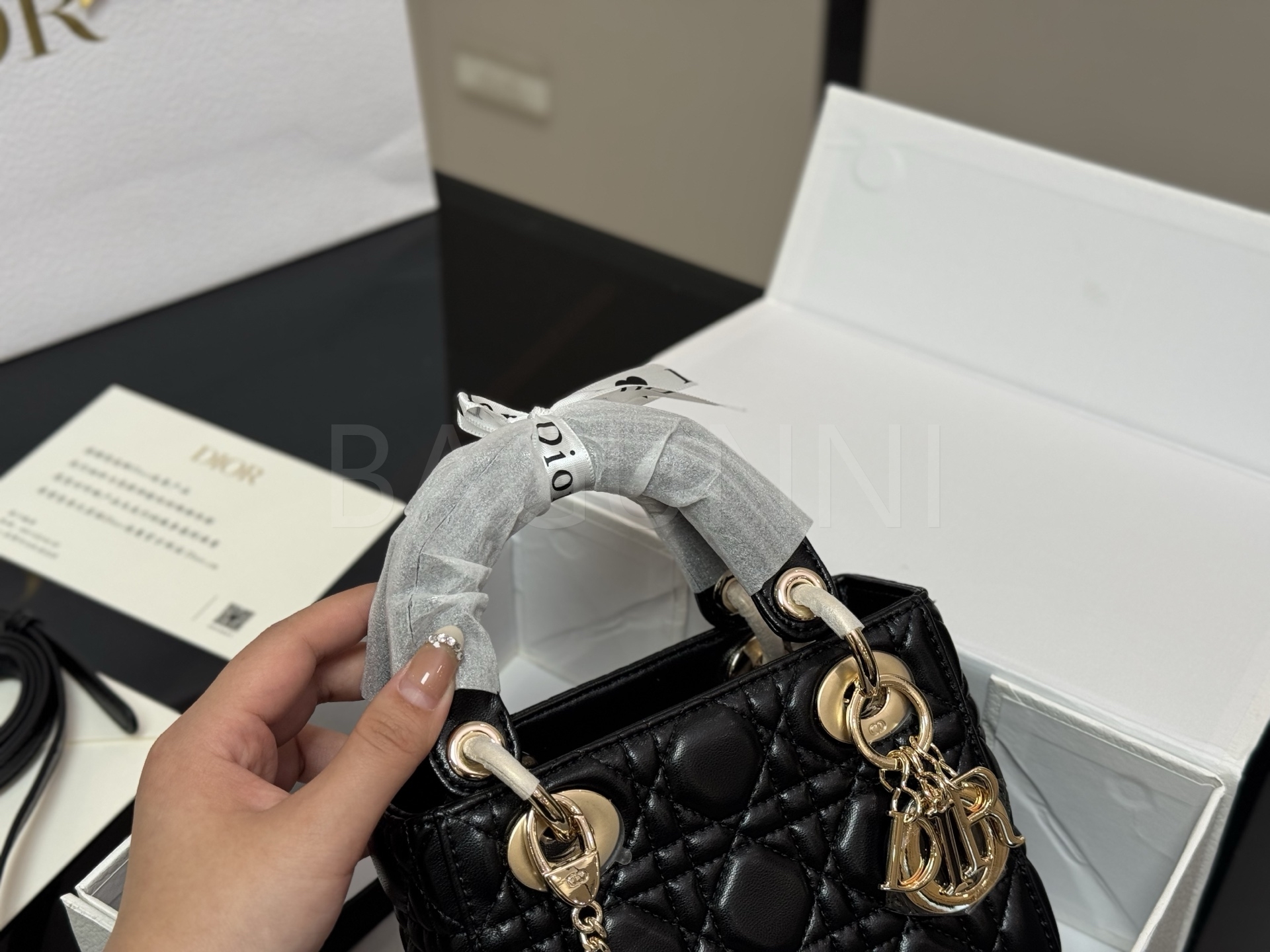 디올 레이디 디올 탑핸들백입니다. 램스킨 특유의 질감이 자연스럽게 살아 있으며 브랜드 특유의 분위기를 편하게 즐기기 좋습니다.