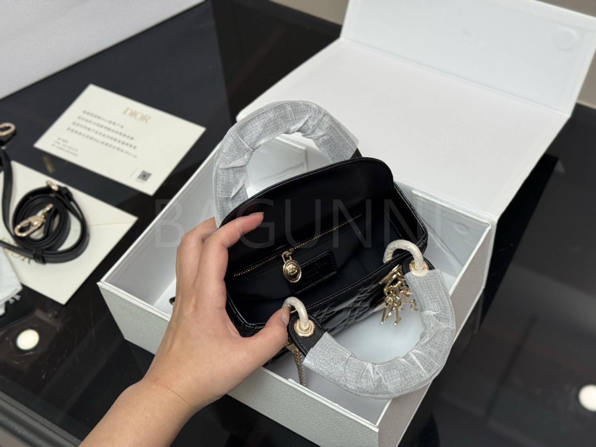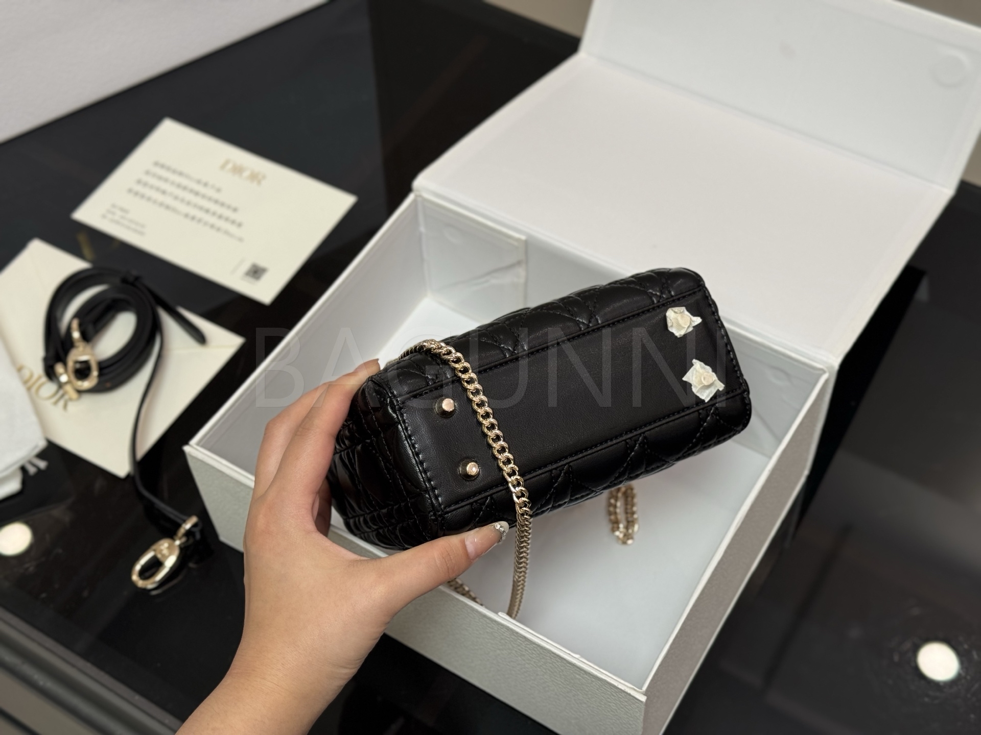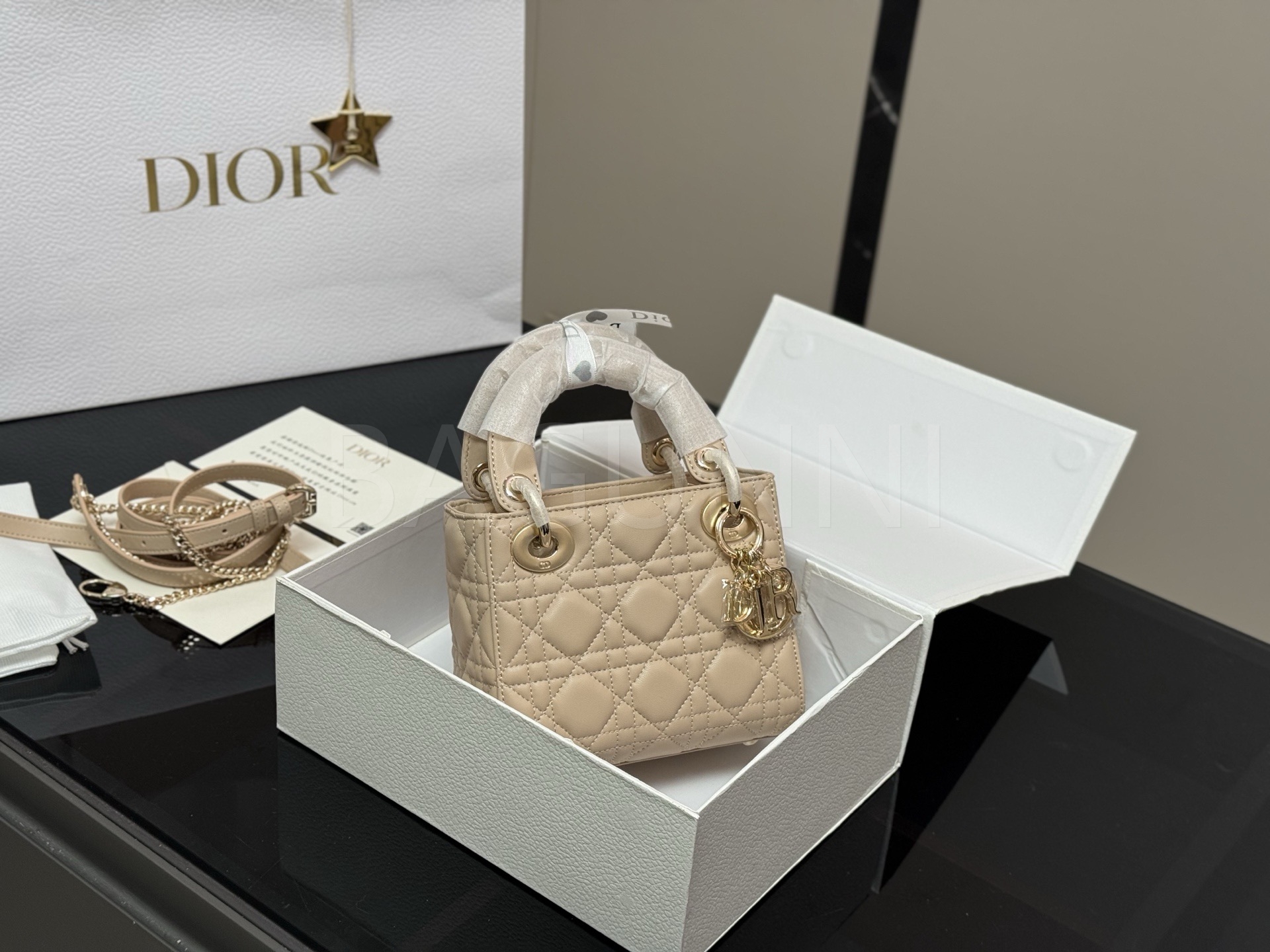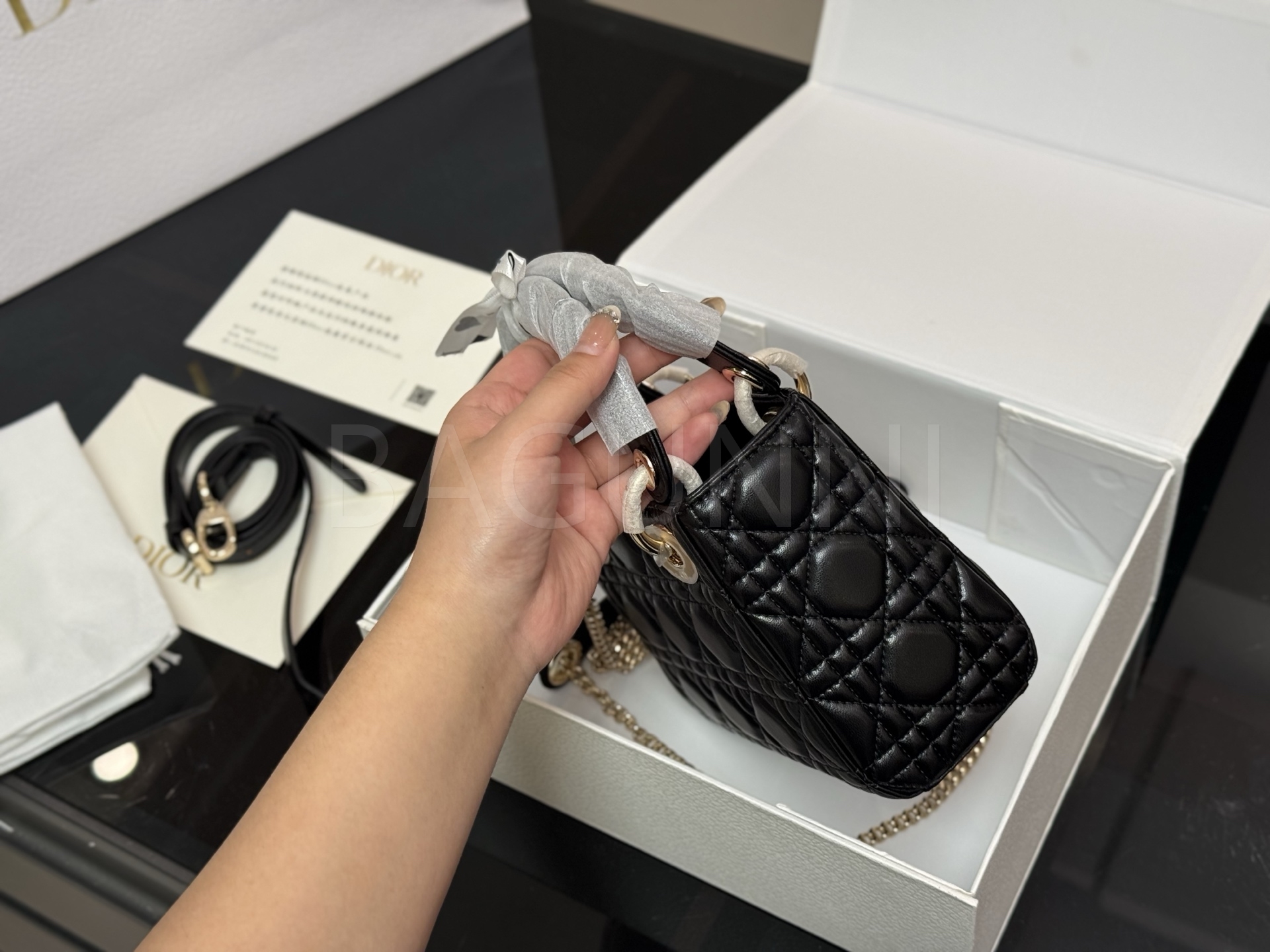 디올 레이디 디올 탑핸들백입니다. 램스킨 특유의 질감이 자연스럽게 살아 있으며 브랜드 특유의 분위기를 편하게 즐기기 좋습니다.