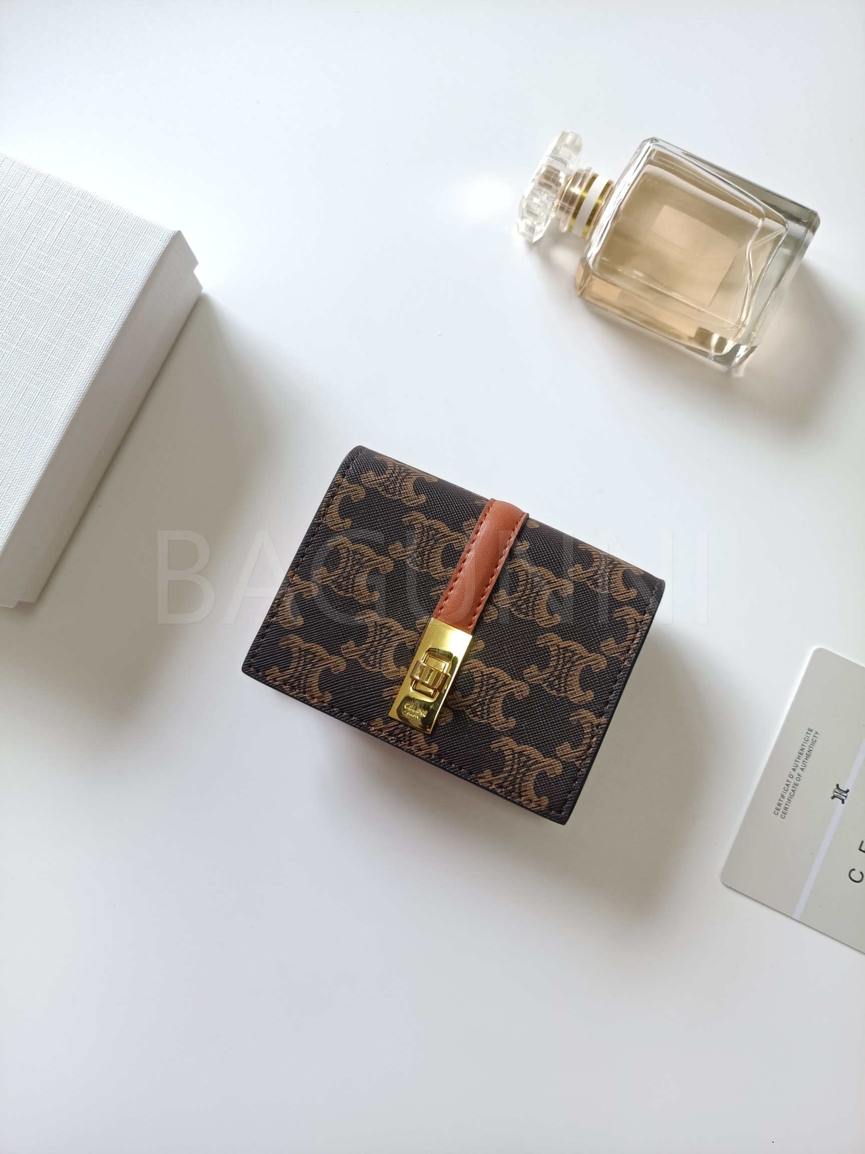 셀린느 특유의 무드가 자연스럽게 살아있는 트리옹프 플랩 카드지갑입니다.