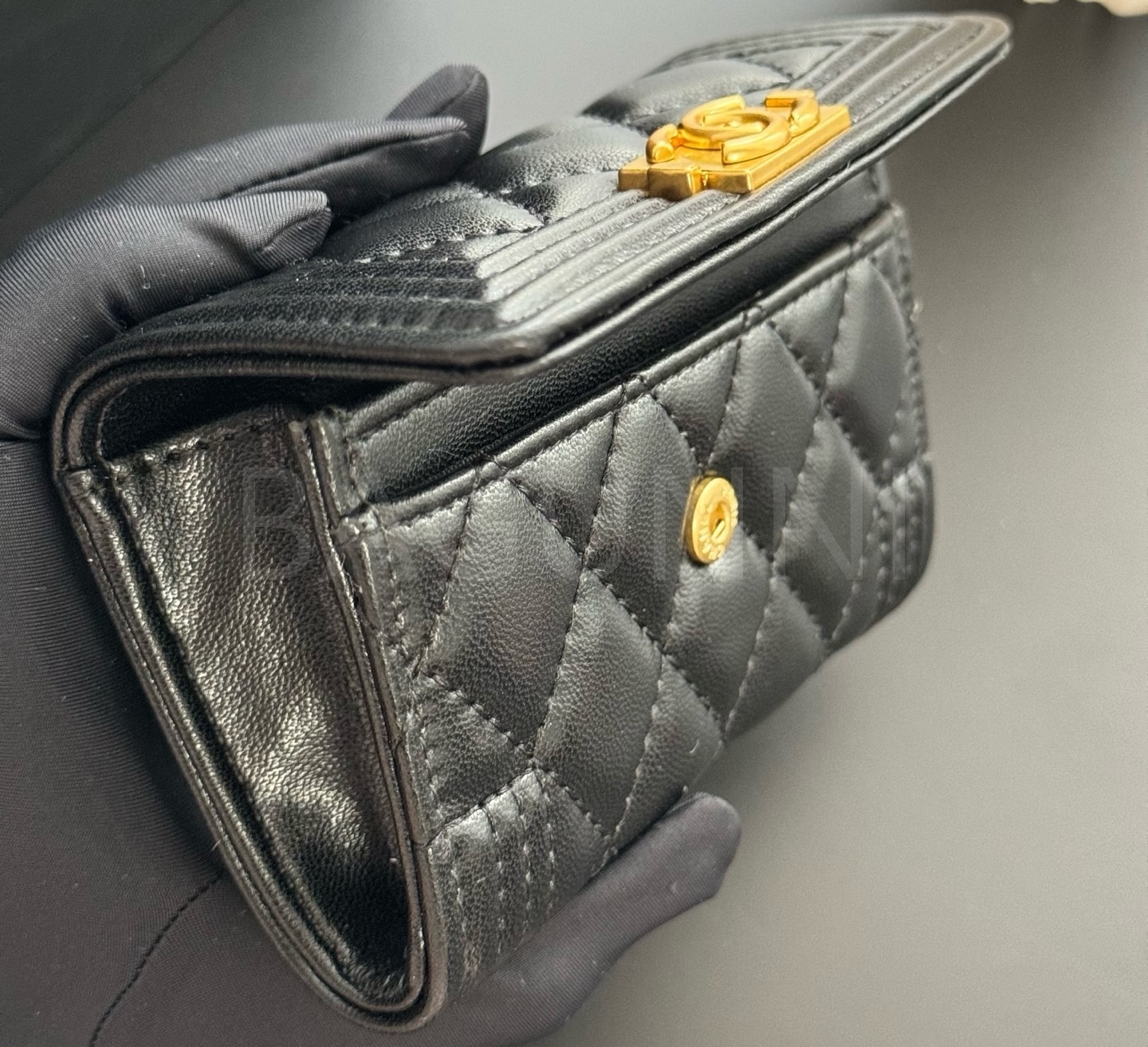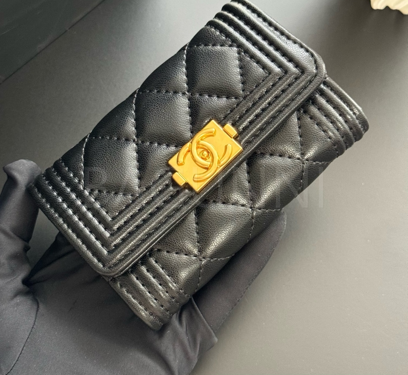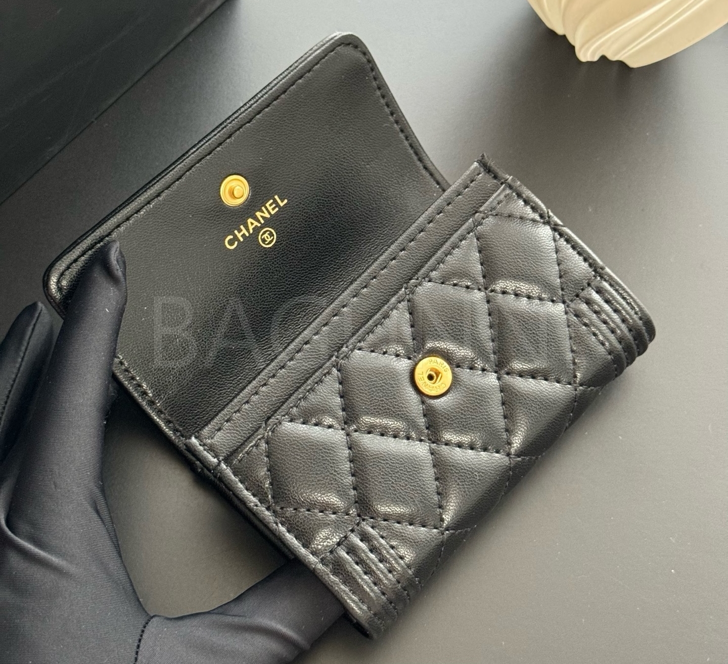 샤넬 특유의 무드가 자연스럽게 살아있는 보이 카드지갑입니다.