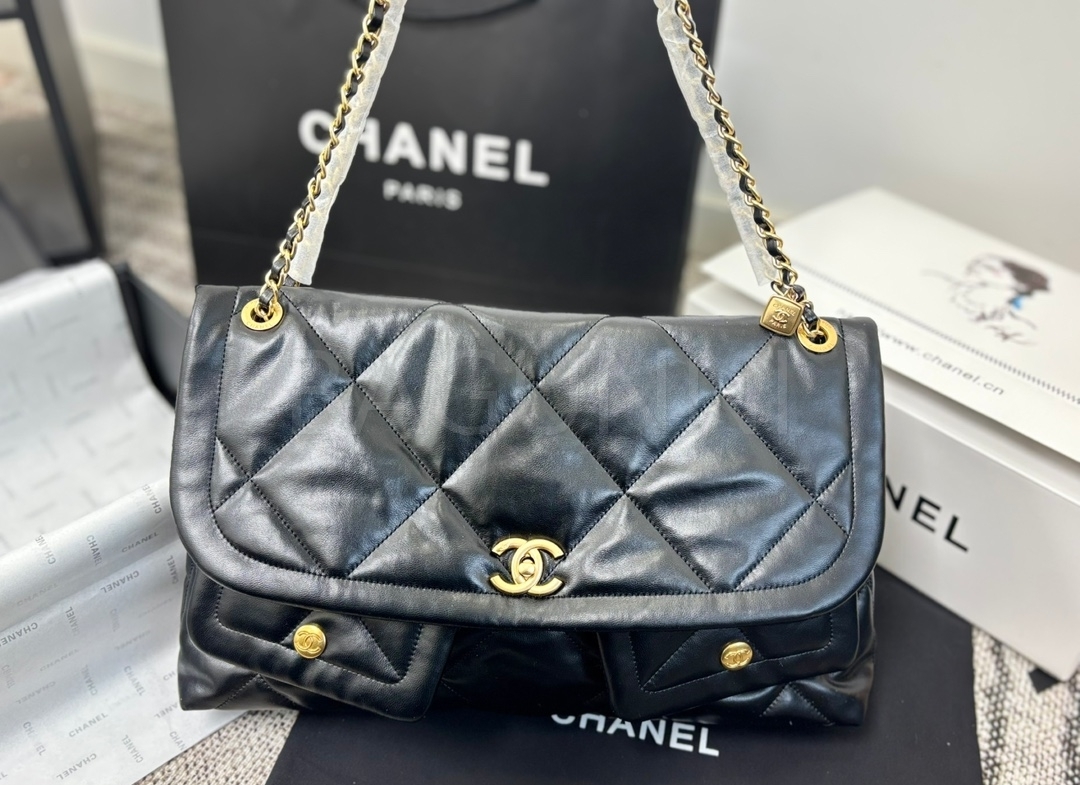 샤넬 포켓 플랩 체인 숄더백은 세련된 실루엣을 담은 아이템입니다.