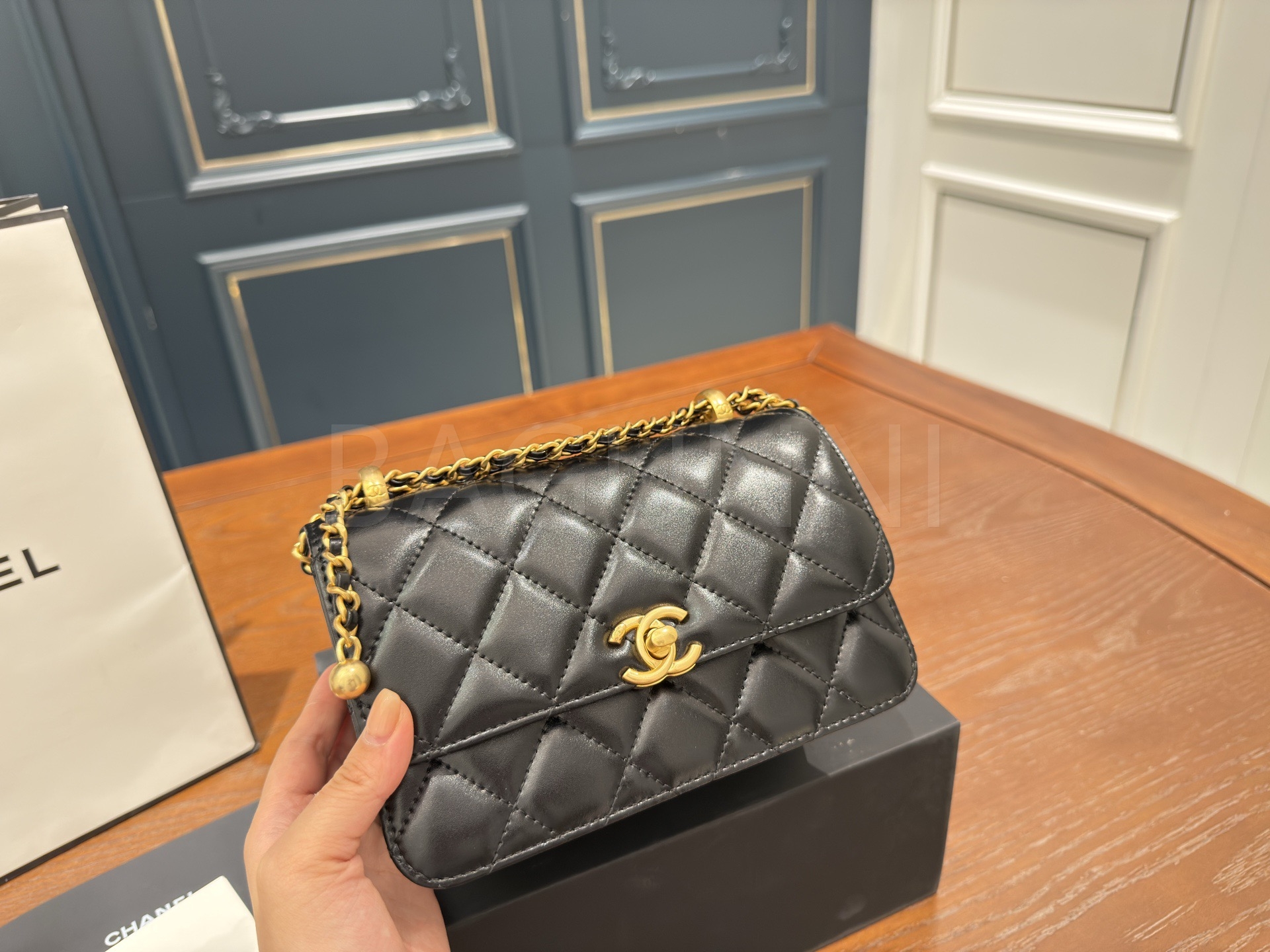 세련된 무드가 돋보이는 샤넬 더블 볼 WOC 체인 월렛입니다.