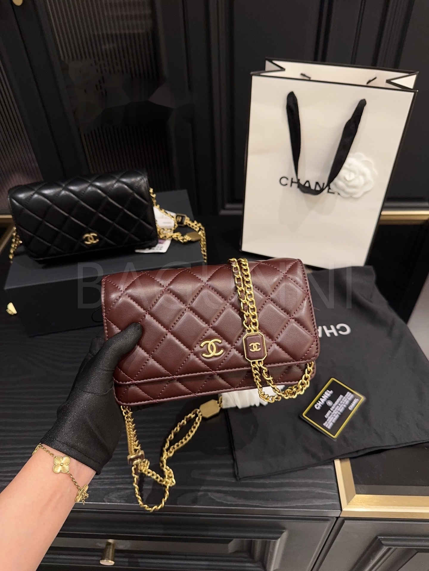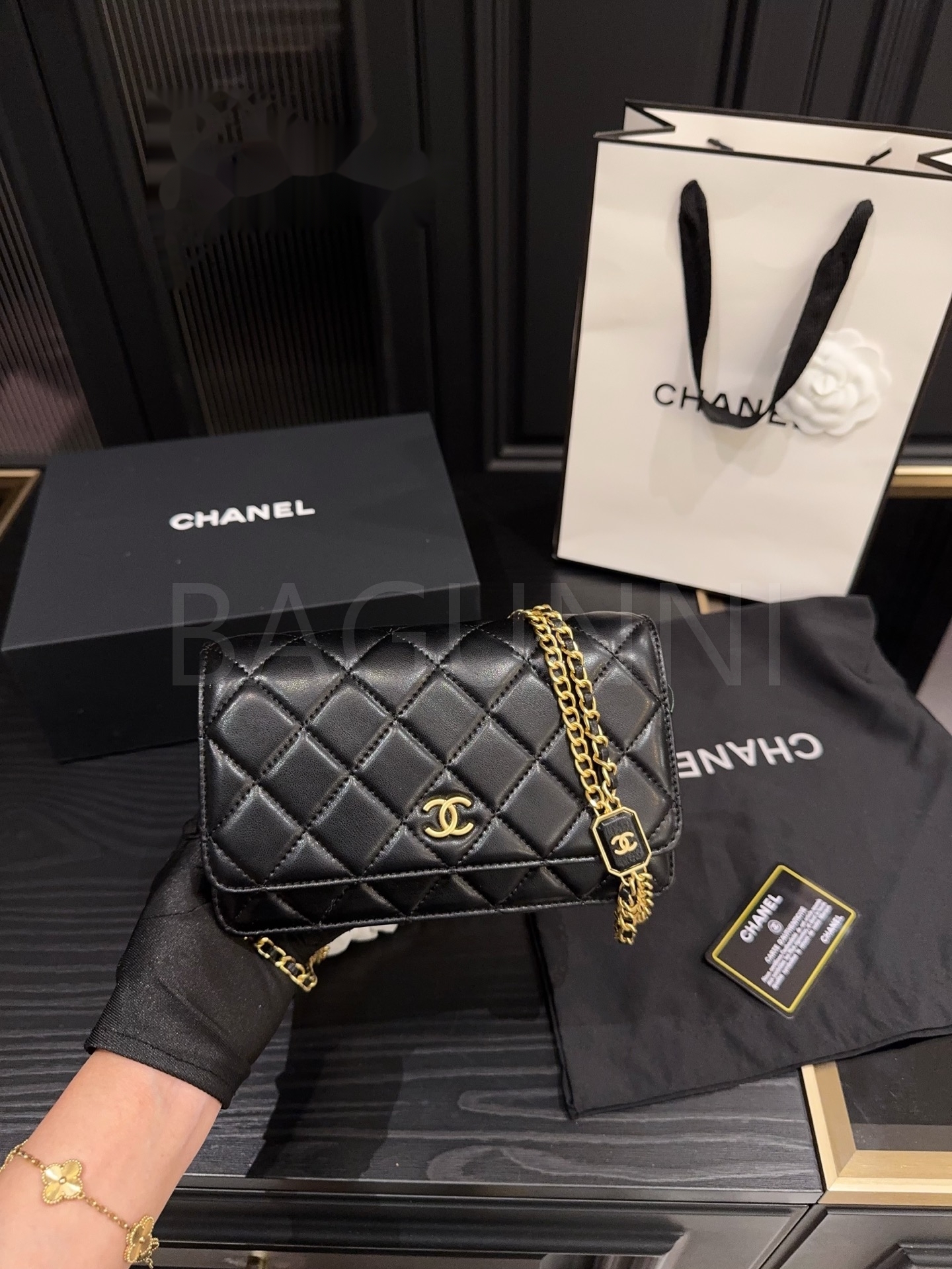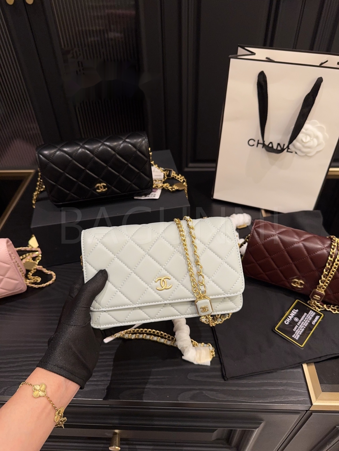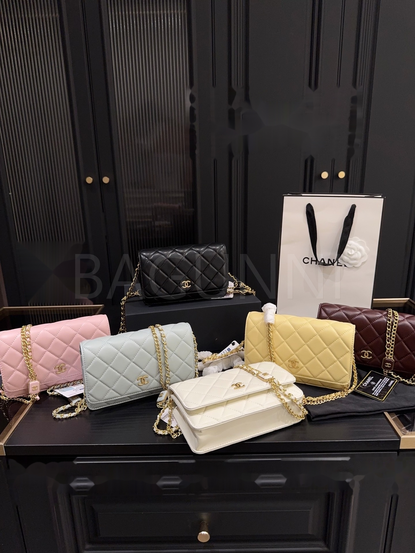 세련된 무드가 돋보이는 샤넬 사각 체인 WOC 체인 월렛입니다.
