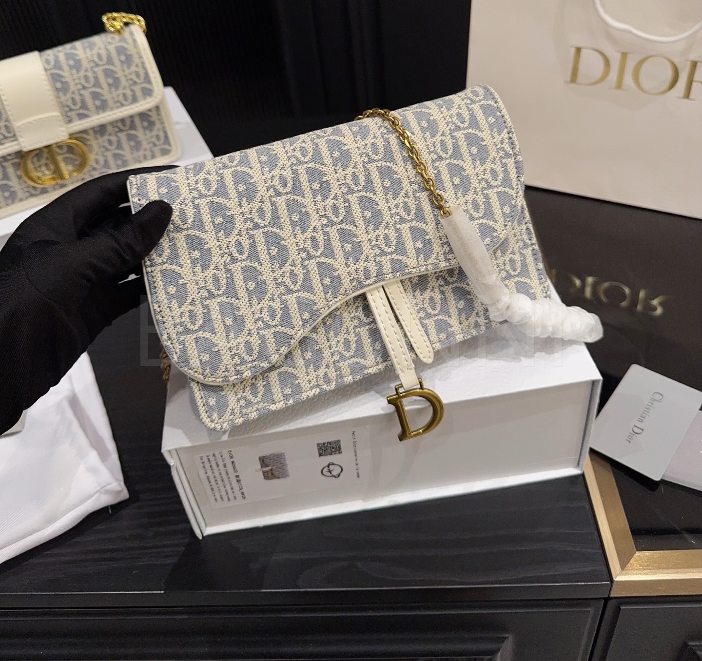 디올 WOC 체인백입니다. 골드 톤이 어우러져 브랜드 특유의 분위기를 편하게 즐기기 좋습니다.