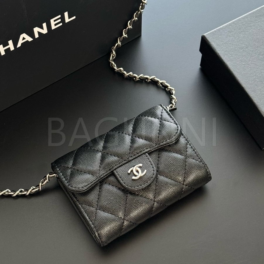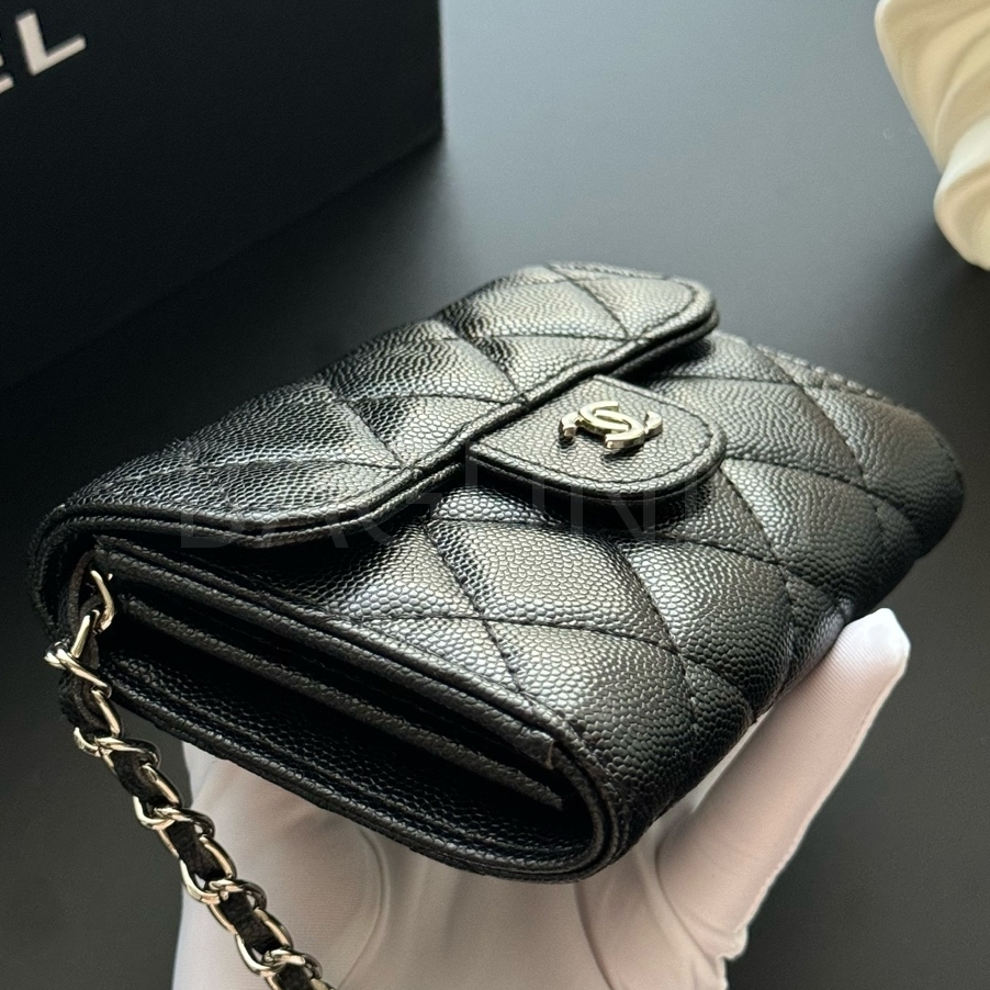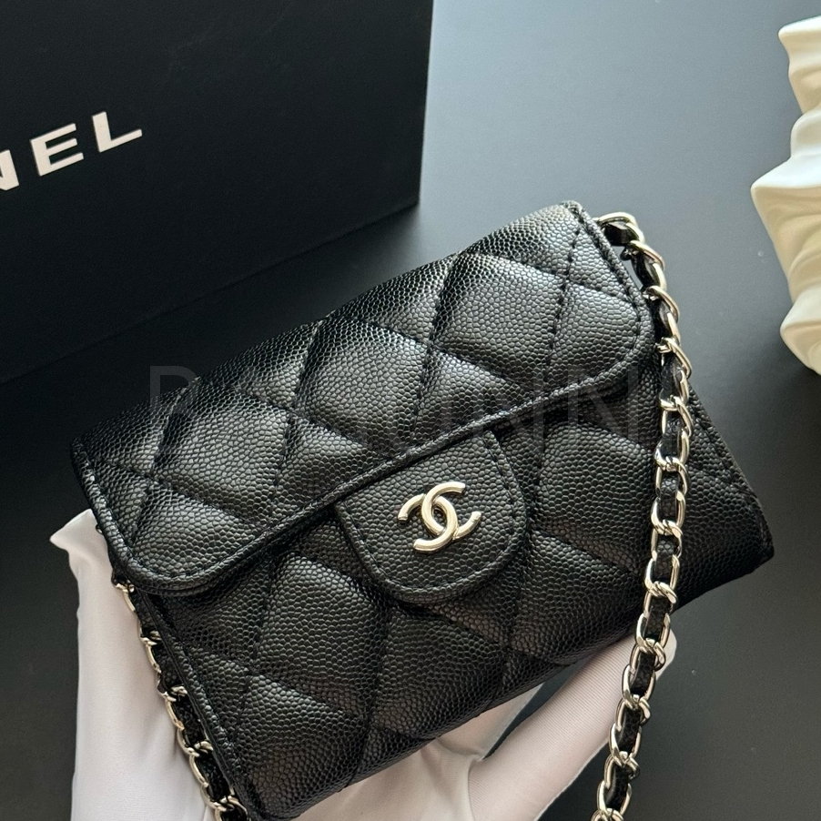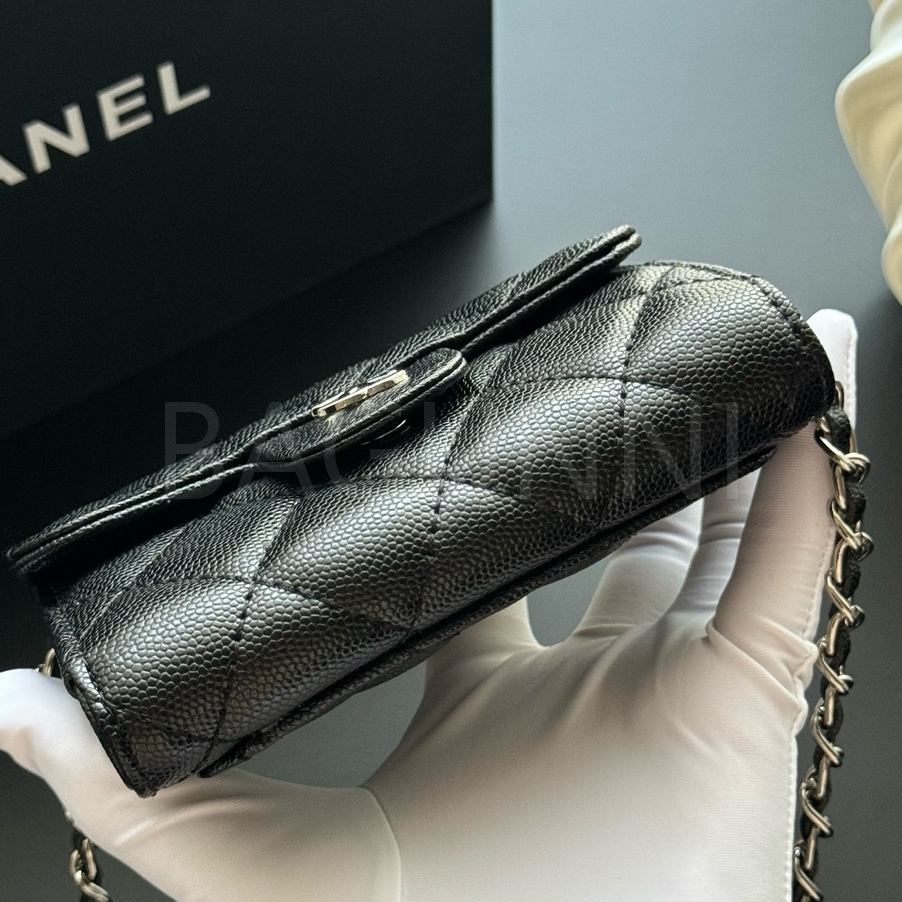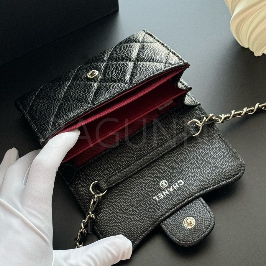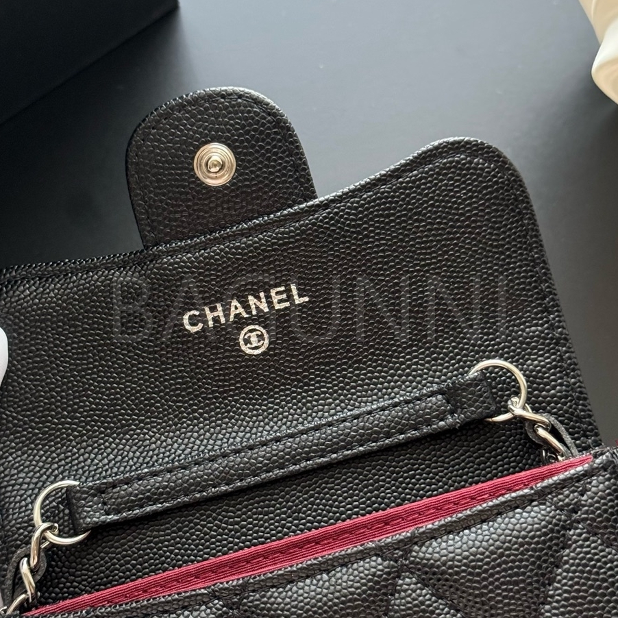 램스킨의 질감이 돋보이는 샤넬 WOC 체인 지갑입니다.