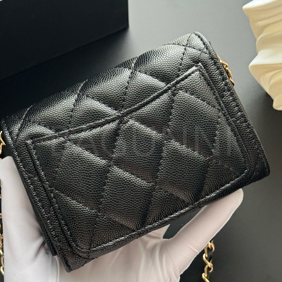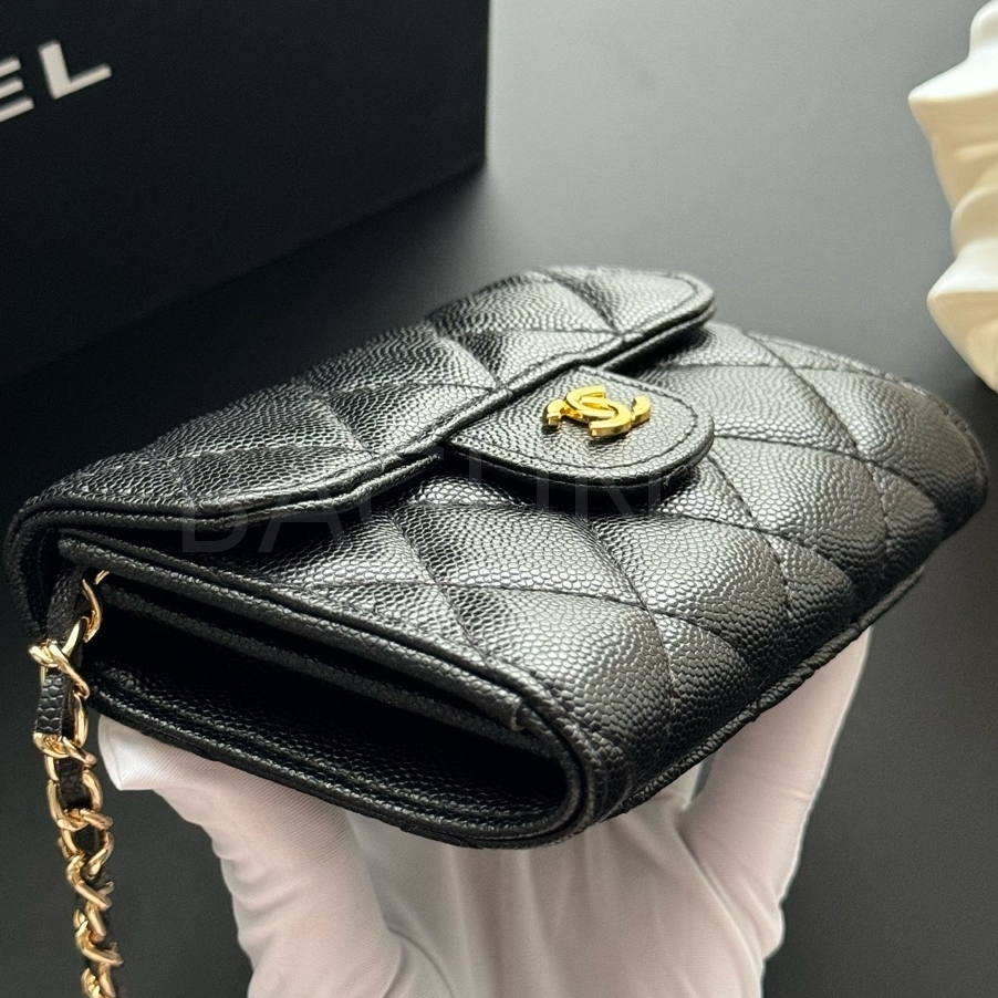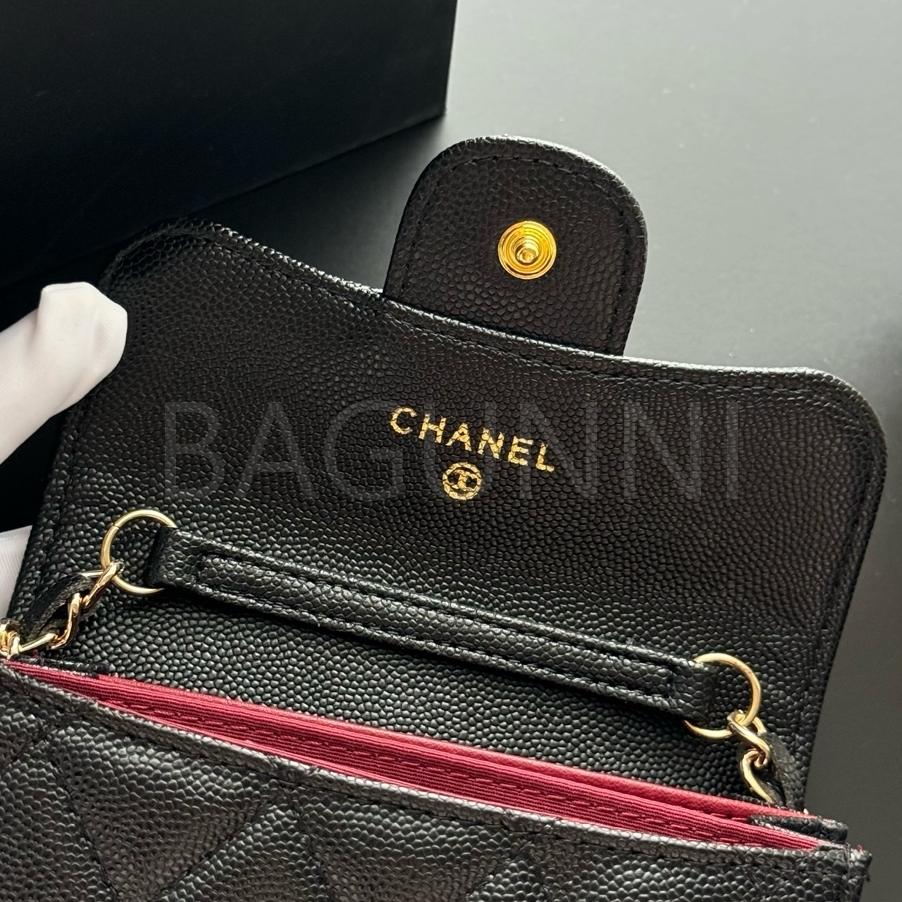 램스킨의 질감이 돋보이는 샤넬 WOC 체인 지갑입니다.