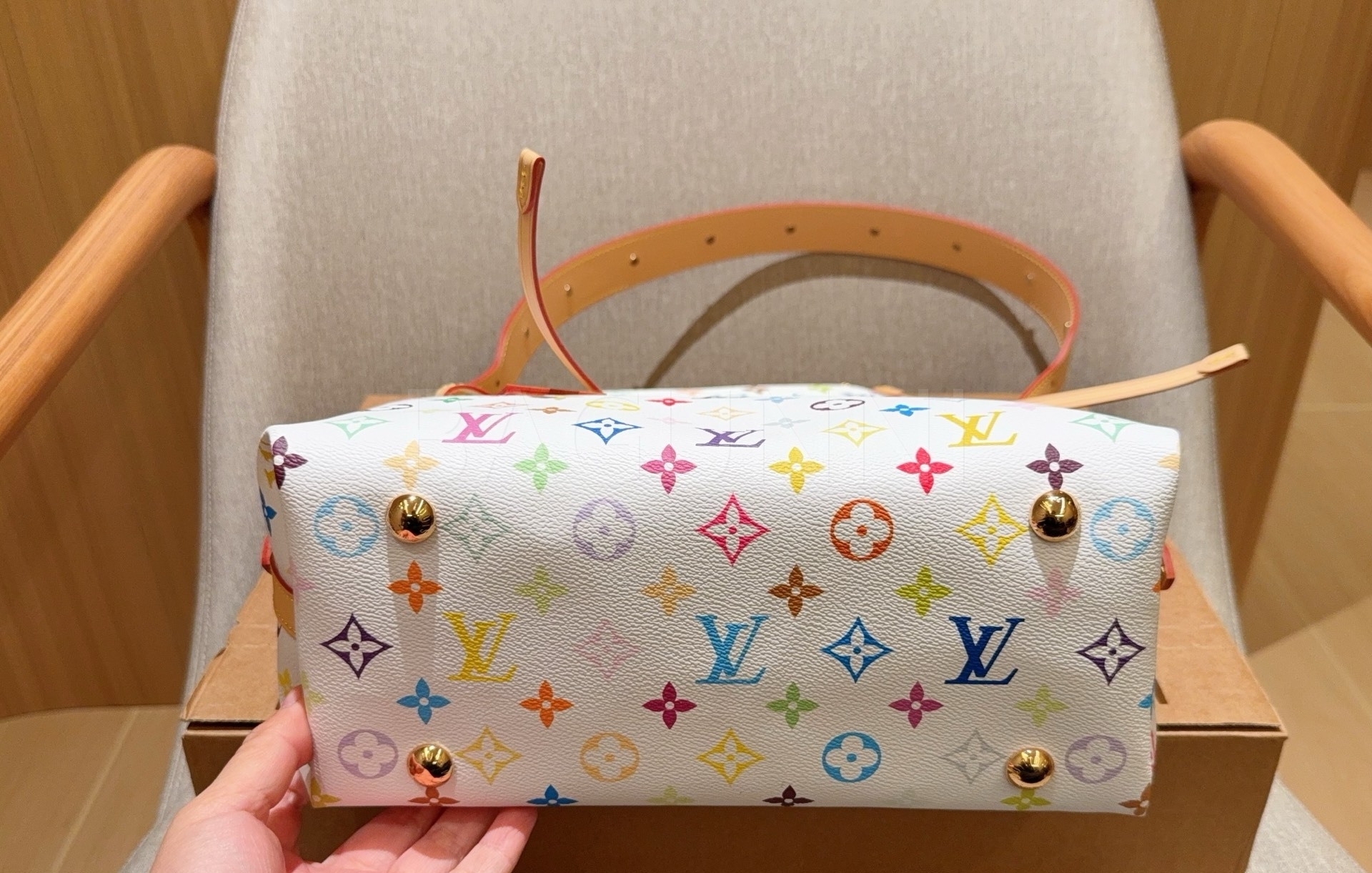 무라카미 타카시 협업 감성이 돋보이는 루이비통 x 무라카미 타카시 멀티컬러 캐리올 숄더백입니다.