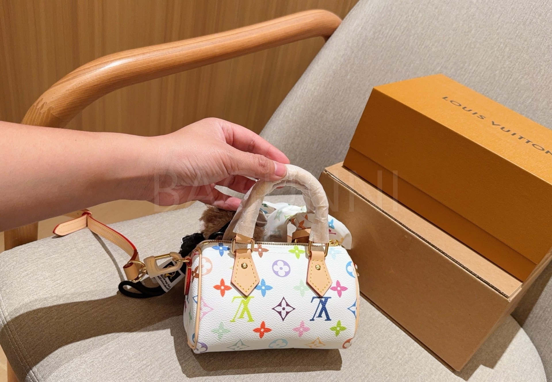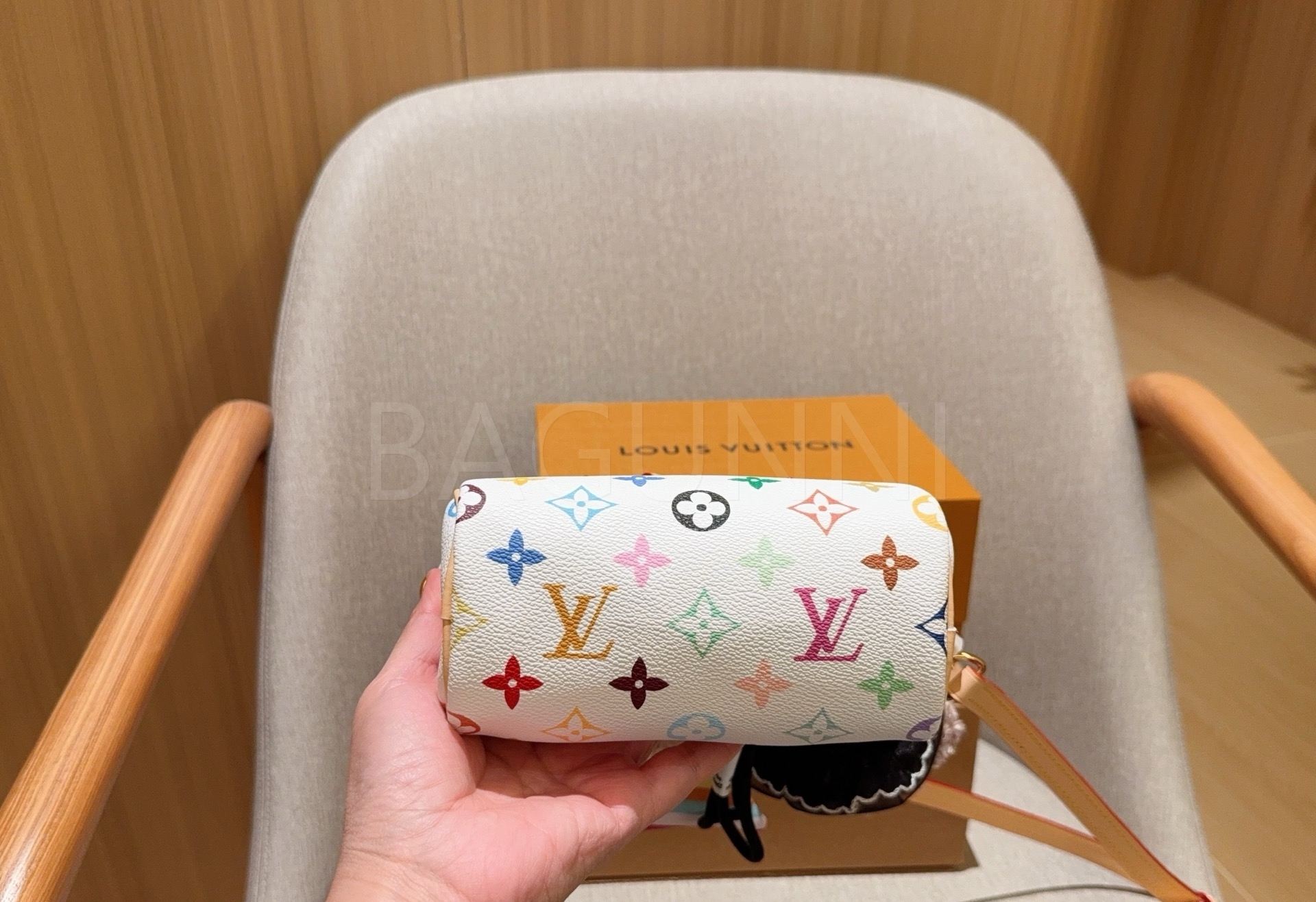 멀티컬러 모노그램 디테일이 조화롭게 어우러져 완성도를 높여줍니다