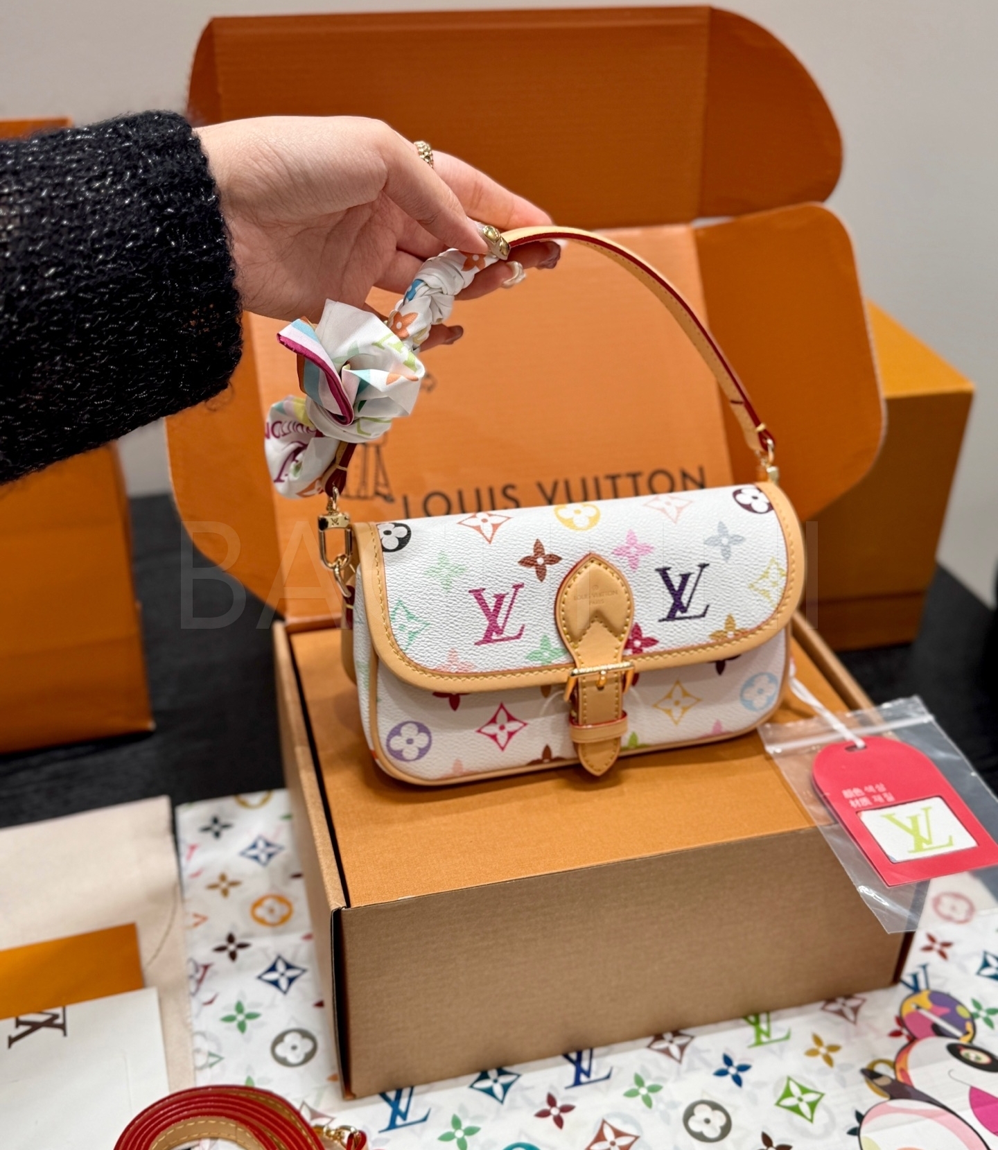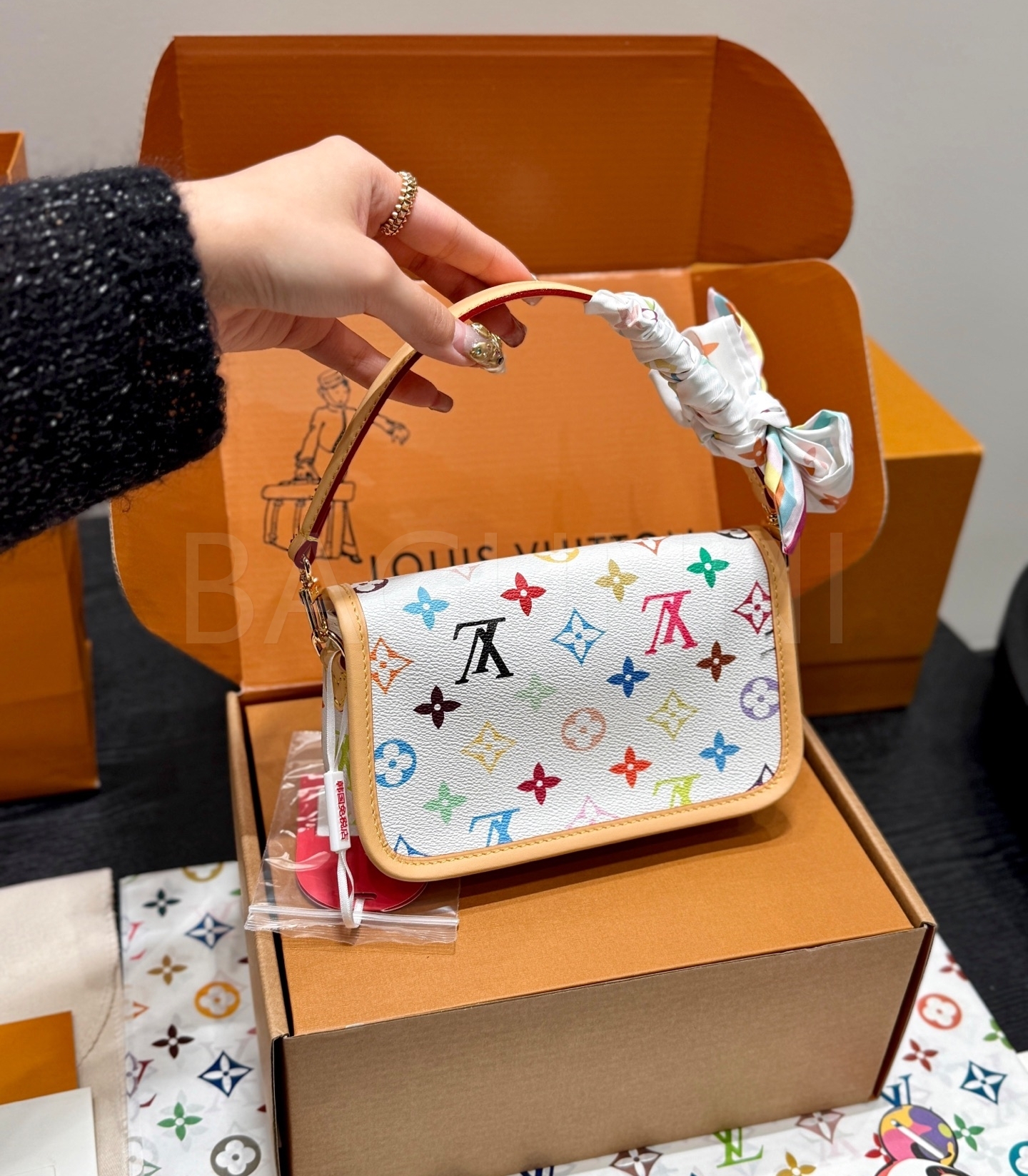 무라카미 타카시 협업 감성이 돋보이는 루이비통 x 무라카미 타카시 멀티컬러 다이앤 숄더백입니다.