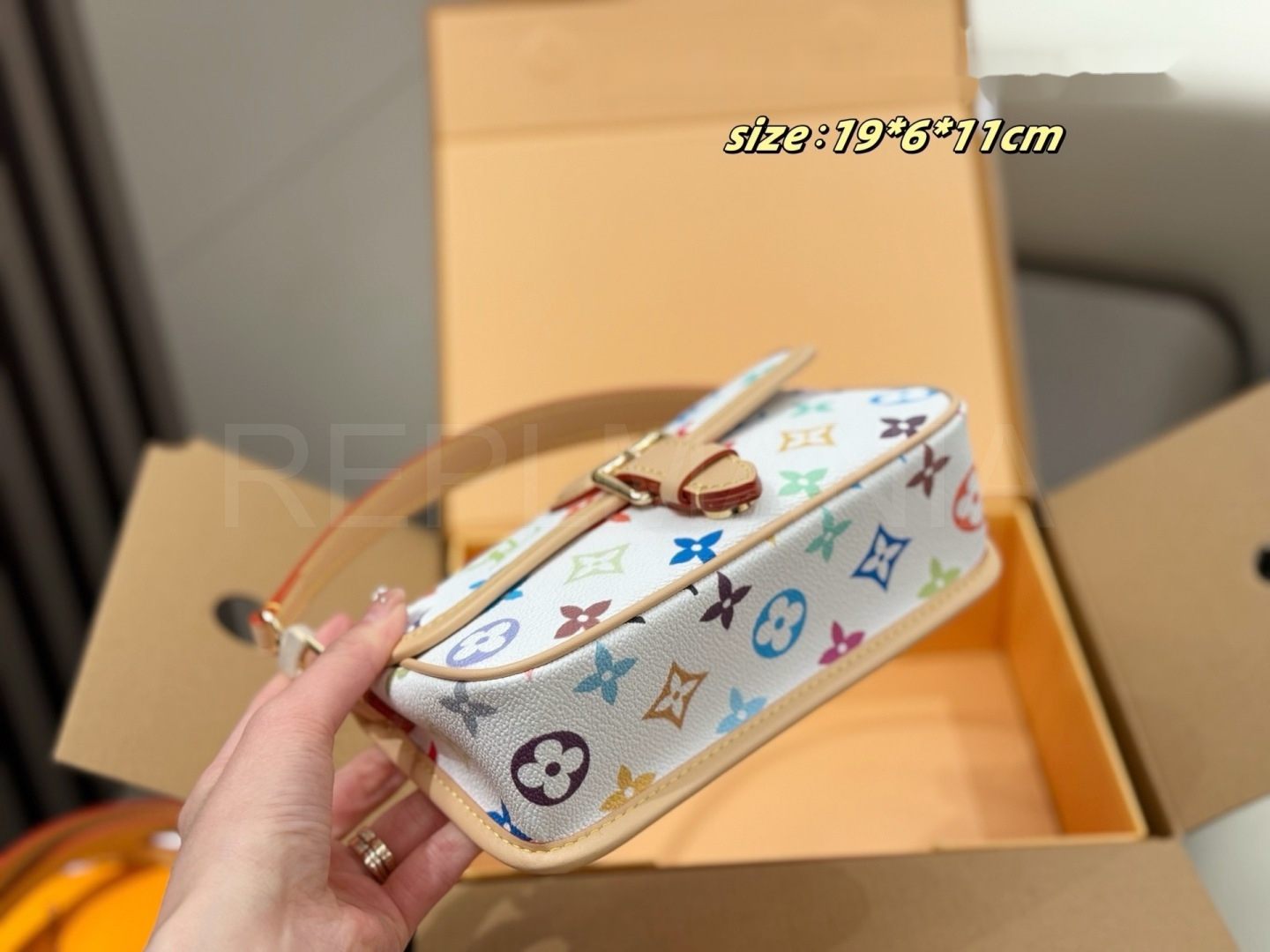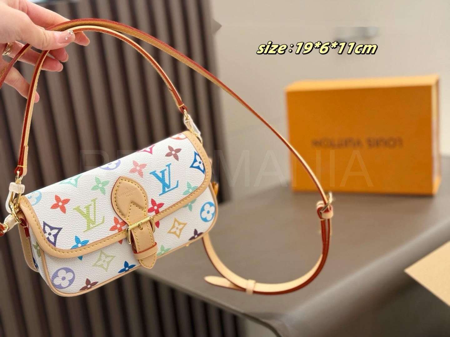 멀티컬러 모노그램, 탑핸들, 숄더와 크로스 연출, 슬림한 숄더 실루엣 디테일이 조화롭게 어우러져 완성도를 높여줍니다