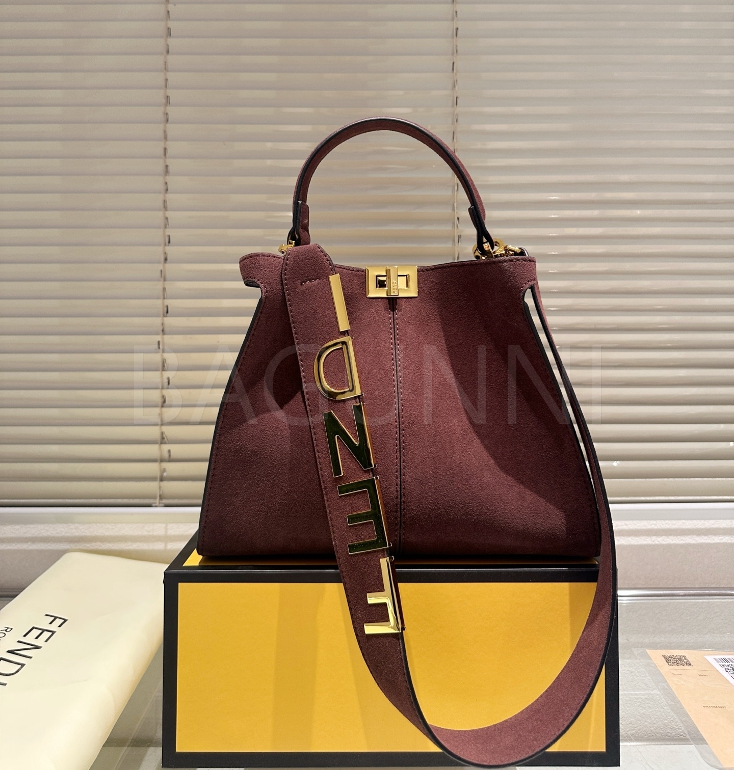 펜디 피카부 X-라이트 스웨이드 탑핸들백은 세련된 실루엣을 담은 아이템입니다.
