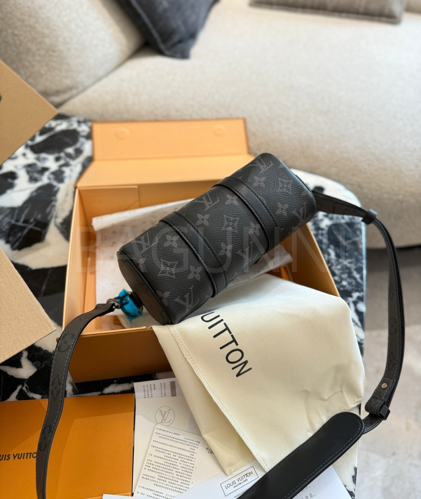 클래식한 캔버스 무드가 돋보이는 루이비통 키폴 XS입니다.