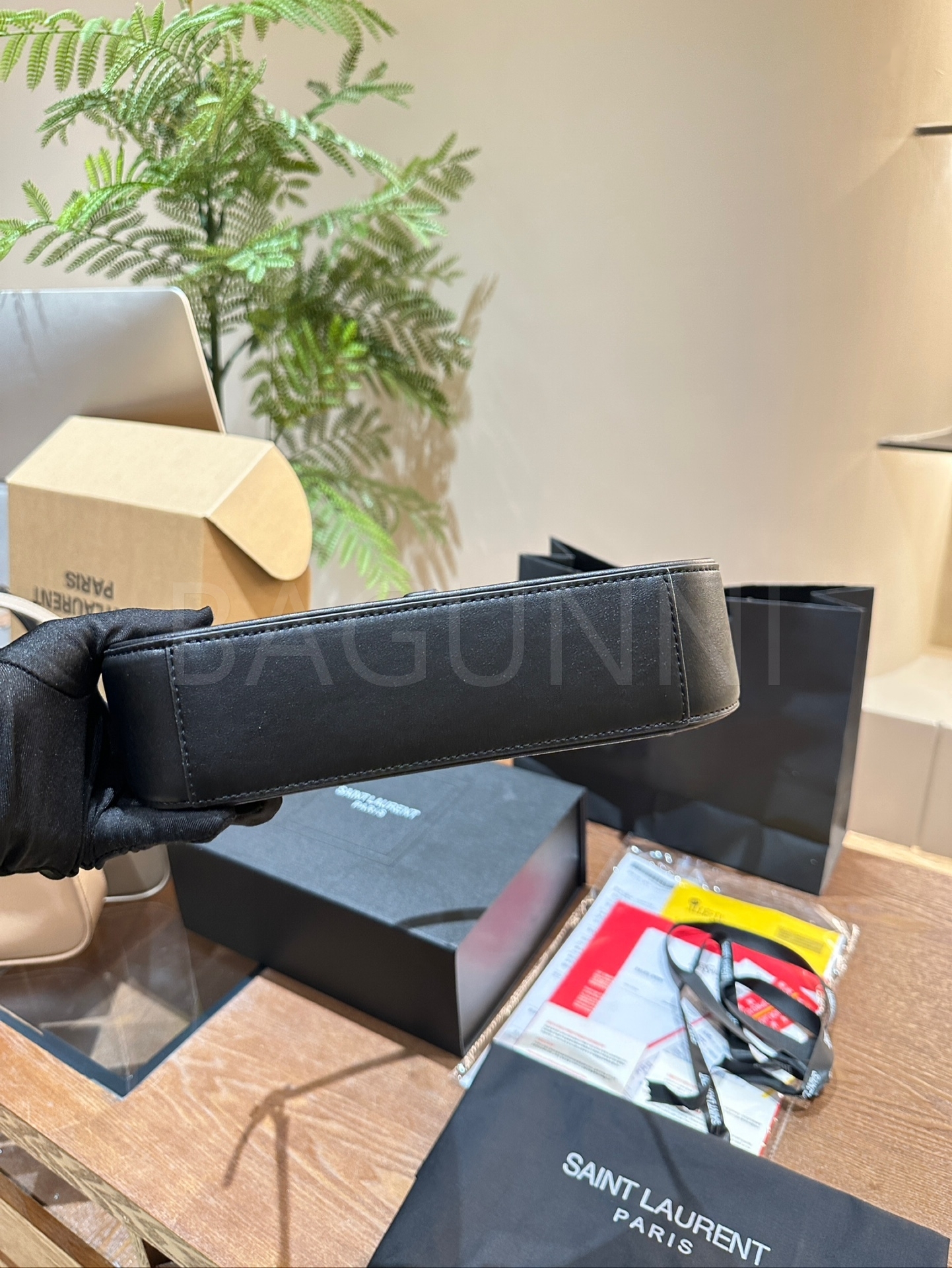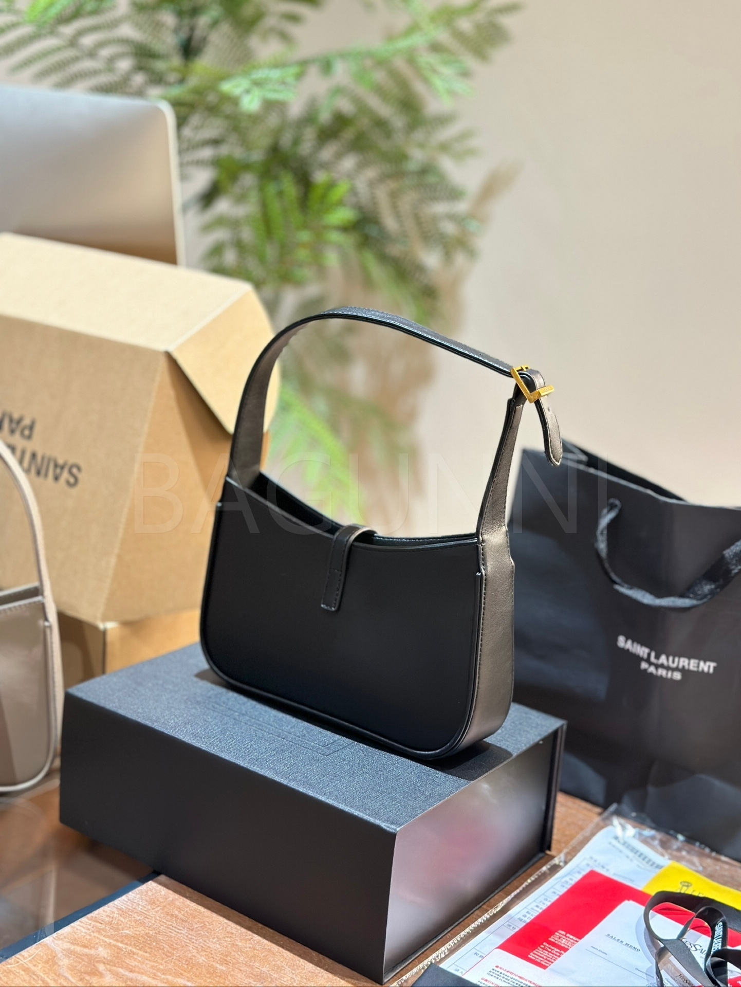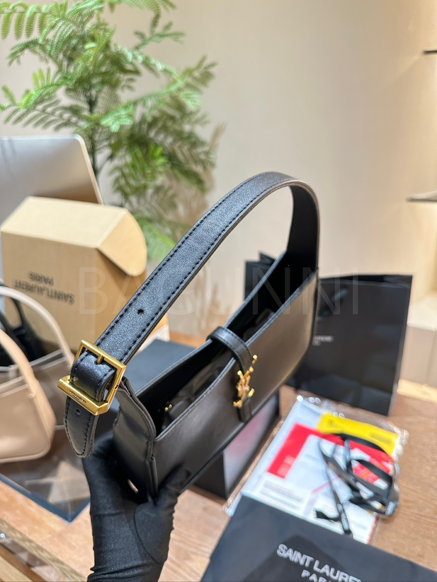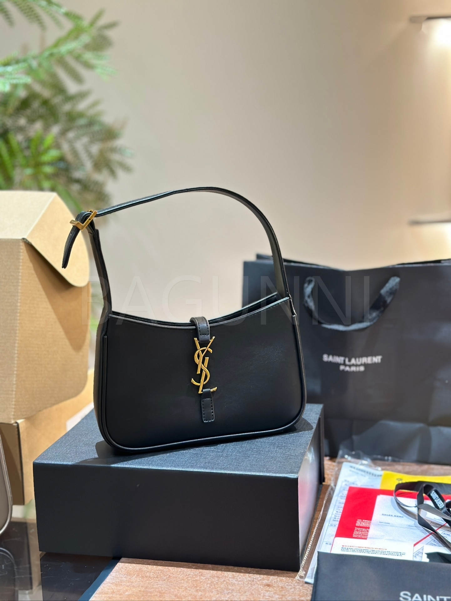 YSL 빅 로고 숄더백입니다. 블랙 톤이 어우러져 브랜드 특유의 분위기를 편하게 즐기기 좋습니다.