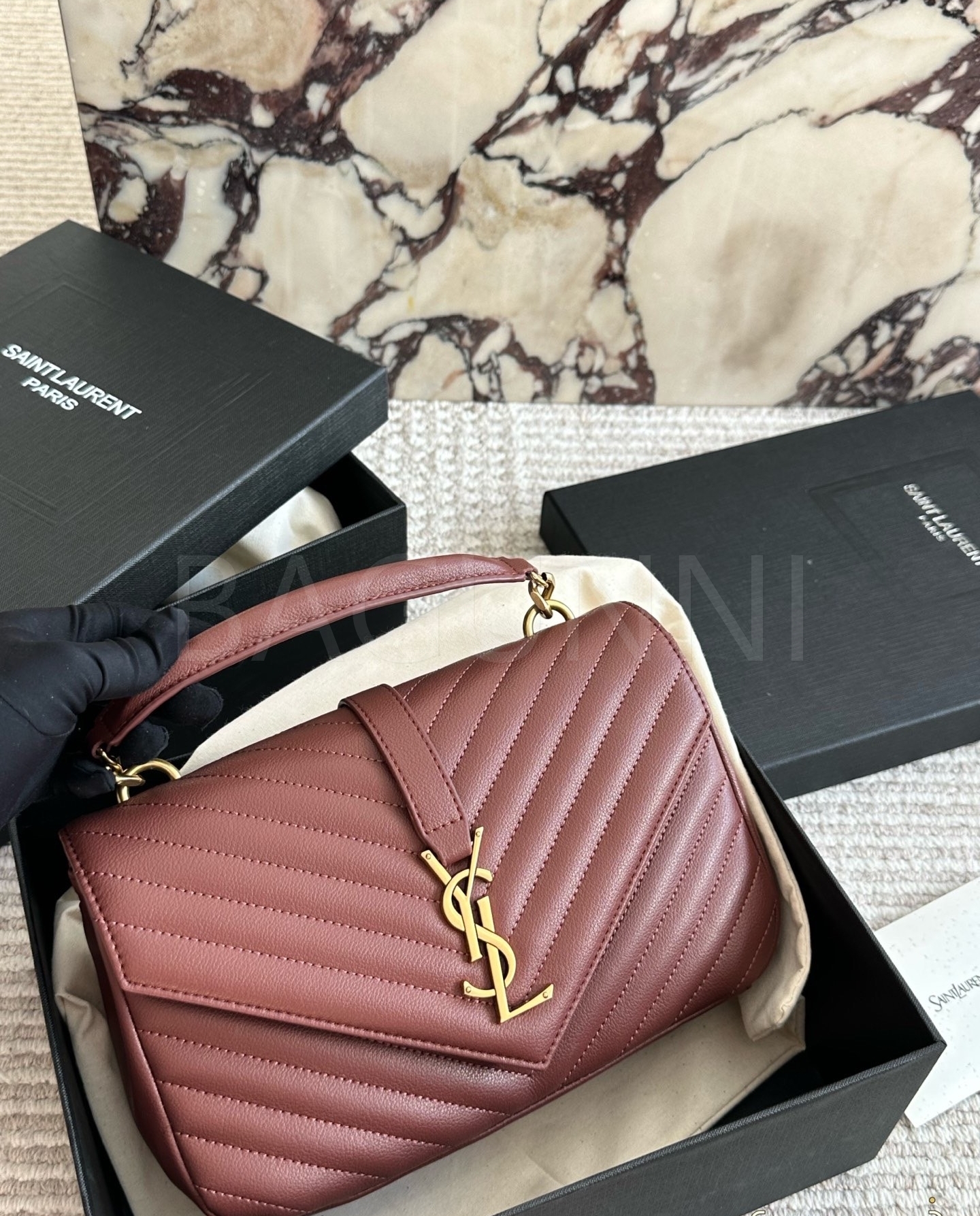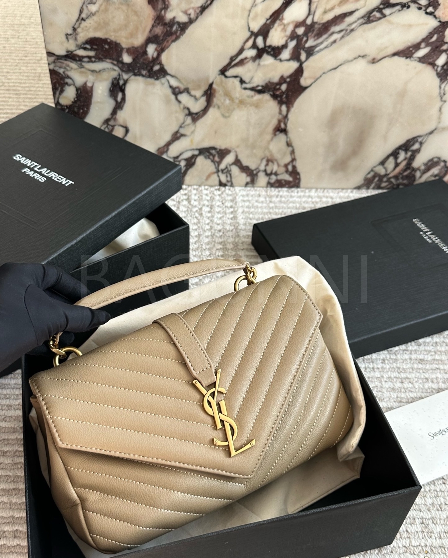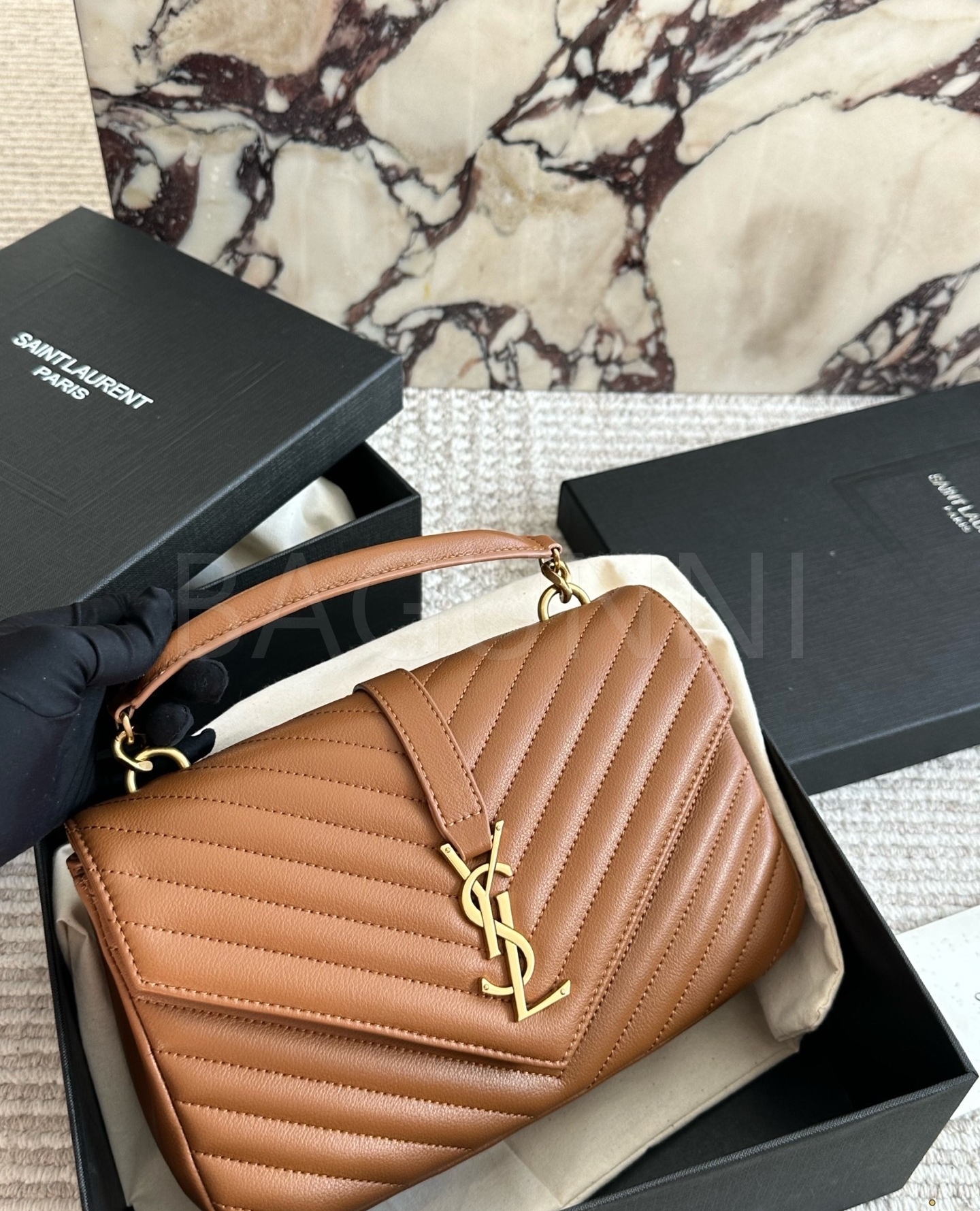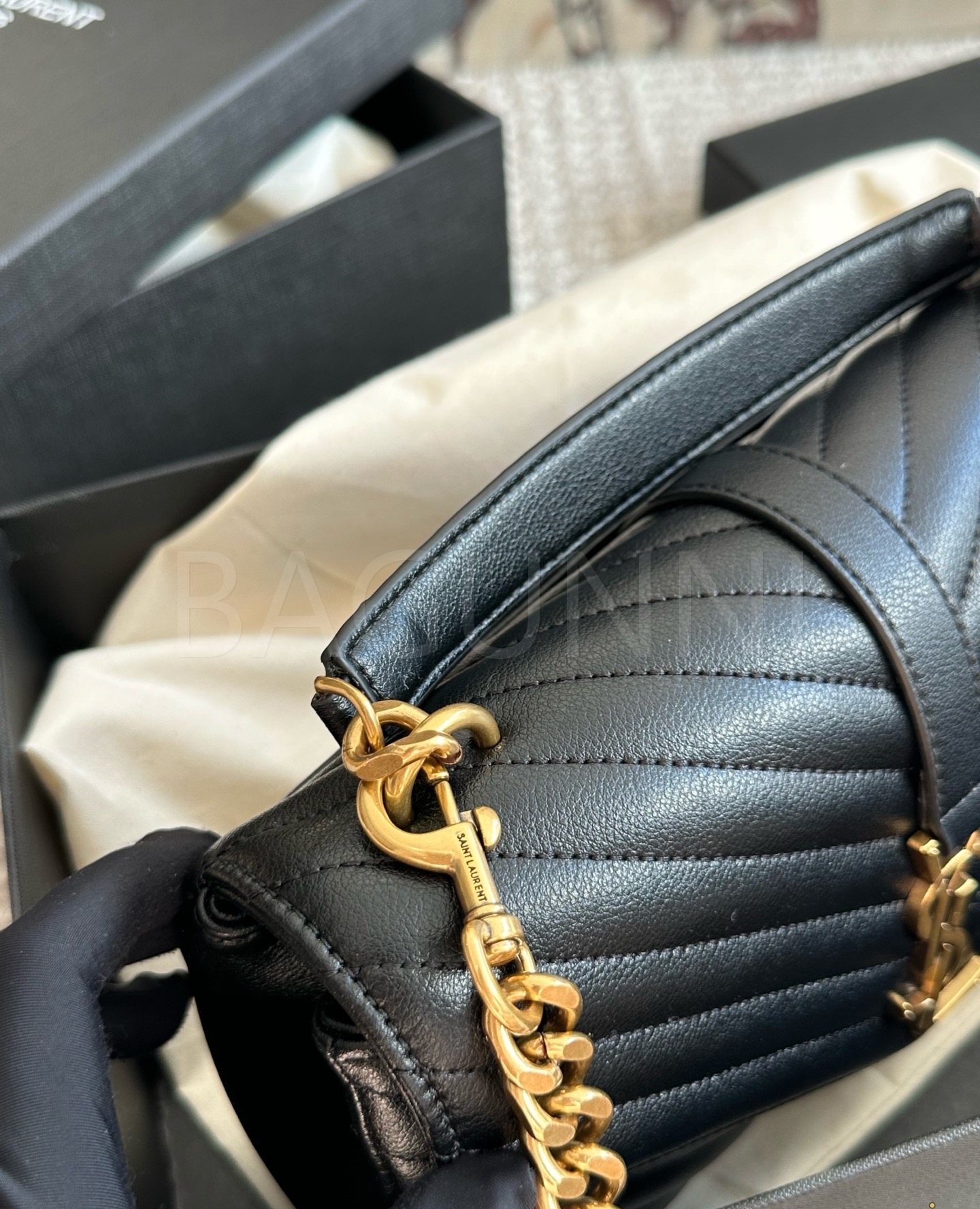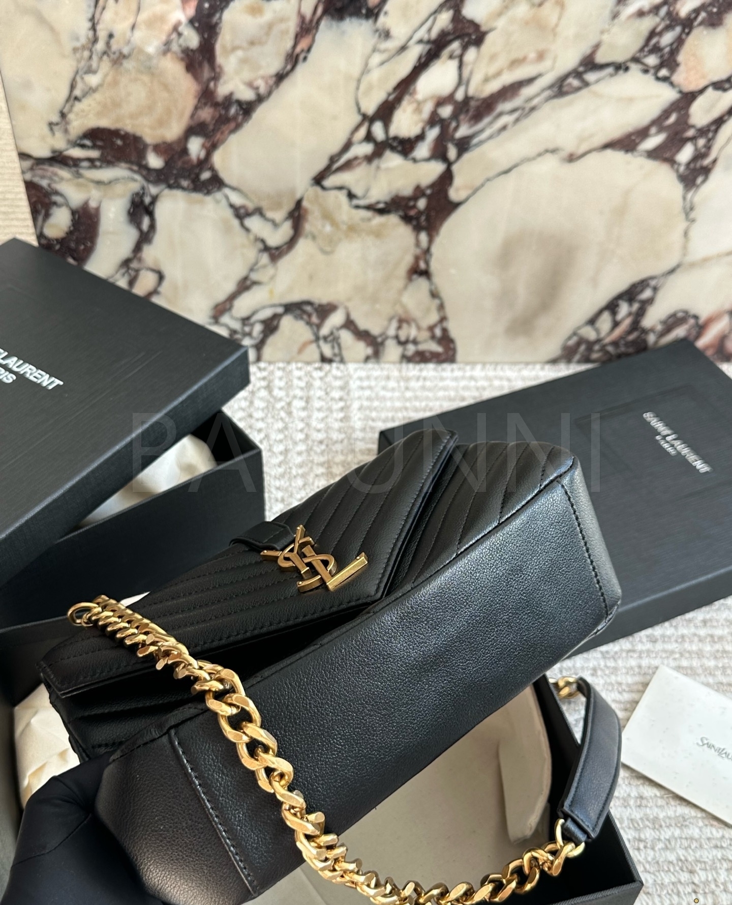 YSL 빅 로고 메신저백입니다. 가죽 특유의 질감이 자연스럽게 살아 있으며 브랜드 특유의 분위기를 편하게 즐기기 좋습니다.