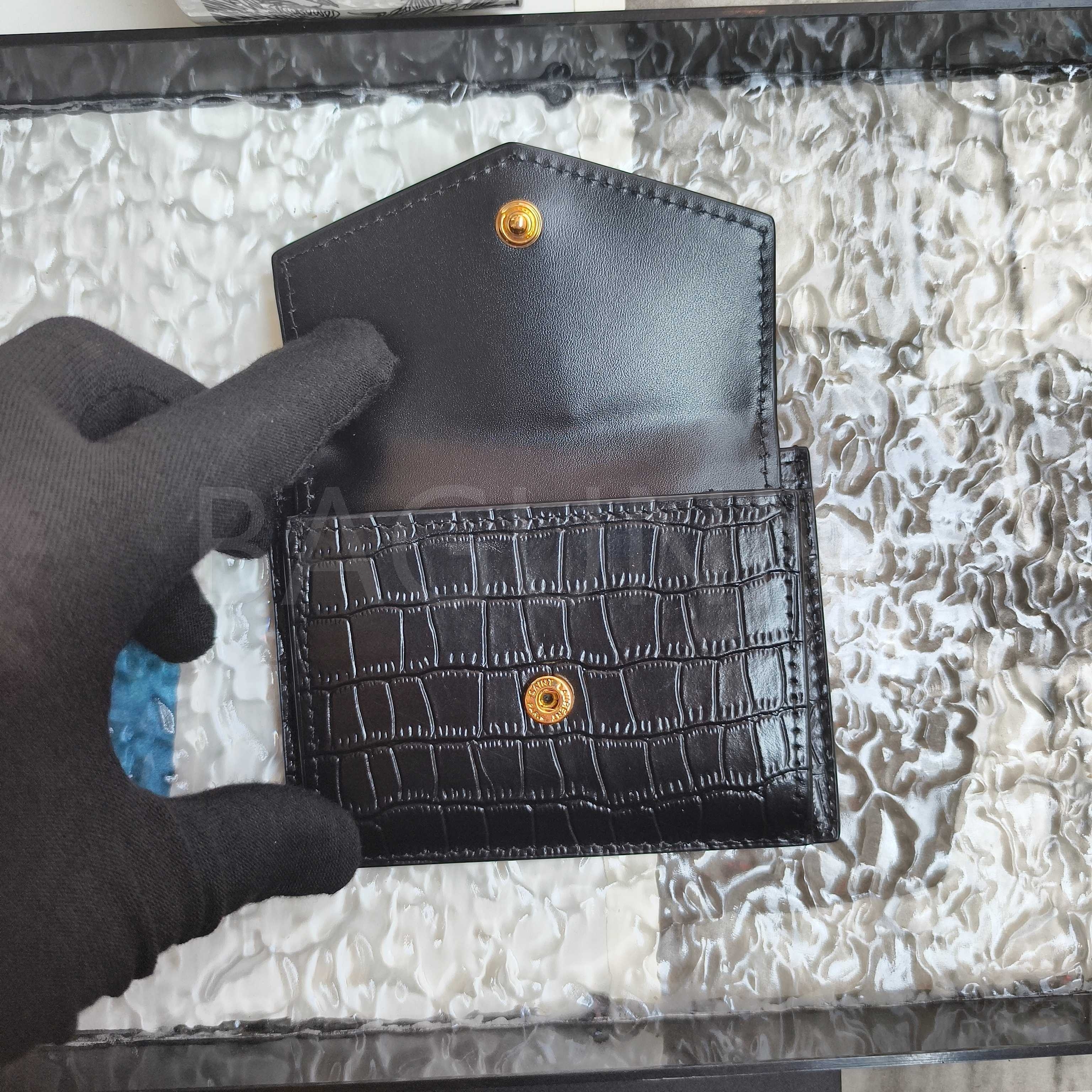 YSL 카산드라 플랩 카드지갑 특유의 분위기가 자연스럽게 드러나는 디자인입니다.